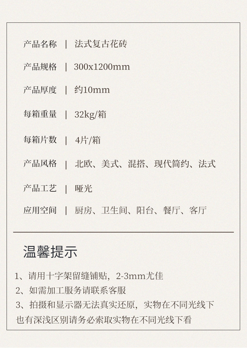 海基复古法式300x1200厨房凝脂地板砖瓷砖卫生间阳台花砖布墙砖