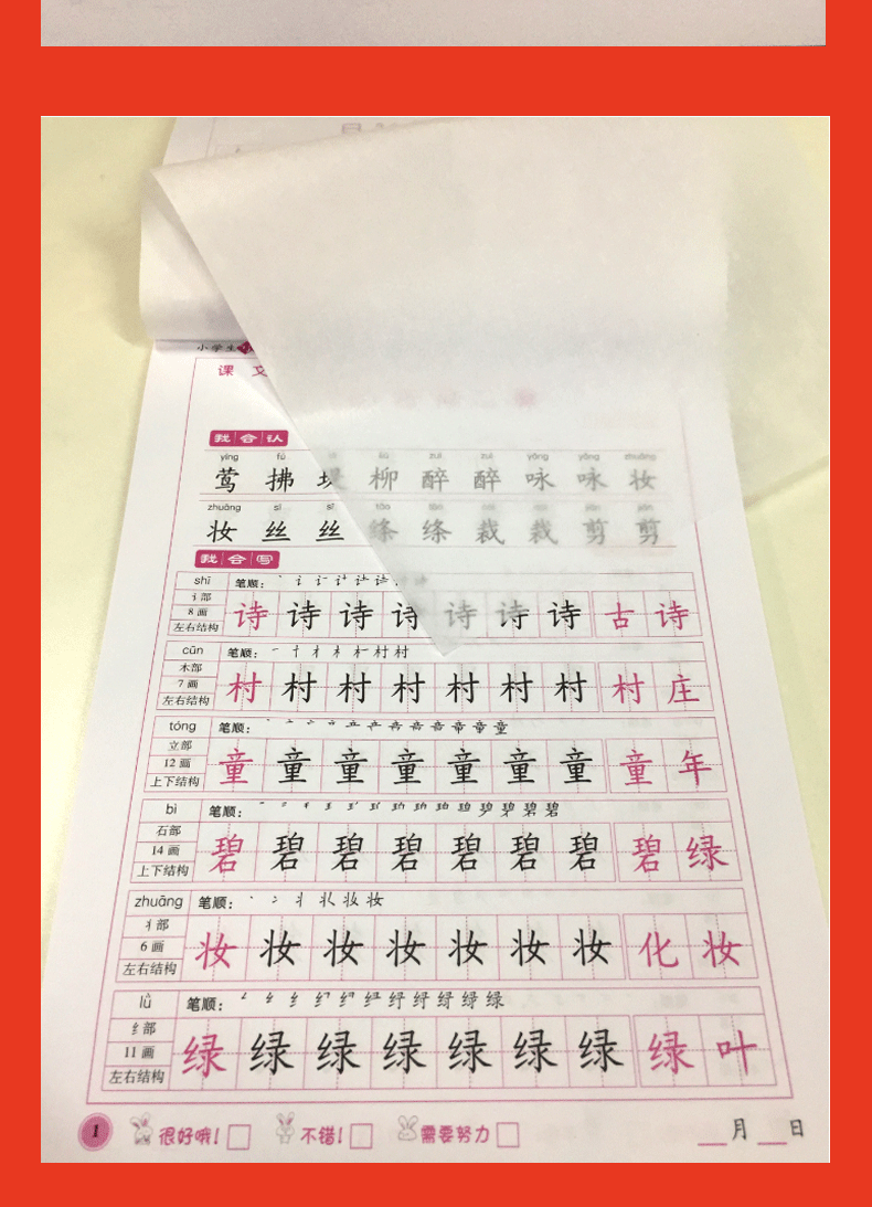 2020部编人教版语文课本同步练字帖二年级下册练字本写字课课练小学生RJ版写字课课练小学2年级下册下学期笔画笔顺铅笔楷书正楷字