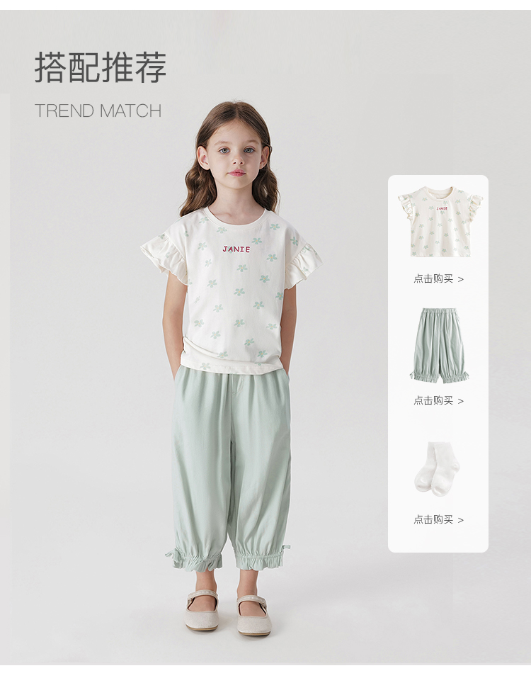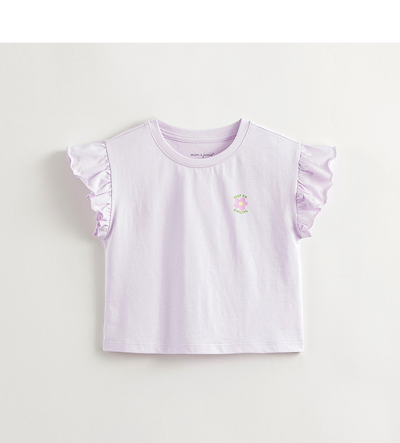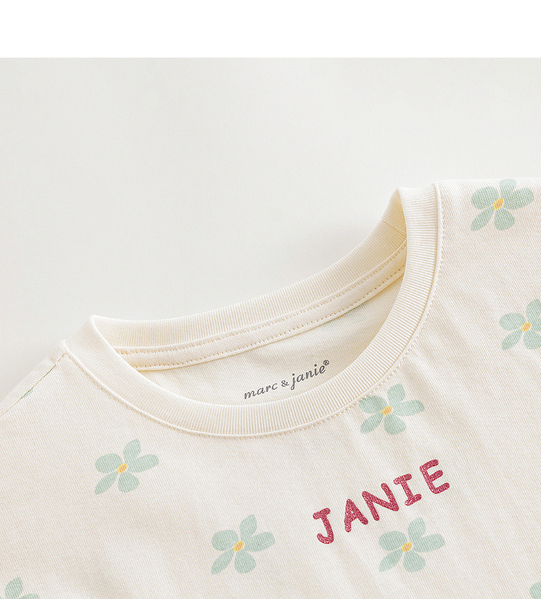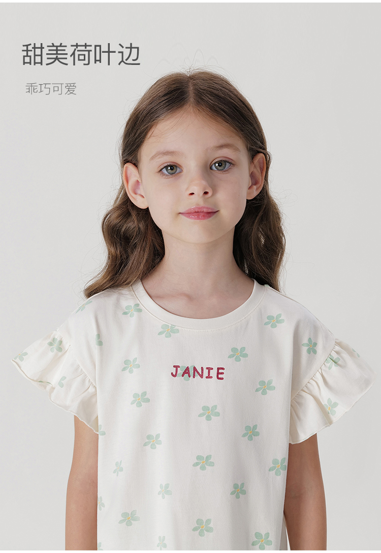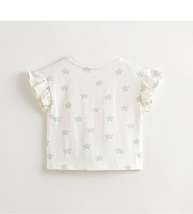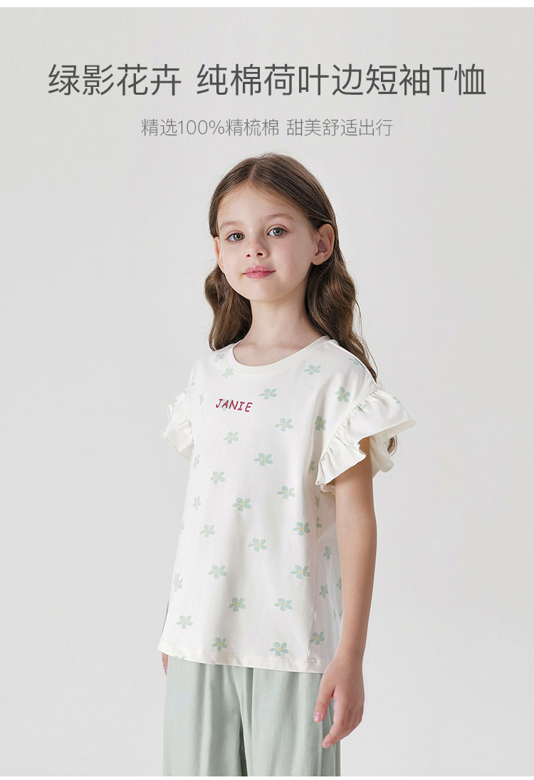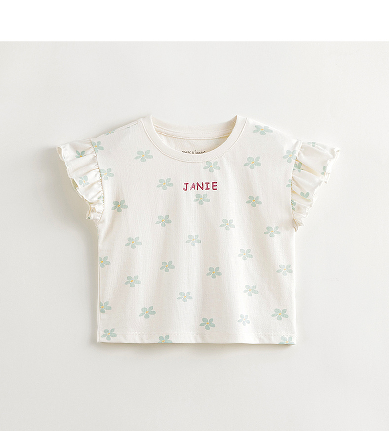 马克珍妮女童荷叶边小花满印短袖T恤儿童上衣2024夏装新款240762