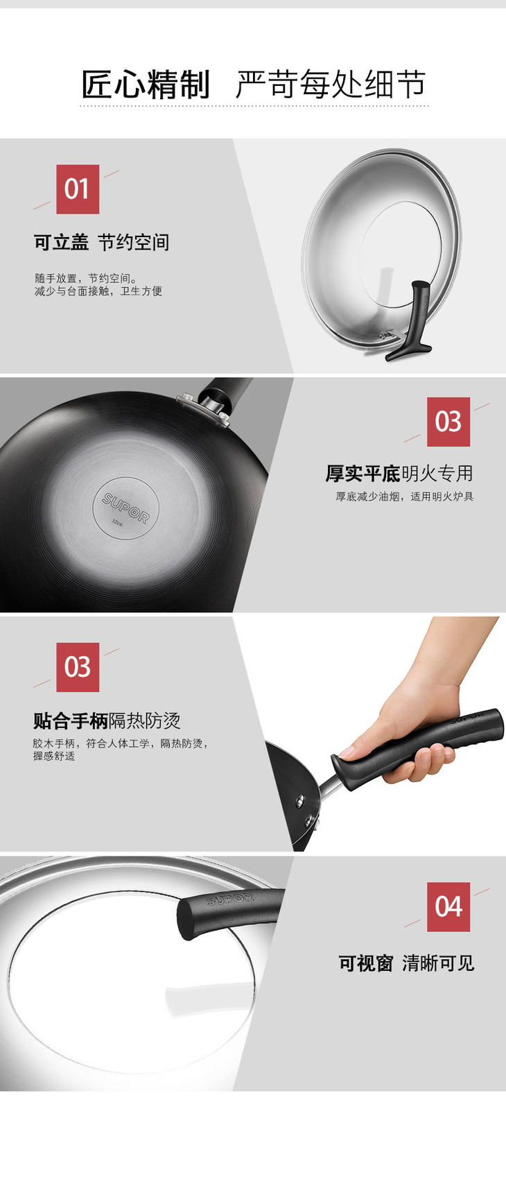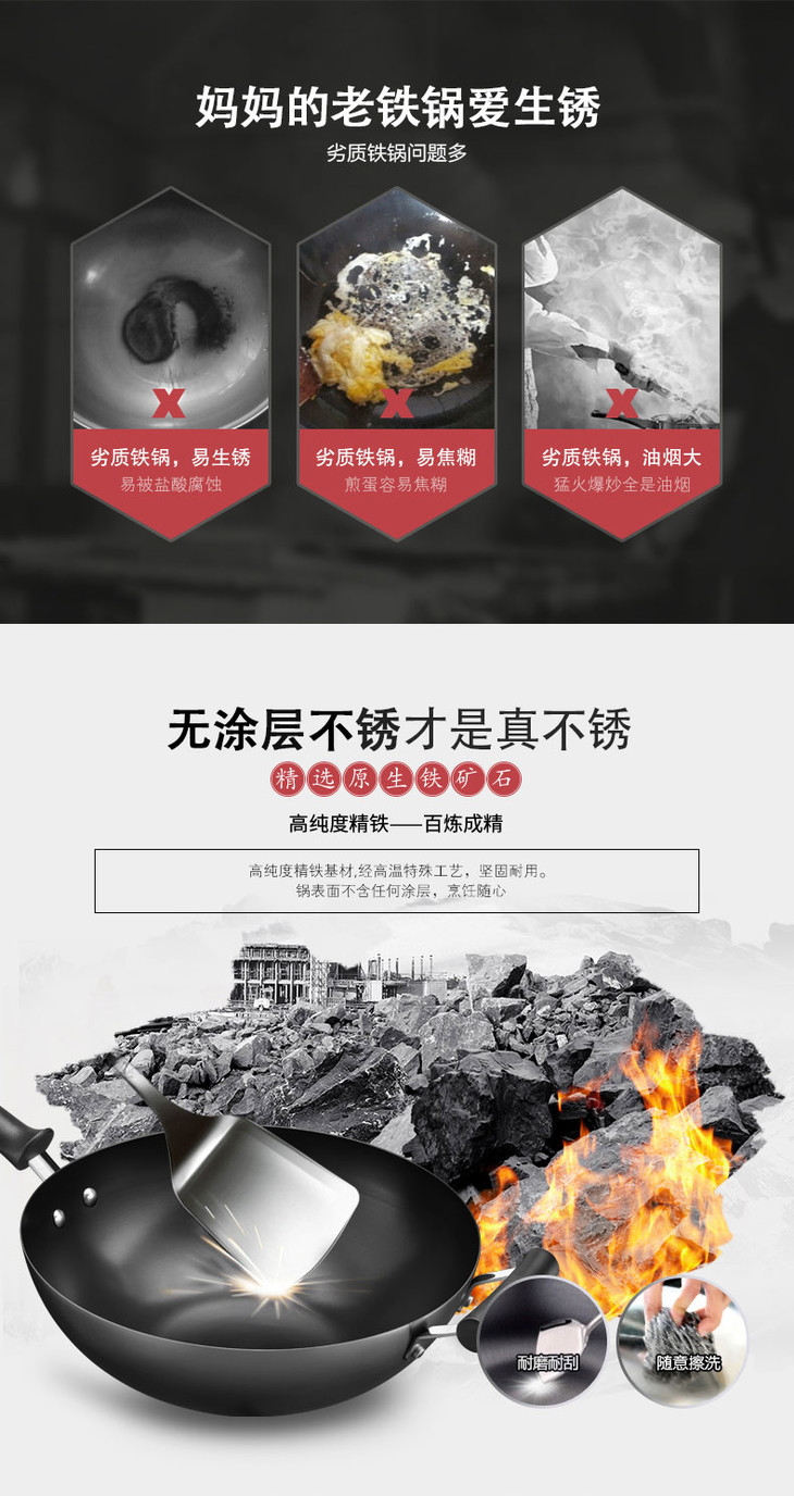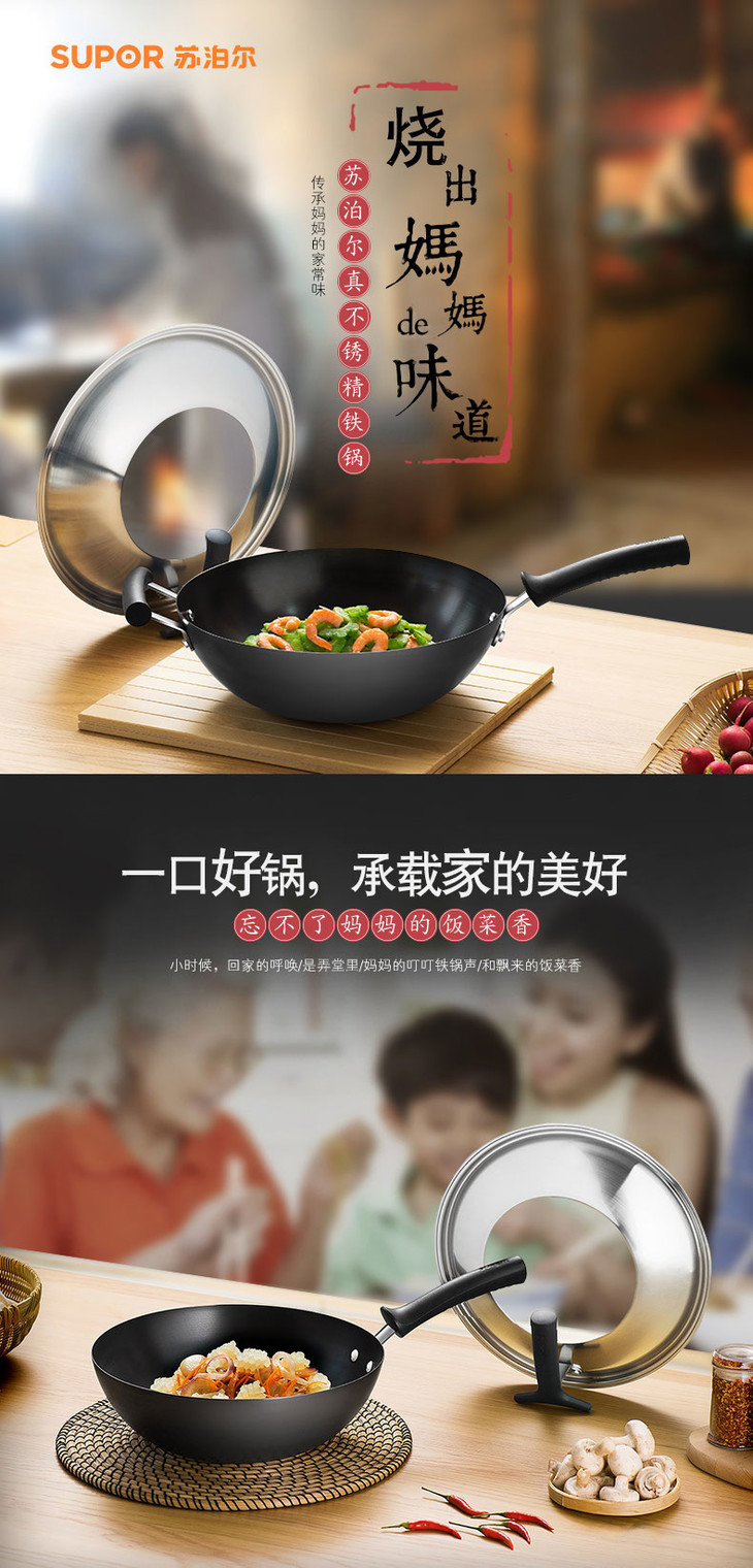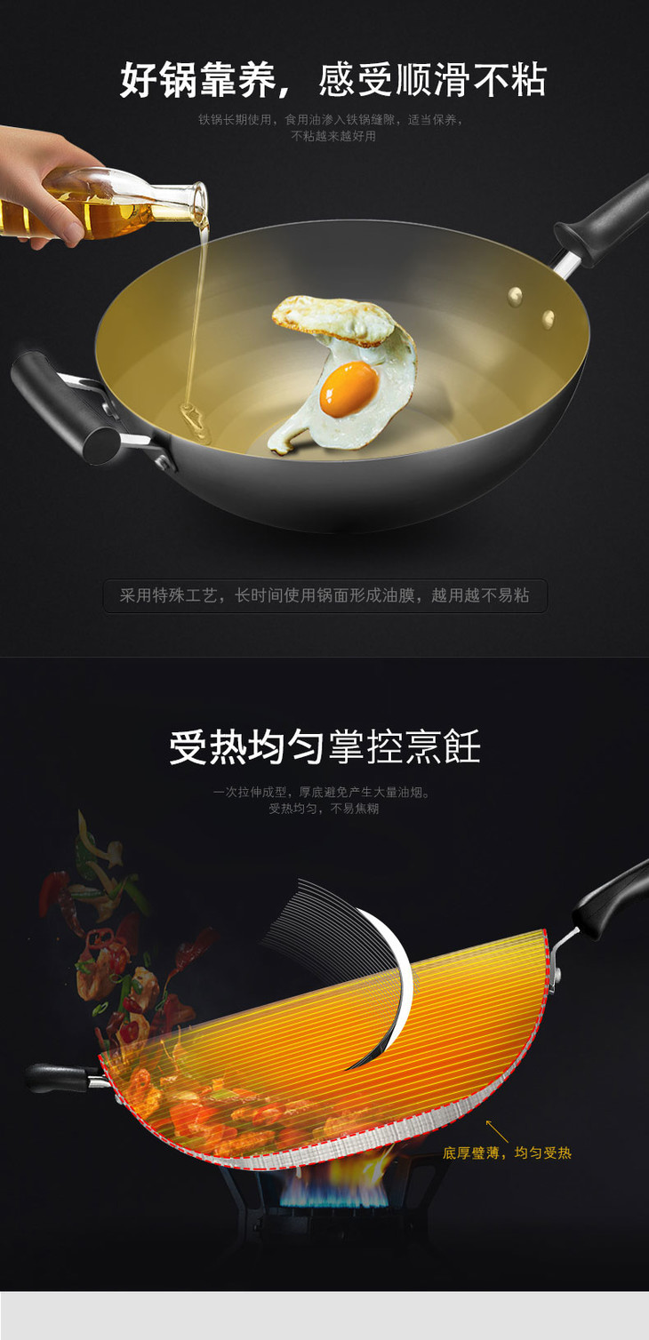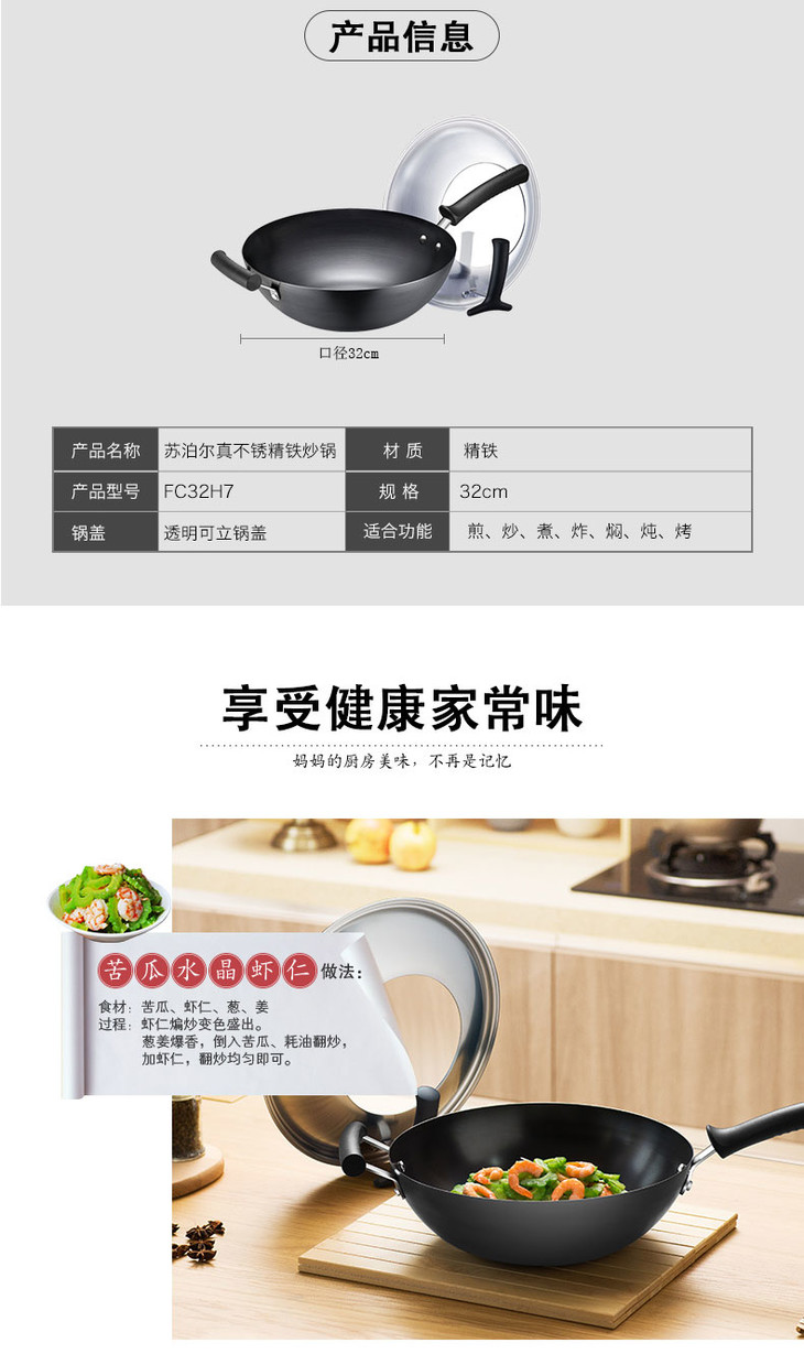 苏泊尔(507374)(SUPOR)铁锅炒锅不生锈老式平底铁锅无涂层多功能炒菜锅电磁炉32cm FC32H7