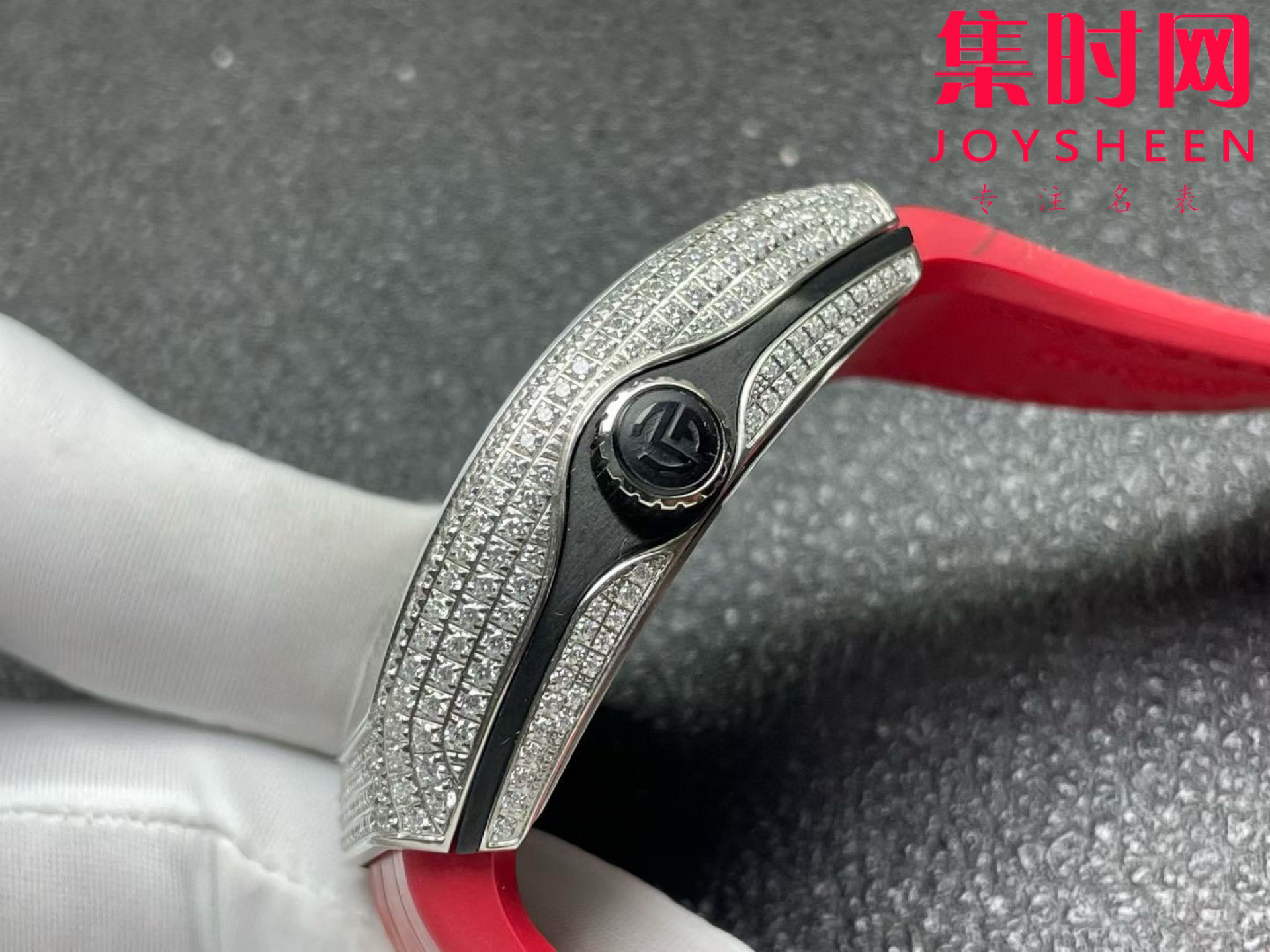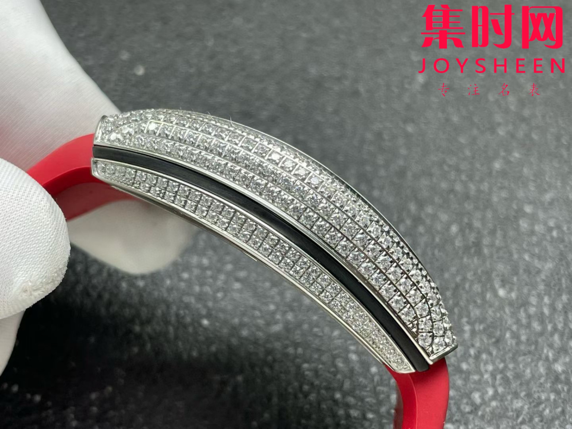 3.采用超大弧度 超高清透光的蓝宝石水晶玻璃 由一整块40*50mm 厚度超过15mm的蓝宝石原料 根据表壳弧度精心细磨 报废率高 成品率极低