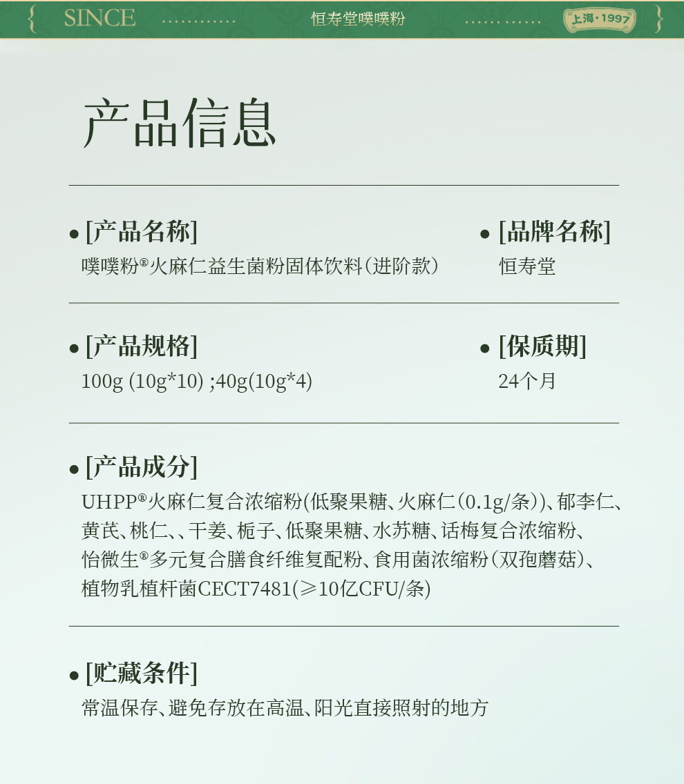 恒寿堂火麻仁益生菌粉固体饮料 100g/盒