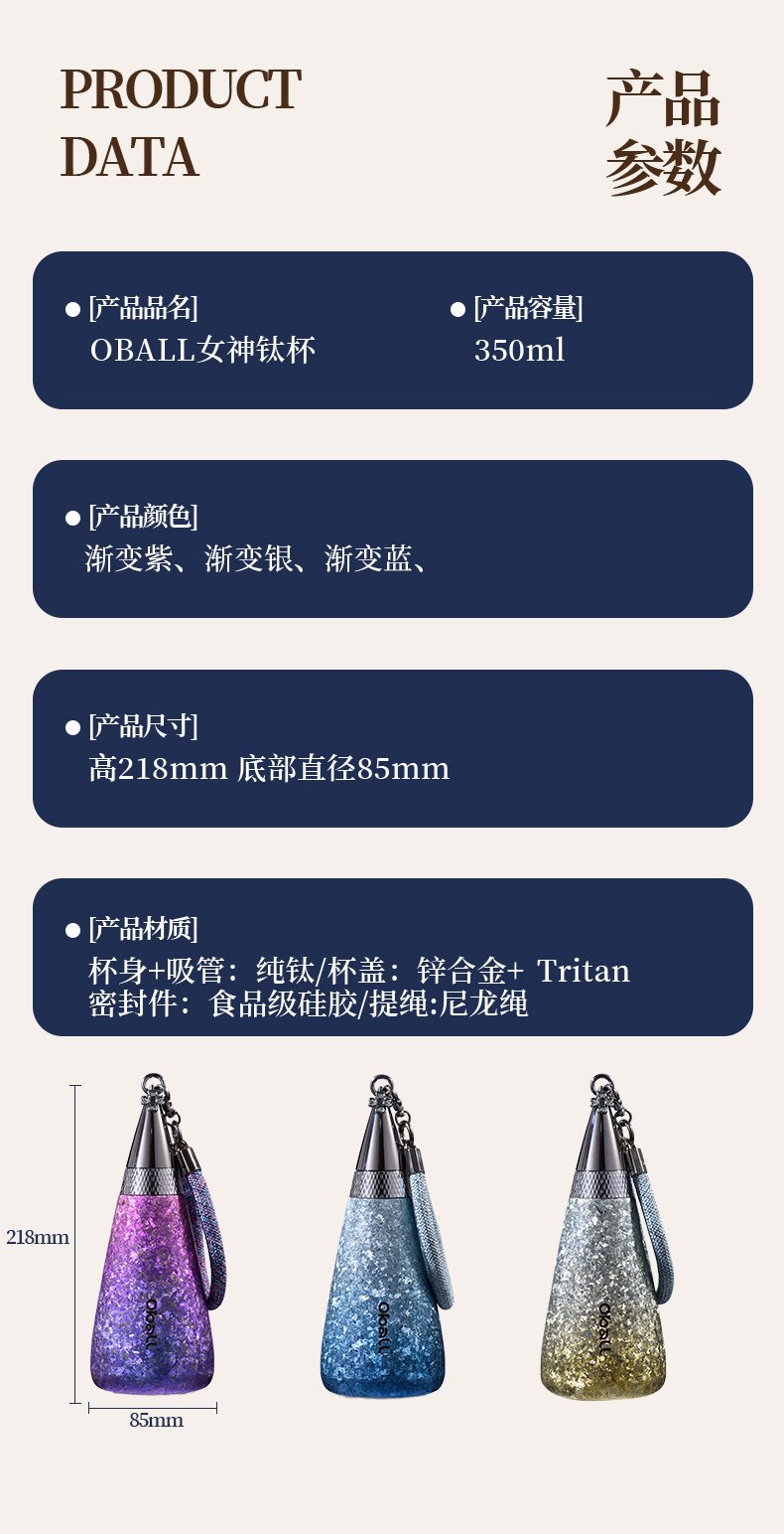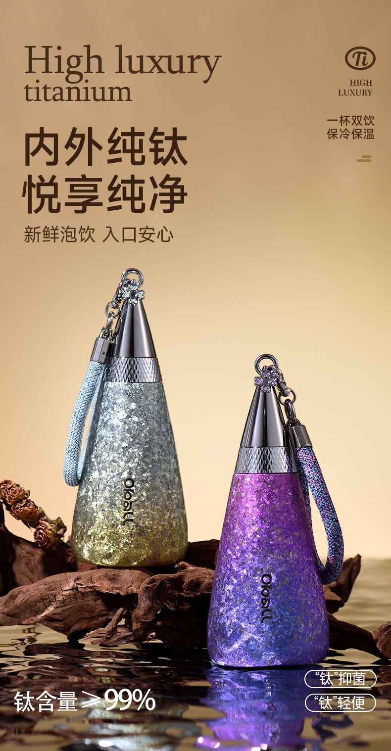 oball新款纯钛保温杯女高颜值钛杯吸管水杯子