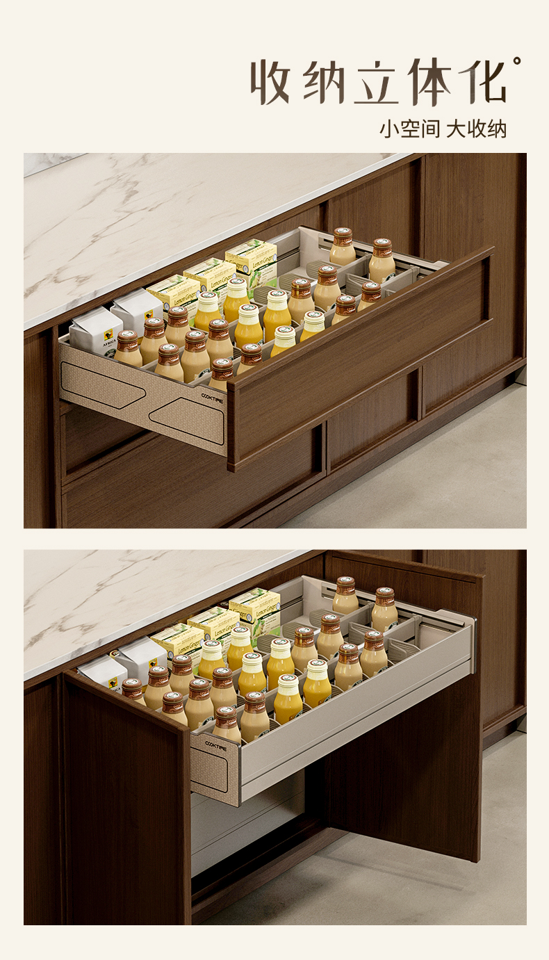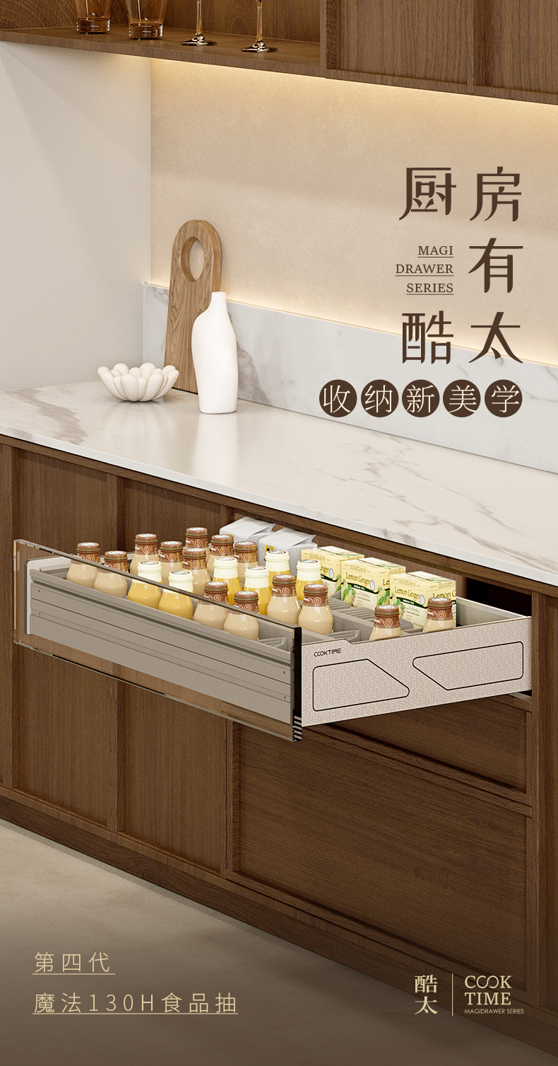 - 酷太坚持8年自主研发,已获得专利证书130项,拥有一套领先市场的厨房收纳系统,为千万中国家庭解决厨房脏乱差,缔造厨房新生活。