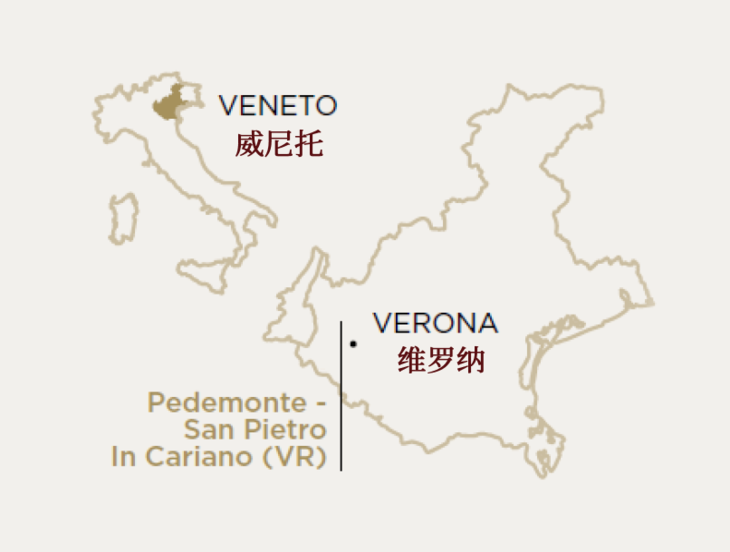 瓦尔波利切拉(Valpolicella)拥有得天独厚的地理条件:来自阿尔卑斯山的冷风和加达尔湖的暖风在这里相遇,而不同的土壤来源,使得这里的钙质和玄武质火山岩如此独特,孕育出非常与众不同的优质葡萄。