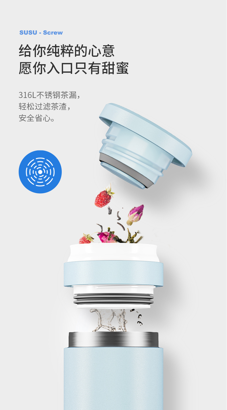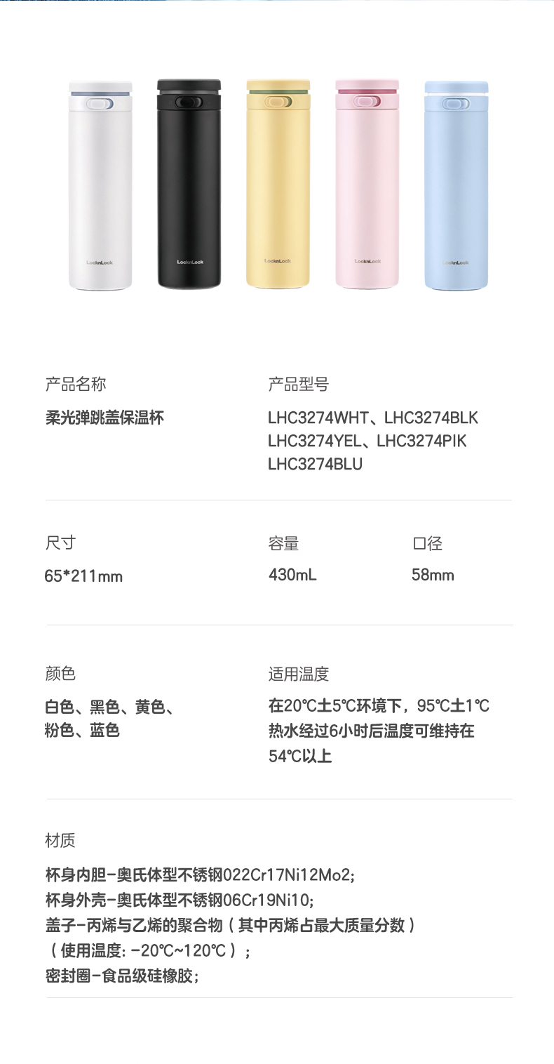 乐扣乐扣susu系列保温杯龚俊同款女便携316不锈钢水杯简约学生情侣送礼
