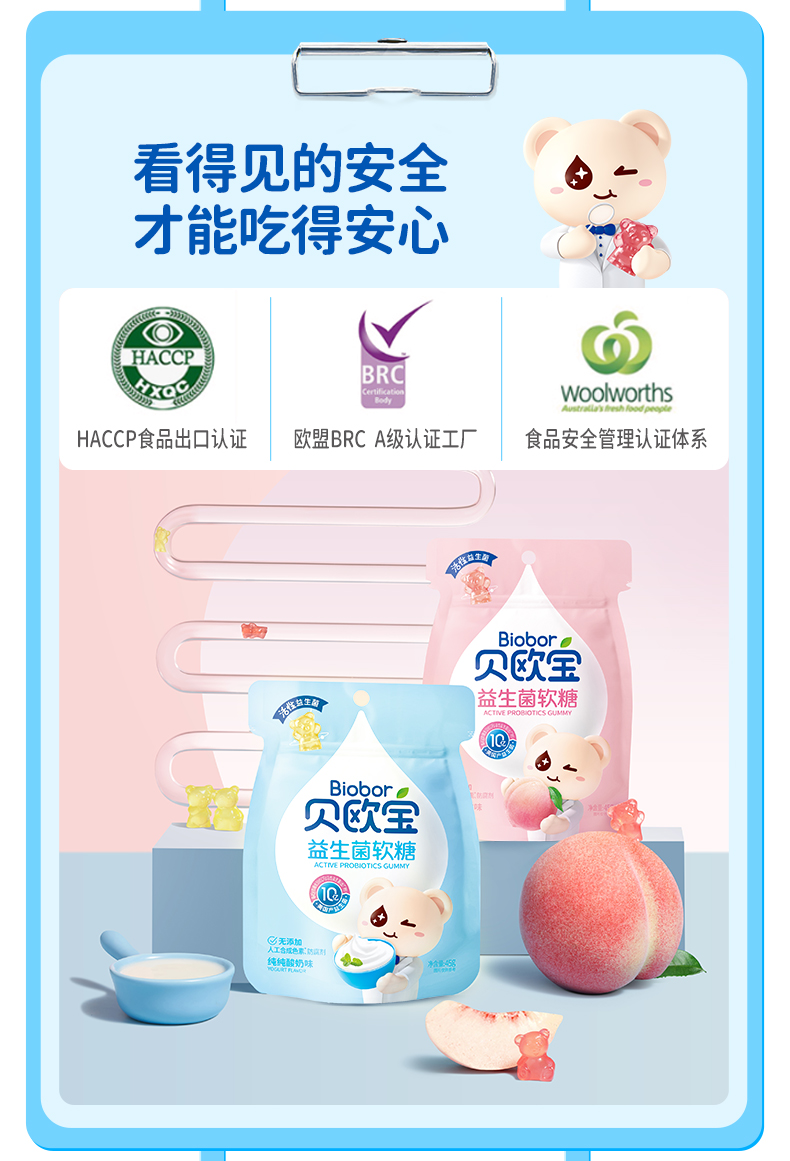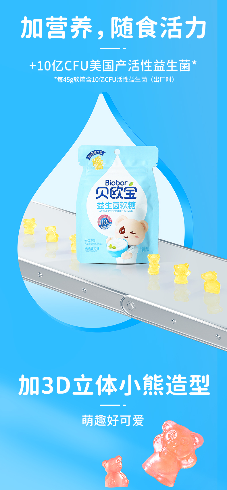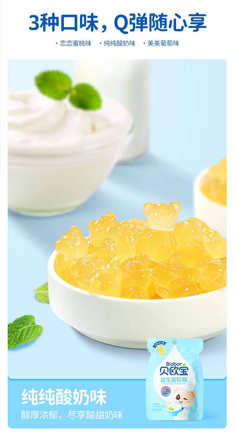 贝欧宝软糖活性益生菌乳酸菌软糖qq糖橡皮糖网红糖果儿童零食小熊