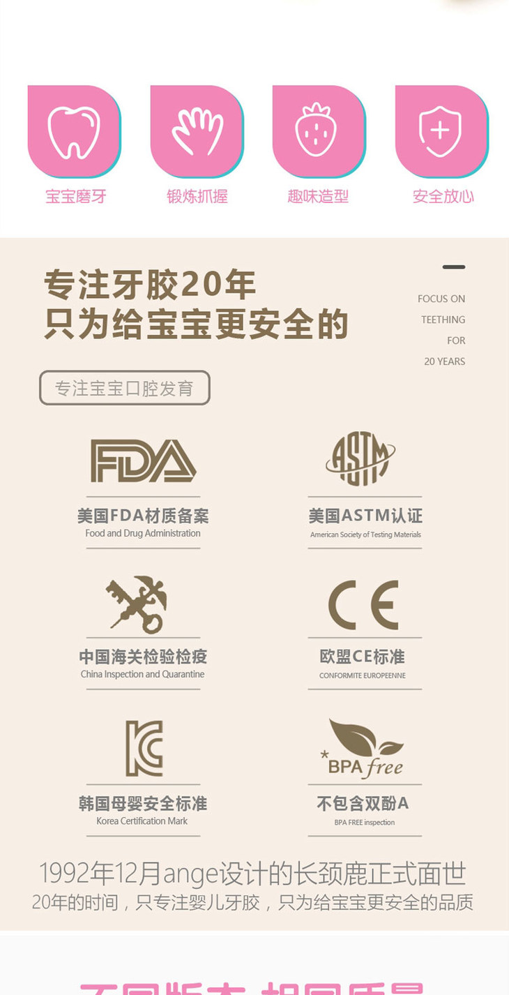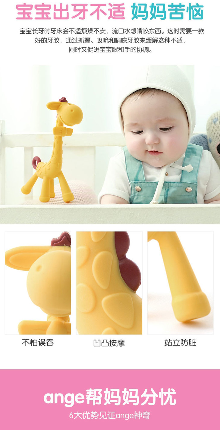 ange韩国婴儿长颈鹿手环牙胶宝宝磨牙棒可水煮咬胶玩具防吃手神器