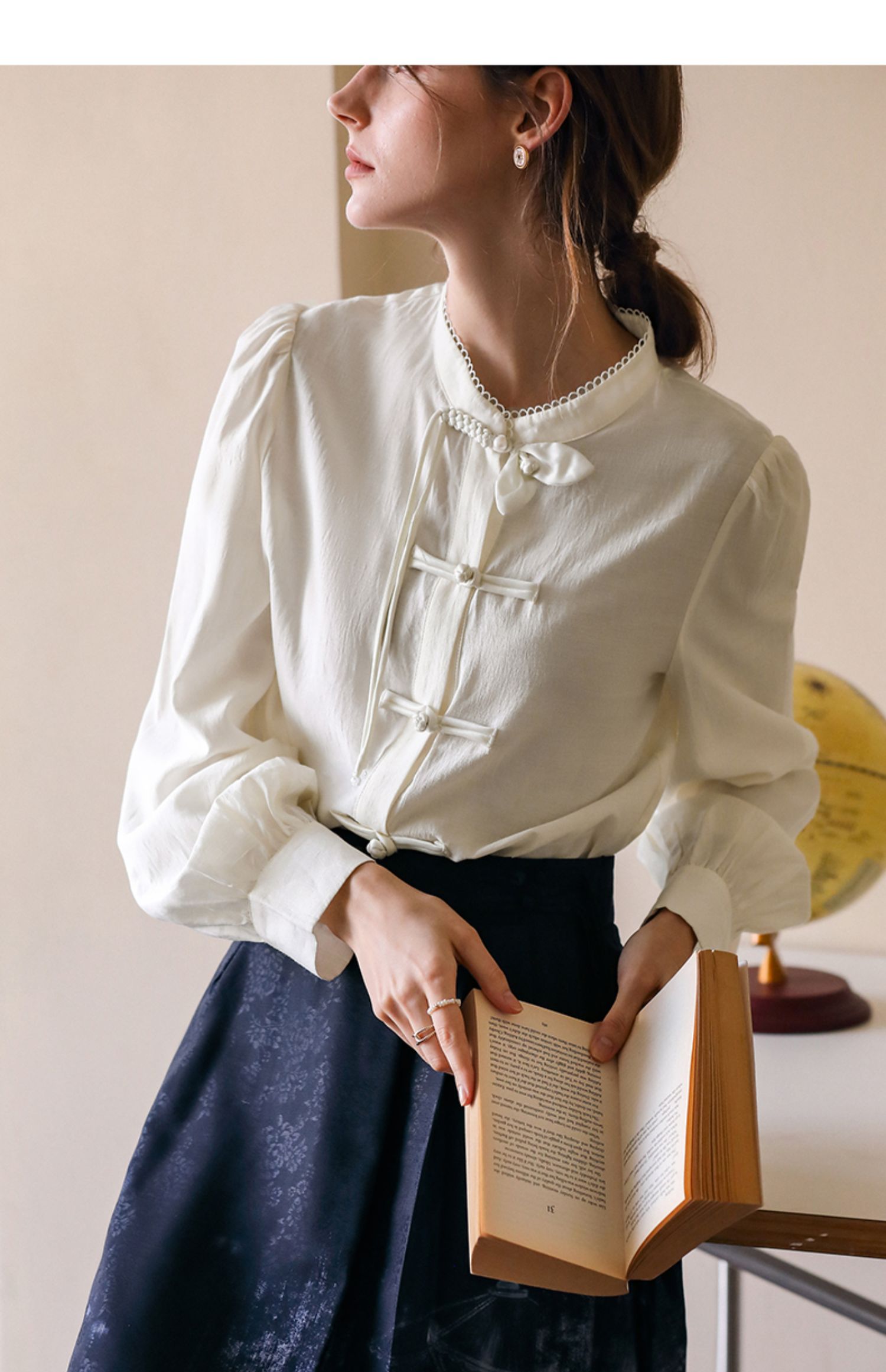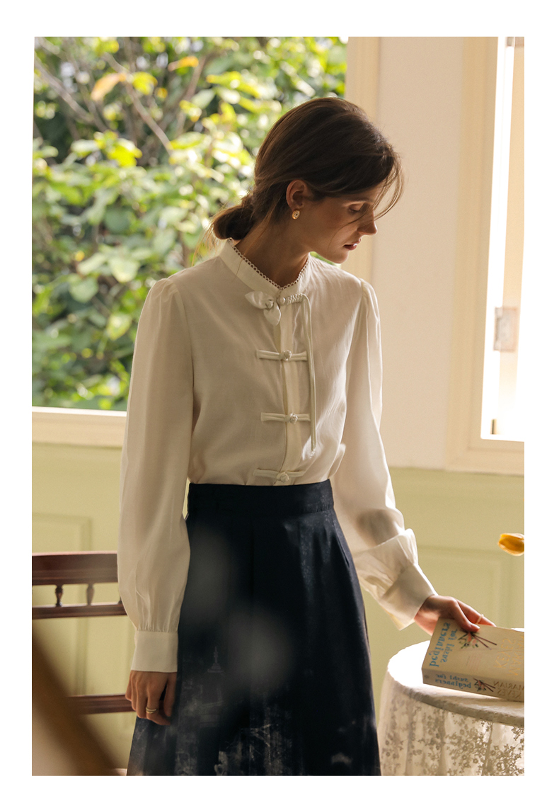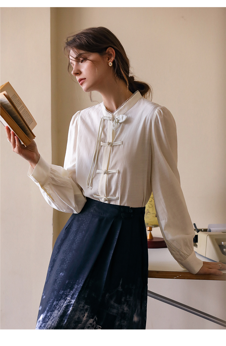 OLrain欧芮儿新中式衬衫女早春2024新款日常通勤小众盘扣衬衣上衣
