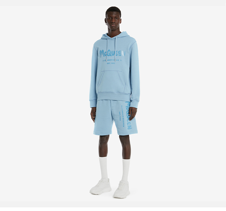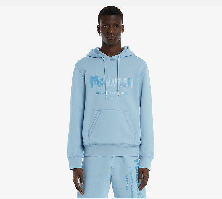 ALEXANDER MCQUEEN 亚历山大麦昆 男士棉质 McQueen 涂鸦印花连帽卫衣 浅蓝色 688715 QTZ81 0913