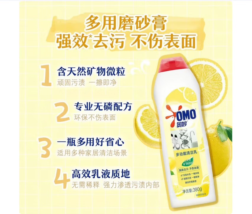 奥妙(OMO)自然工坊多功能清洁乳柠檬型 380G