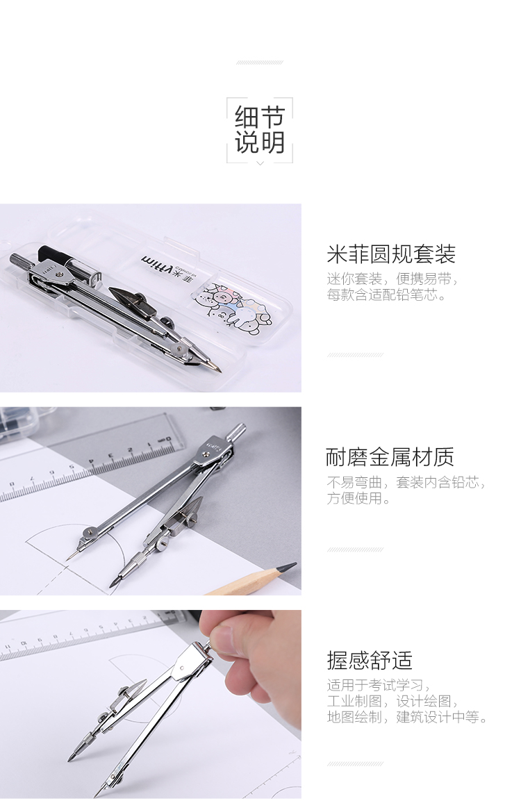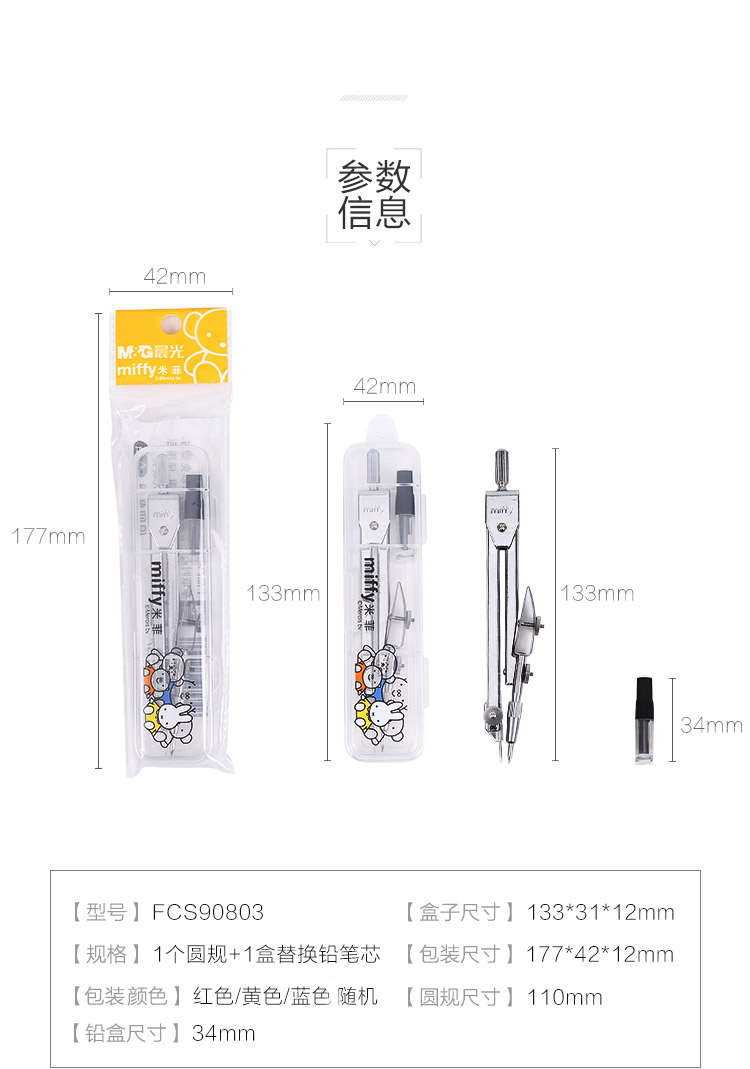 晨光(M&G)文具金属圆规套装 米菲系列学生绘图考试圆规(内附铅芯)FCS90803