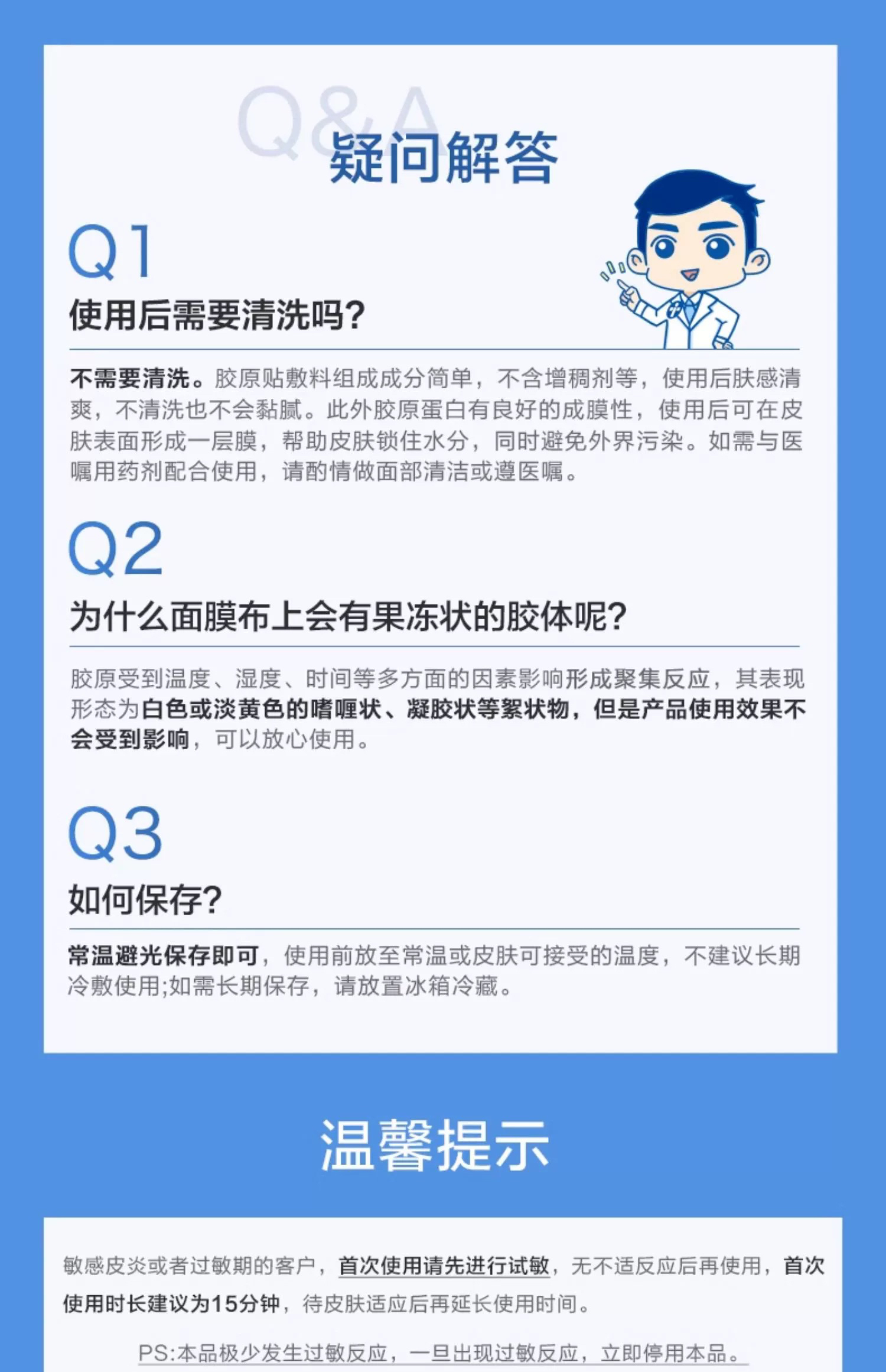 晒后修护期: 每天一片,连续3天,再隔天敷一次(晒后一定要及