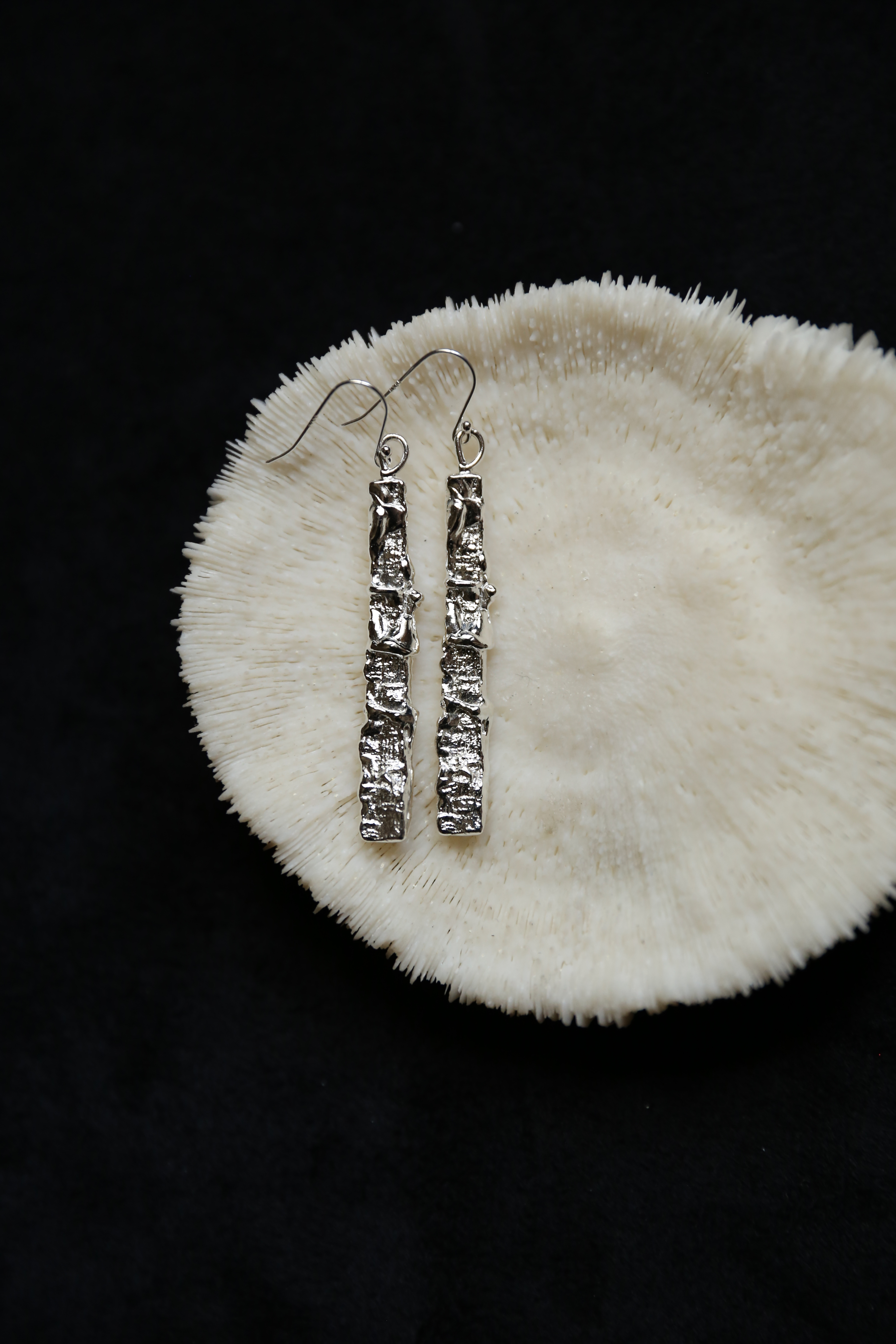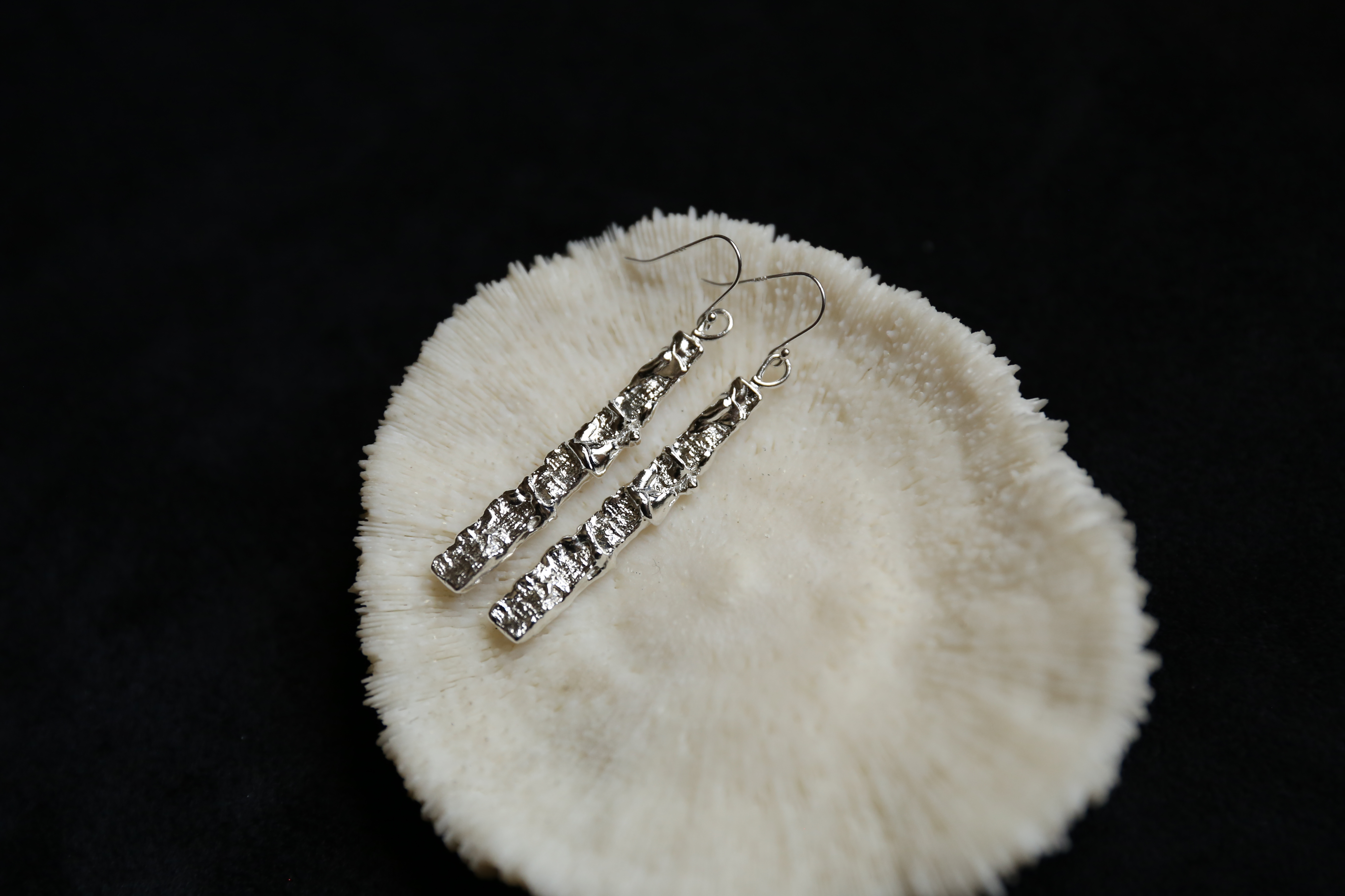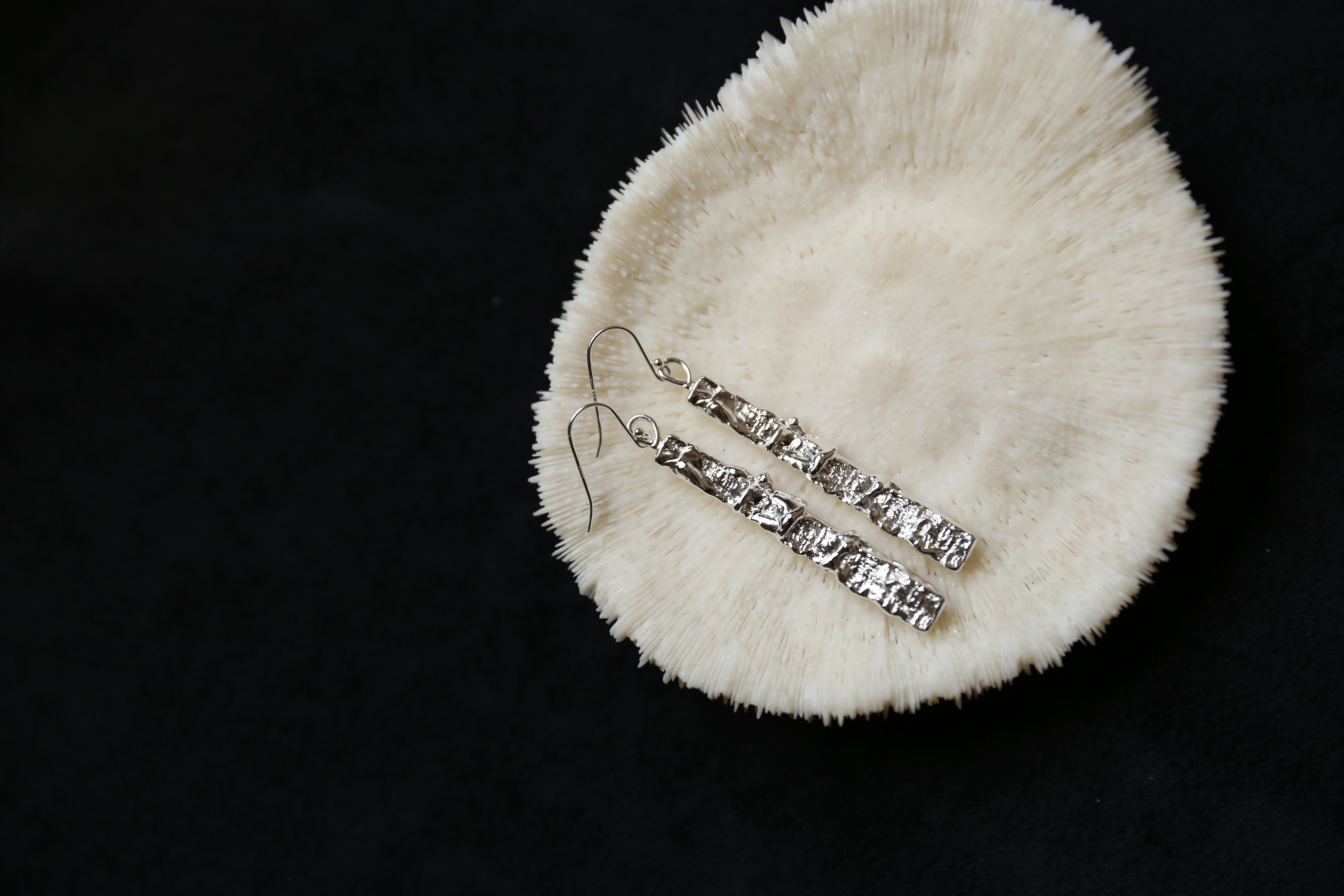 925银手工织物肌理耳环