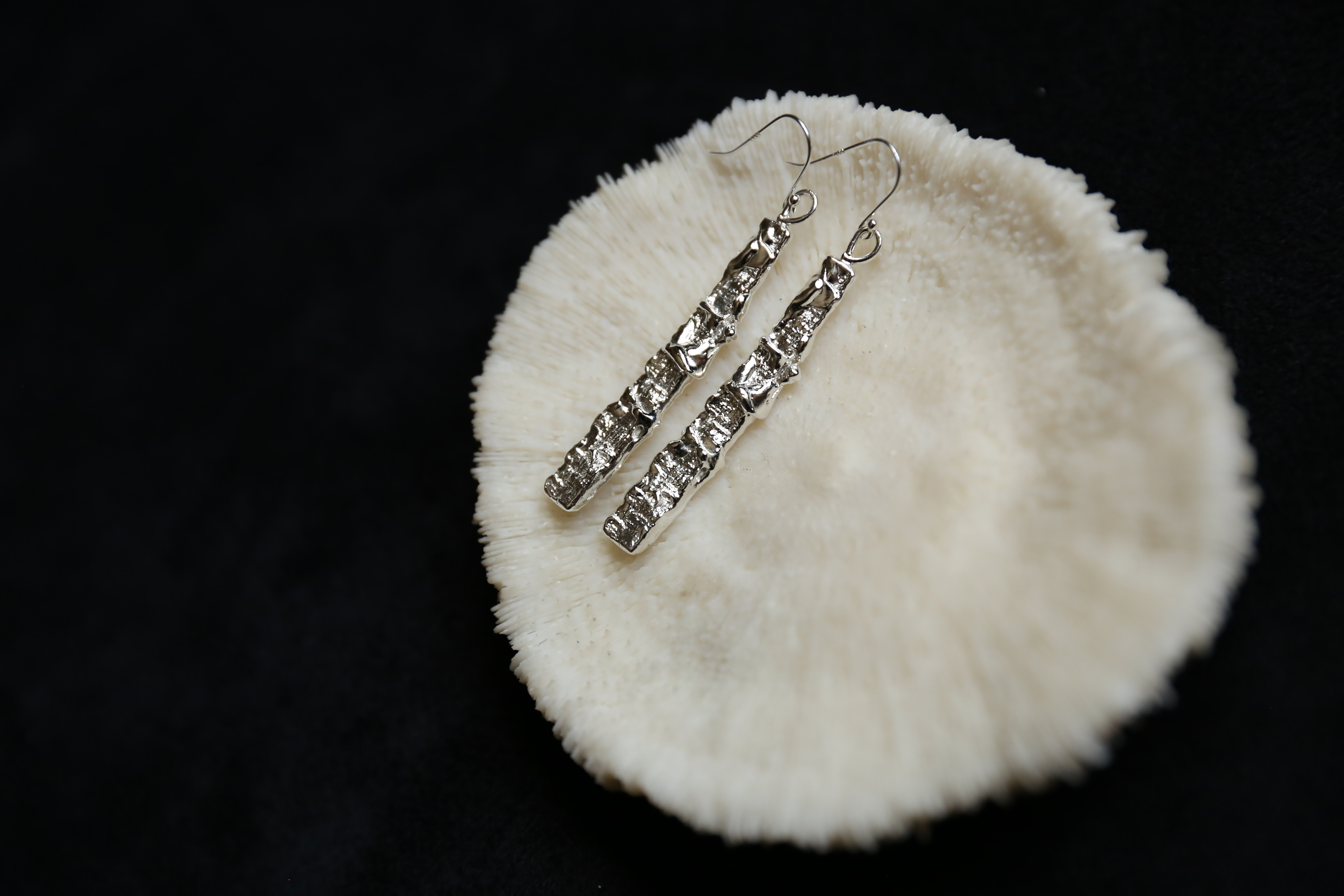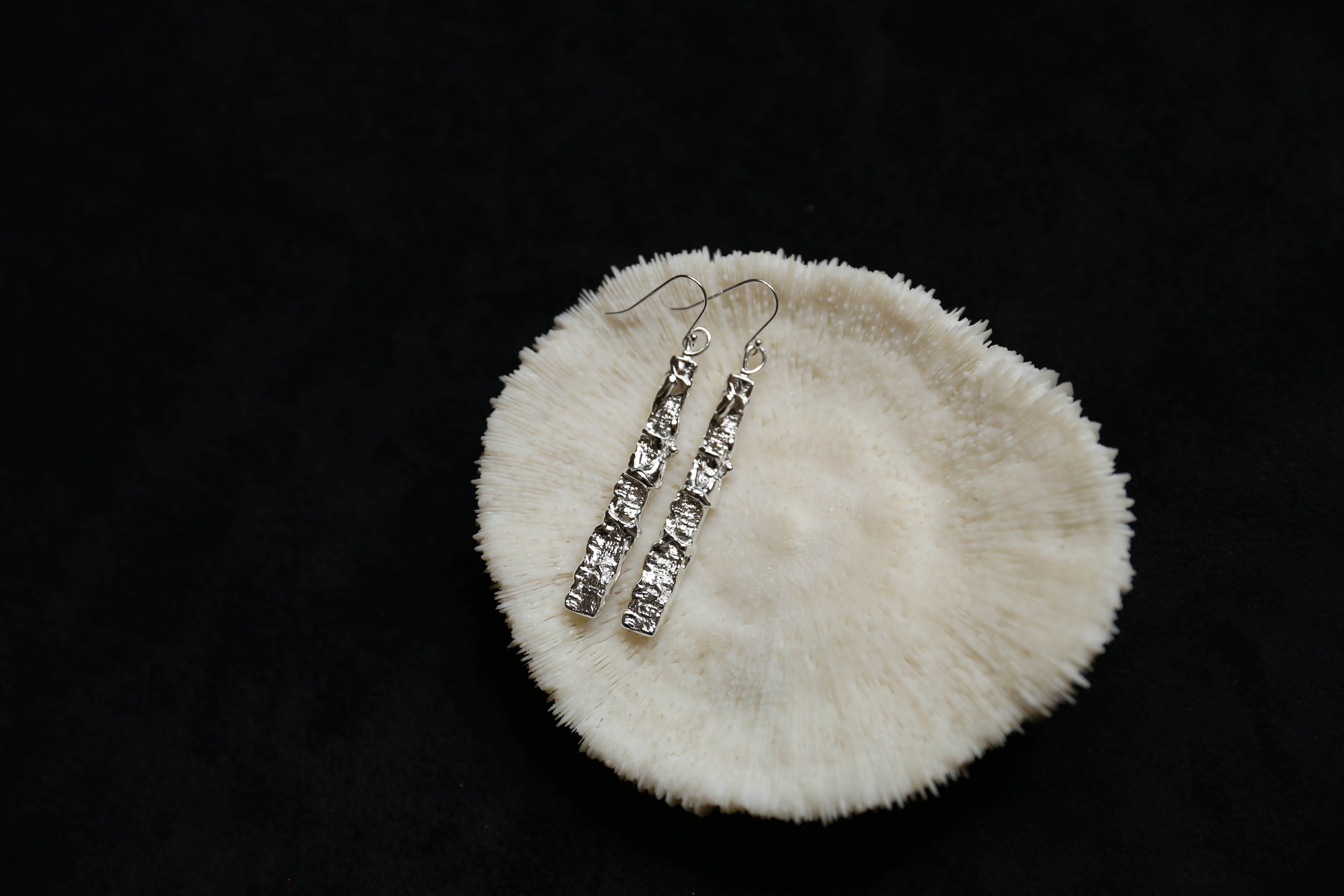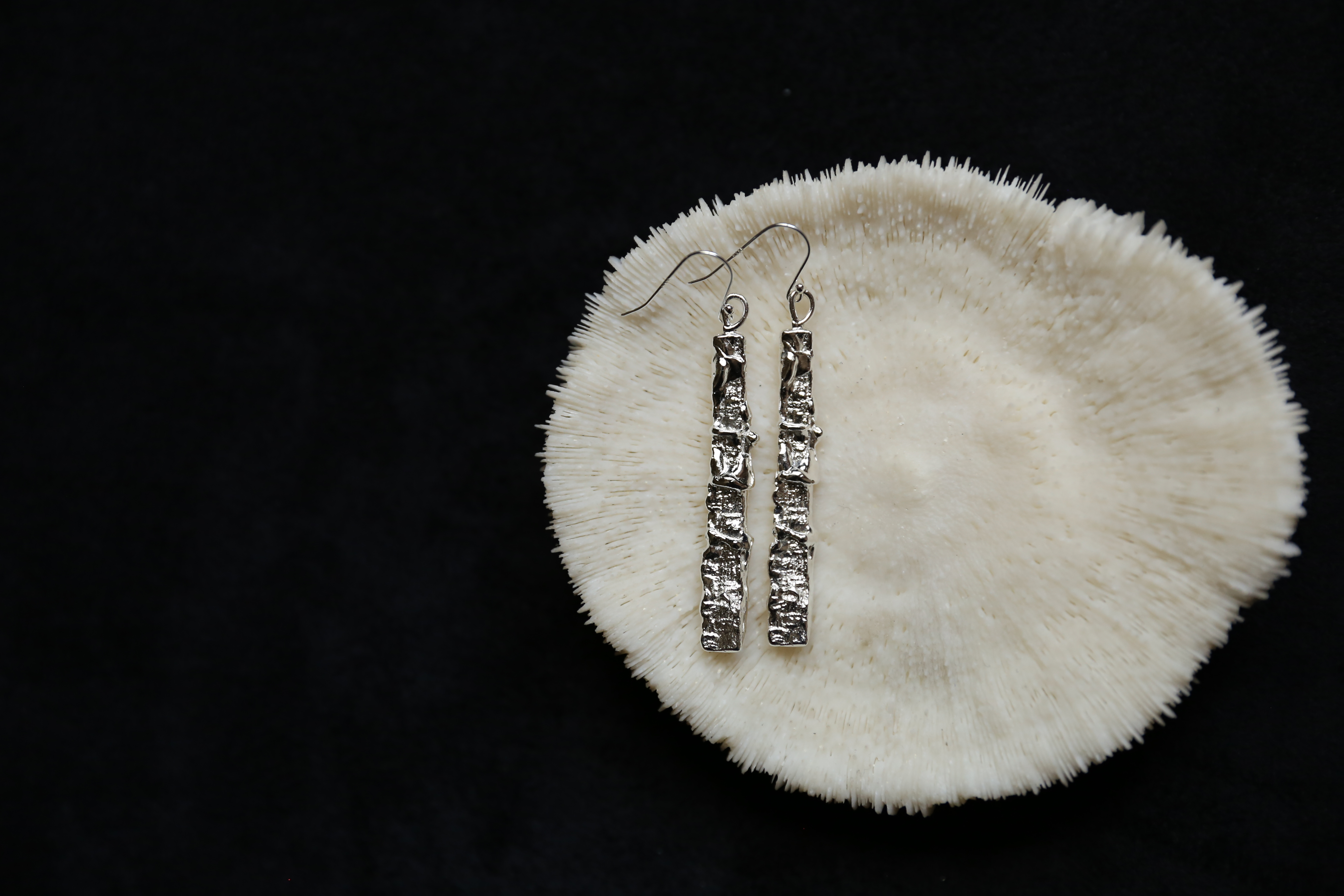 925银手工织物肌理耳环
