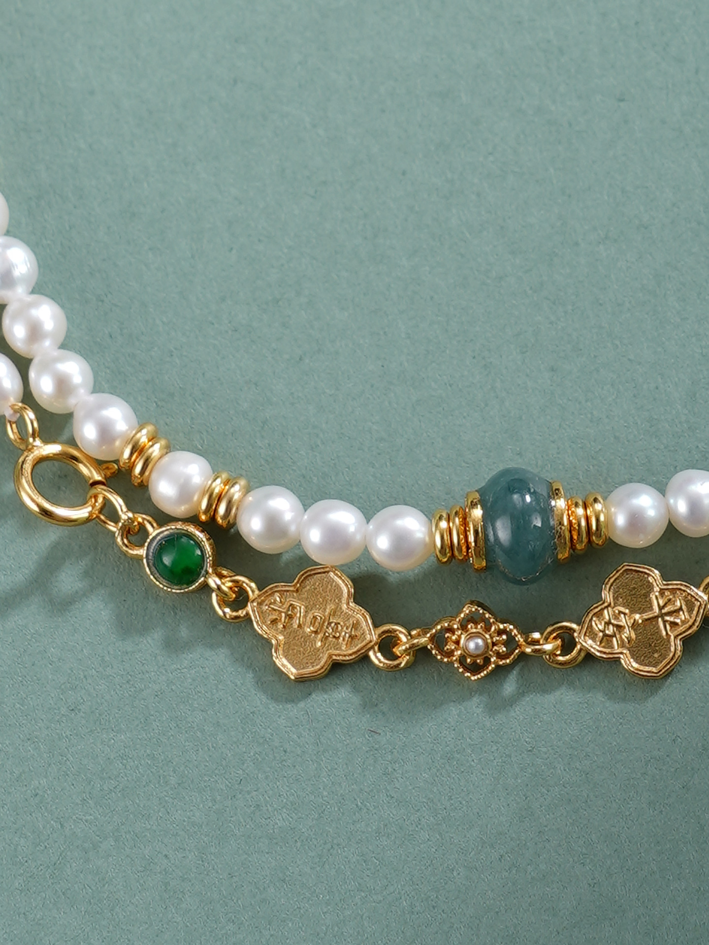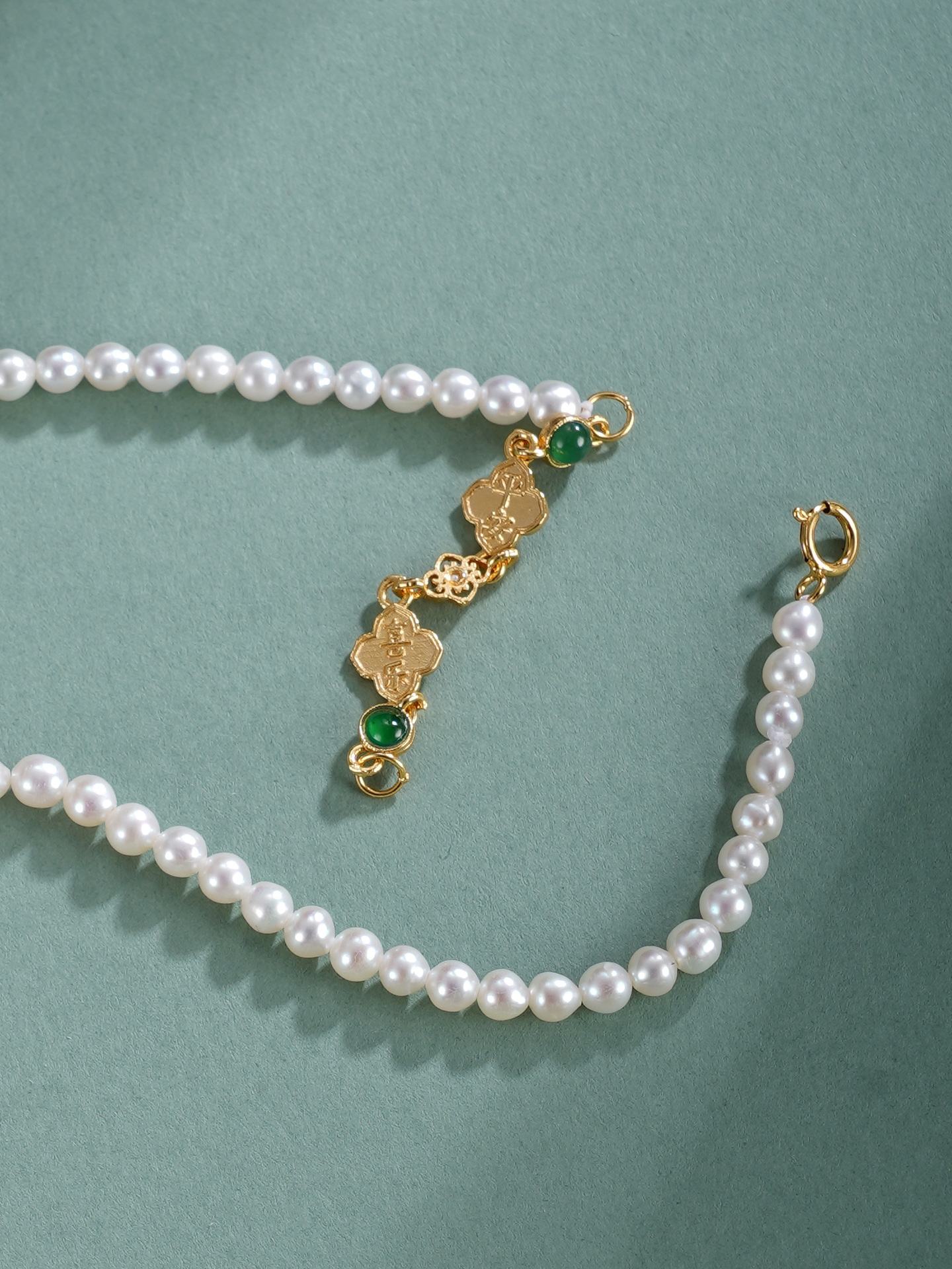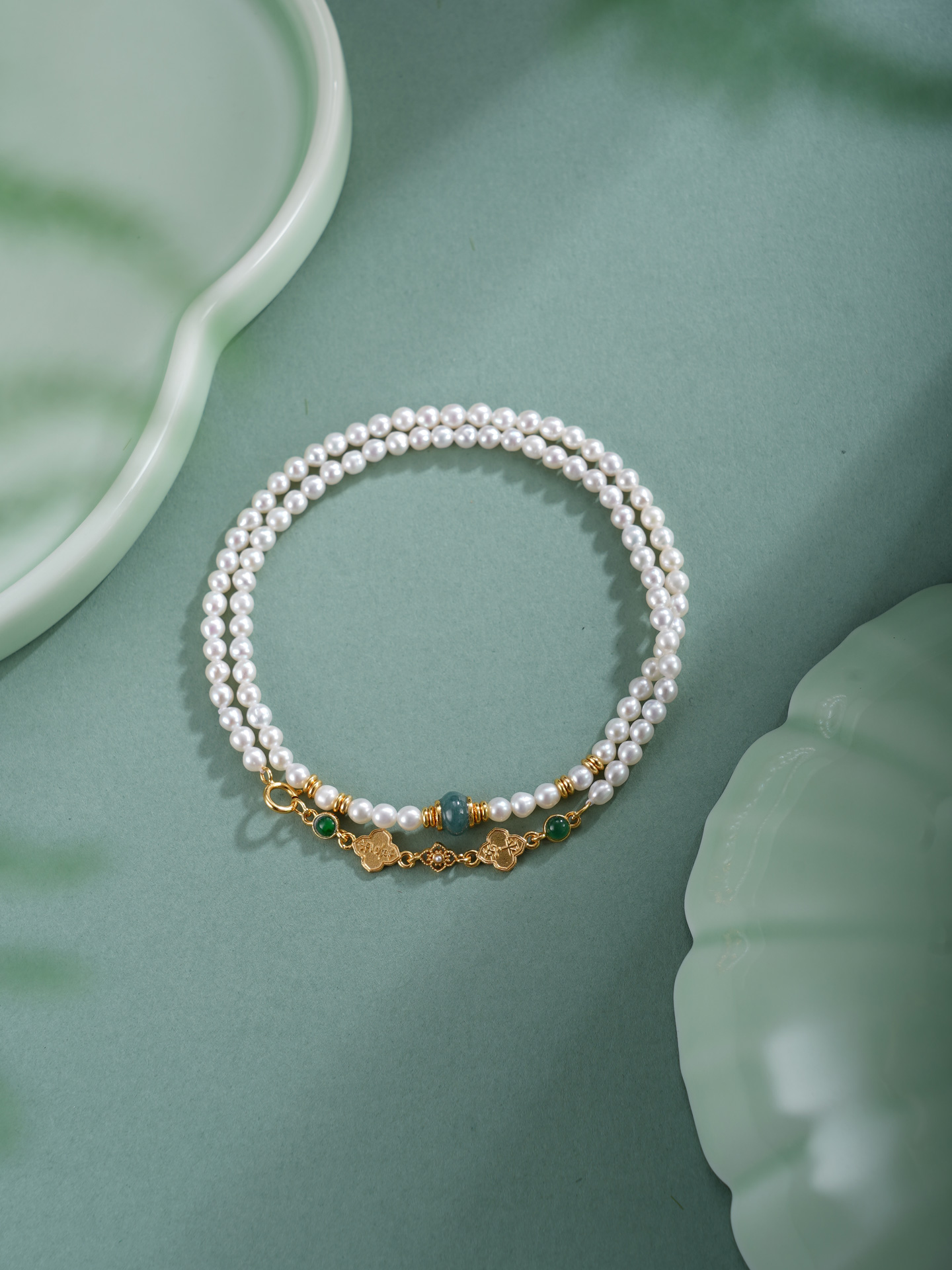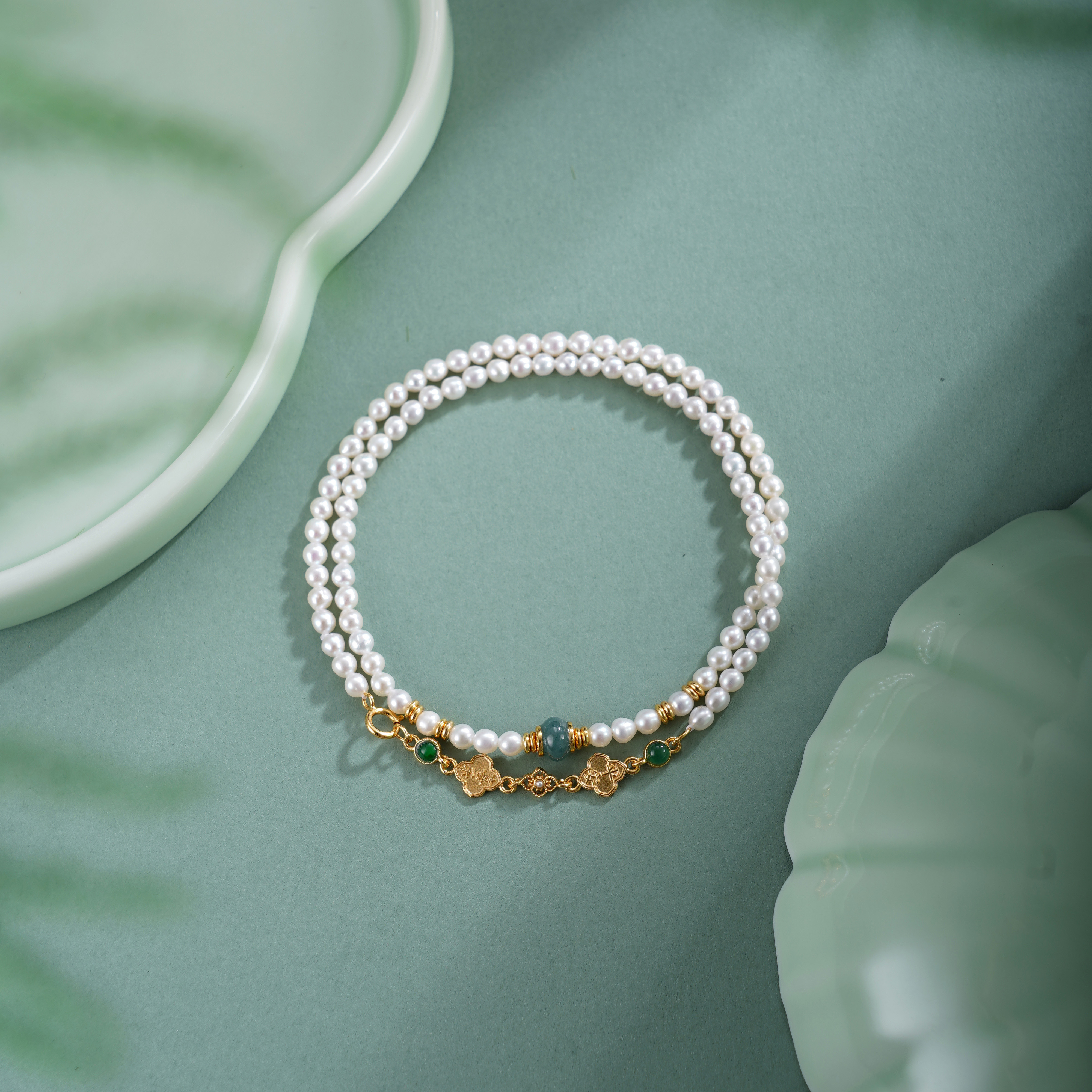 子佩集【四叶韶华】银S925珍珠惜王妃手链【QNS0013】3mm珠镀金碧玉四叶草2601