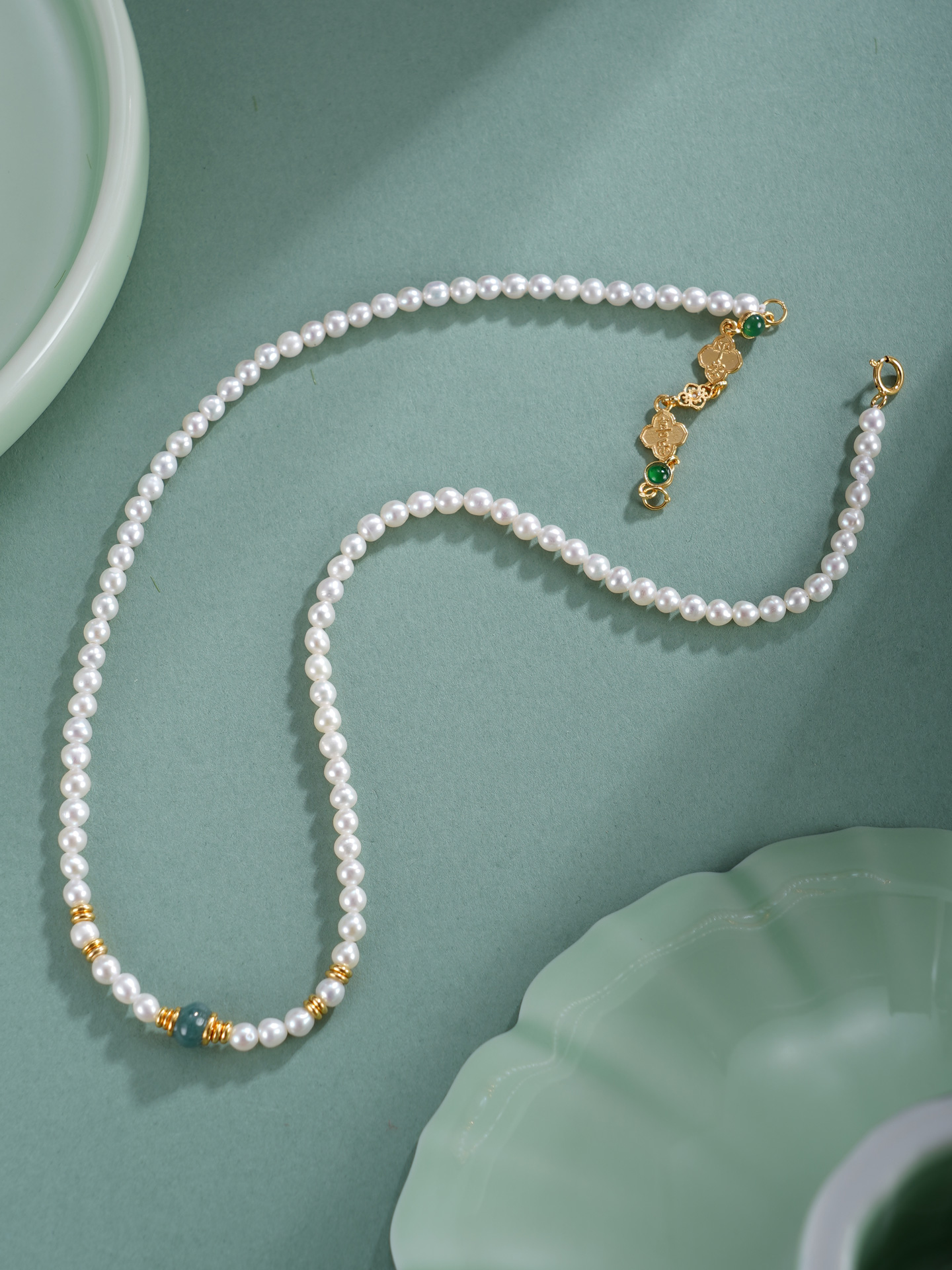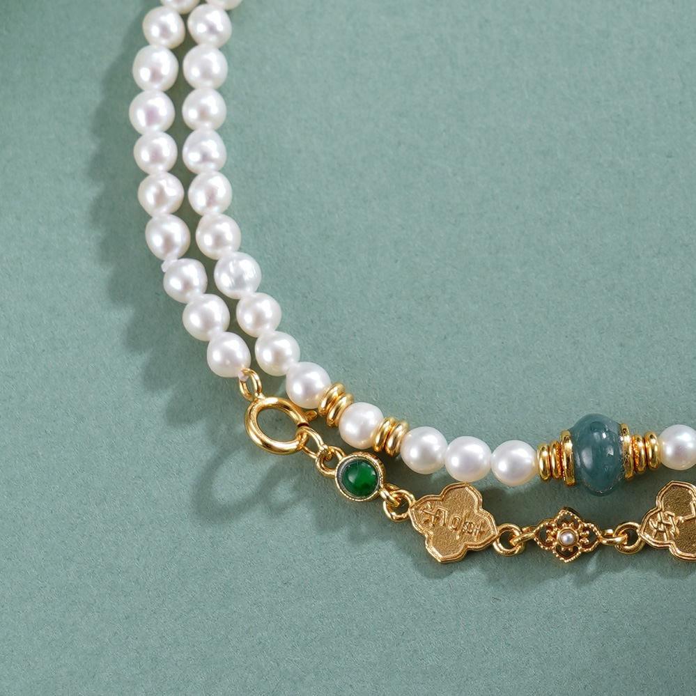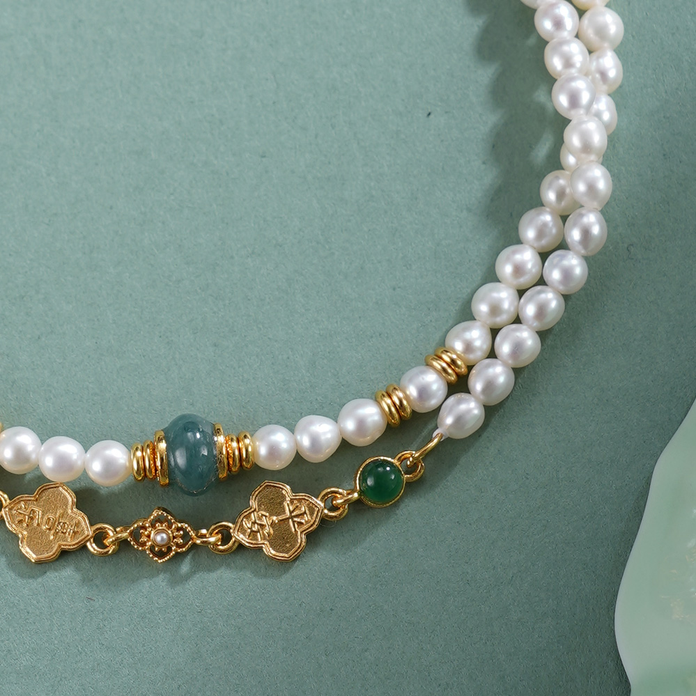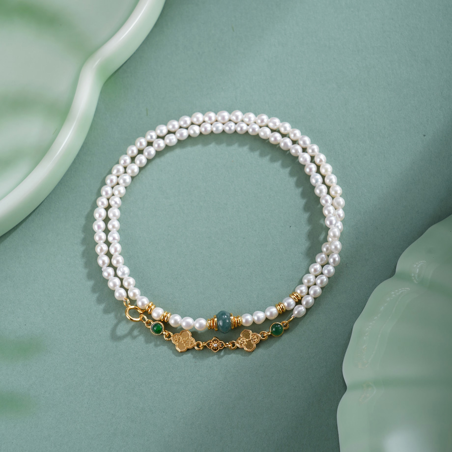 子佩集【四叶韶华】银S925珍珠惜王妃手链【QNS0013】3mm珠镀金碧玉四叶草2601