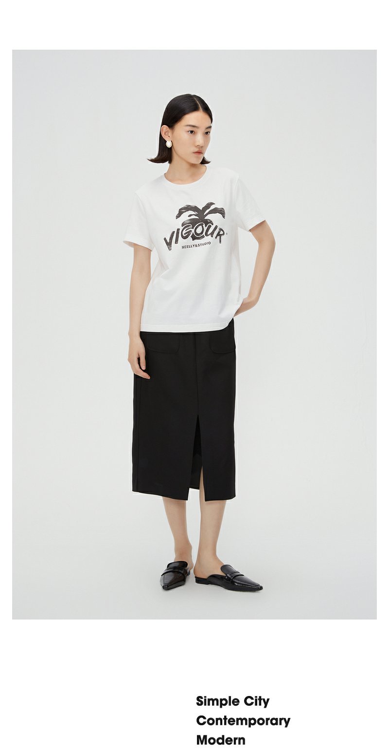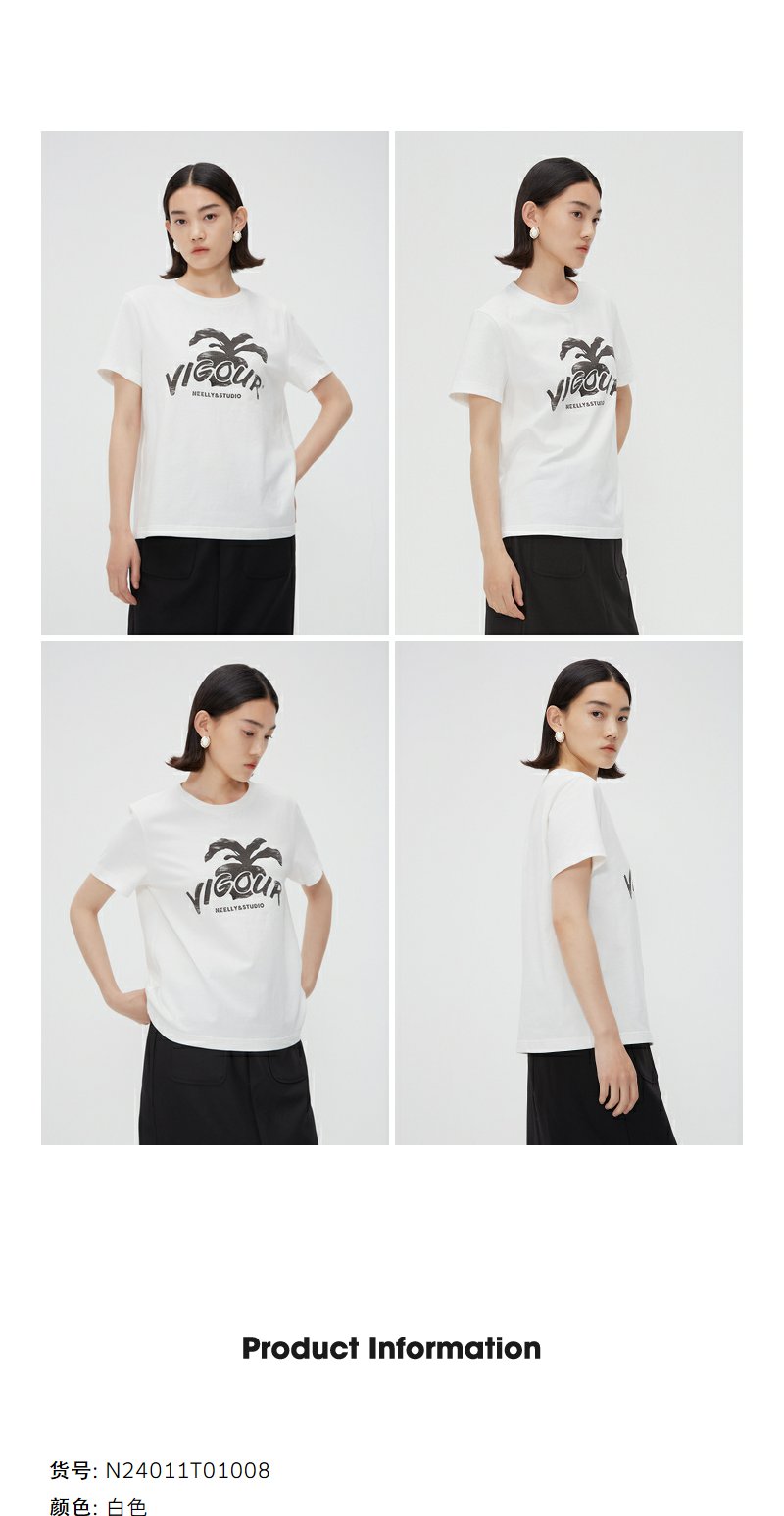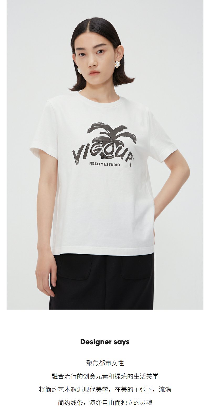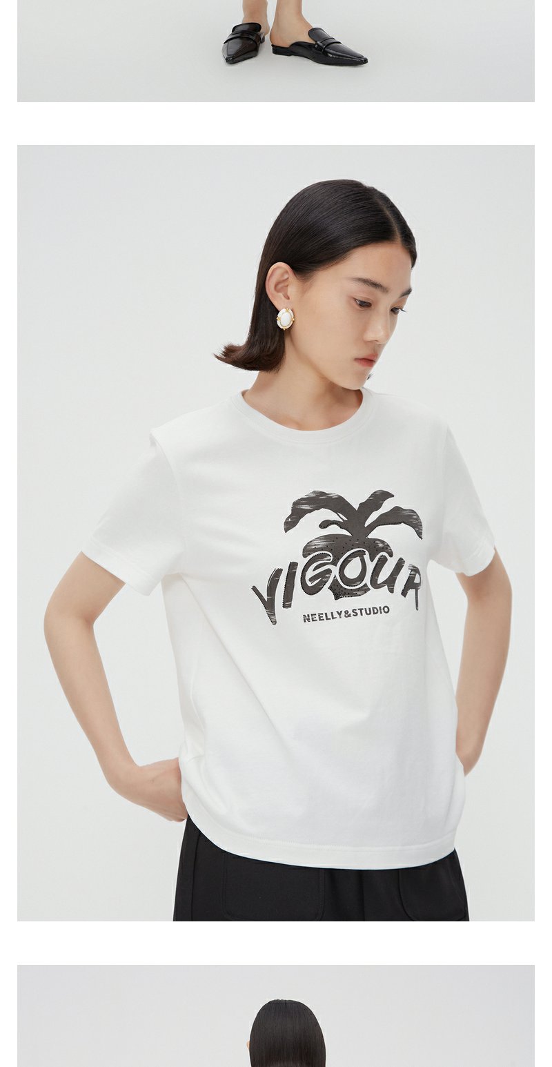 NEELLY纳俪商场同款春季新款美式复古字母短袖T恤女宽松慵懒上衣N24011T01008