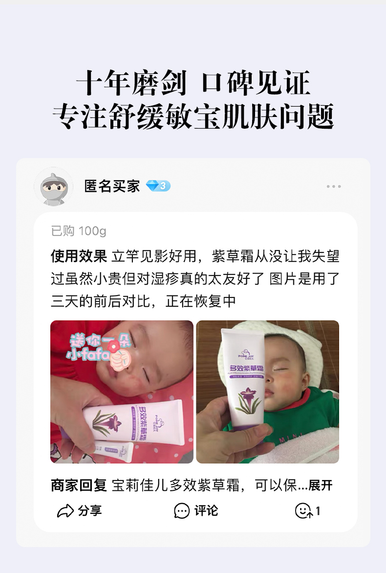 宝莉佳儿紫草霜敏宝红痒特护宝宝舒缓保湿面霜婴儿紫草素屏障霜