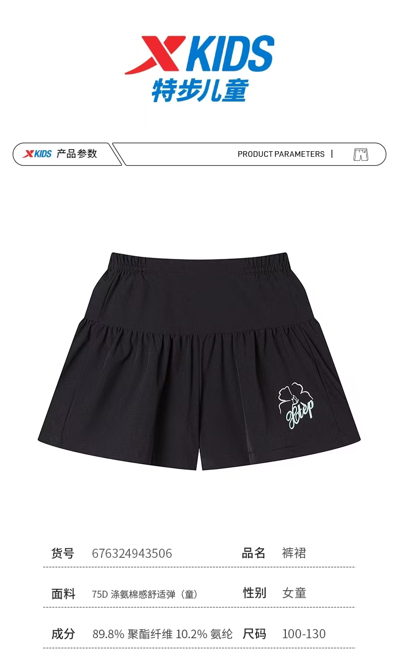 特步儿童女小童裤裙 运动速干科技676324943506