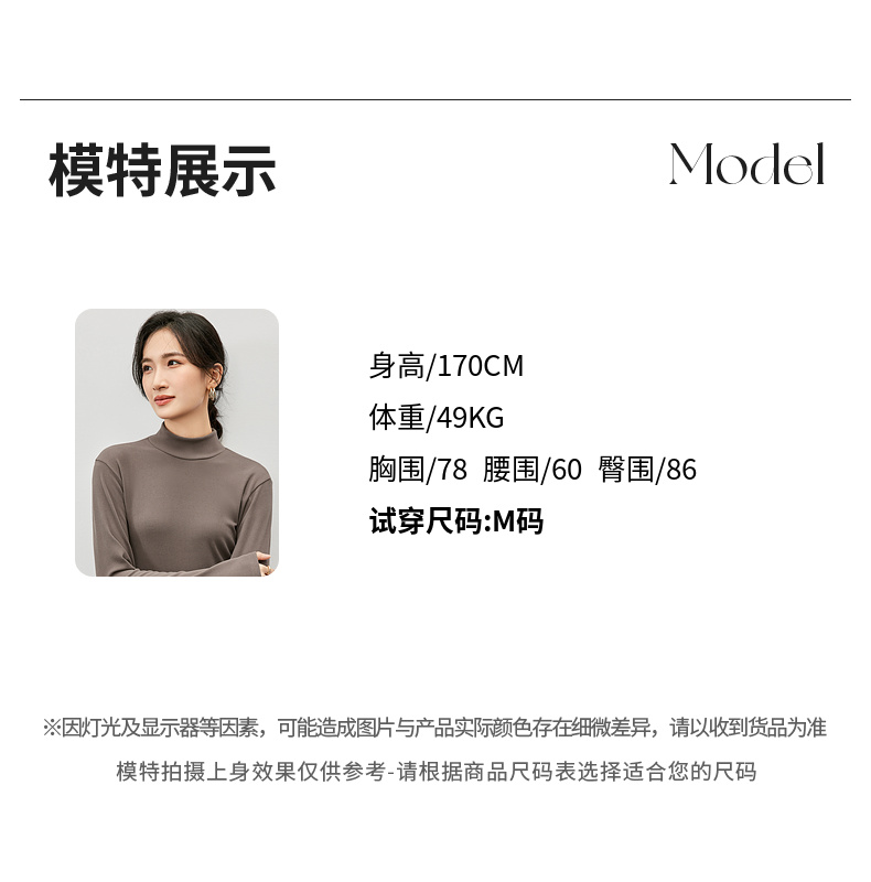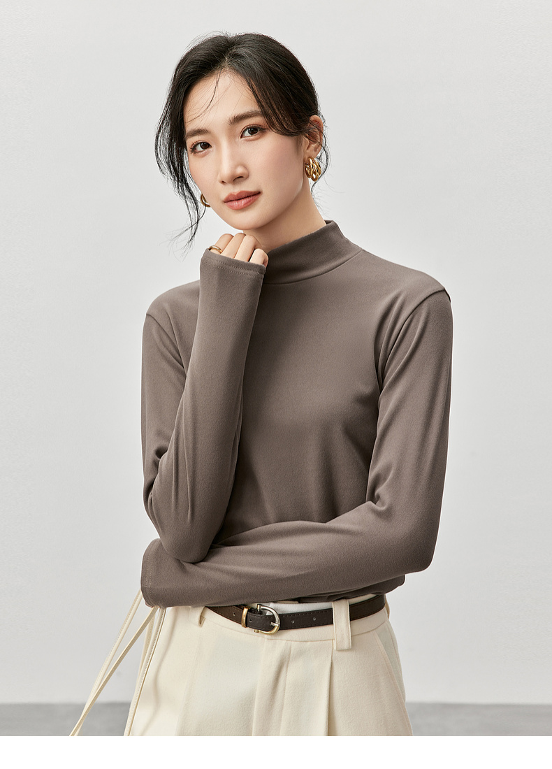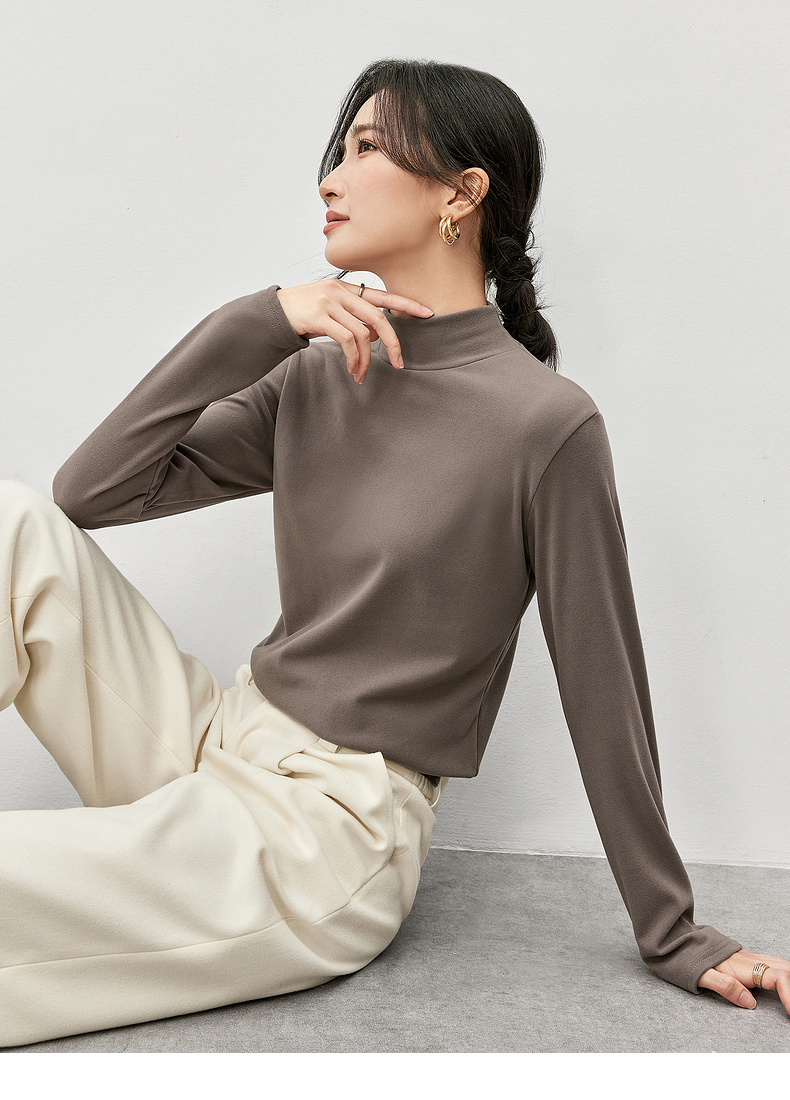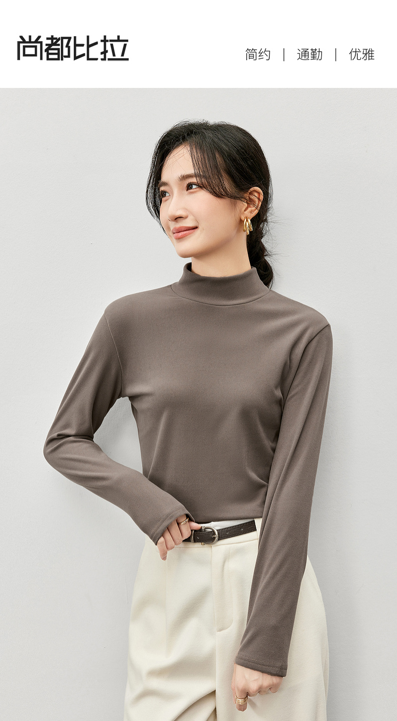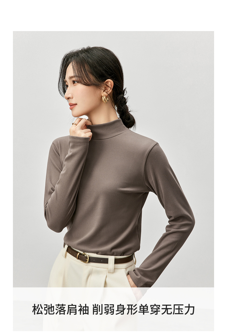 【内购】24年冬新品保暖椰绒半高立领打底衫磨毛T恤女秋冬季新款内搭上衣-W44S57115