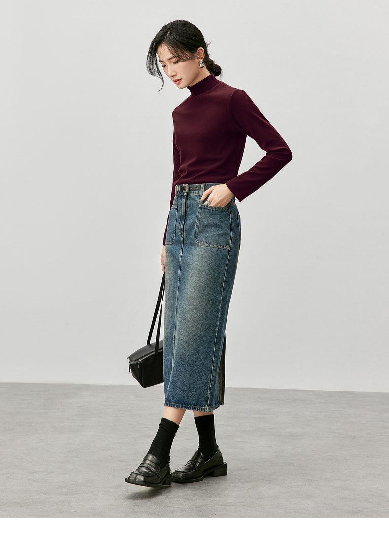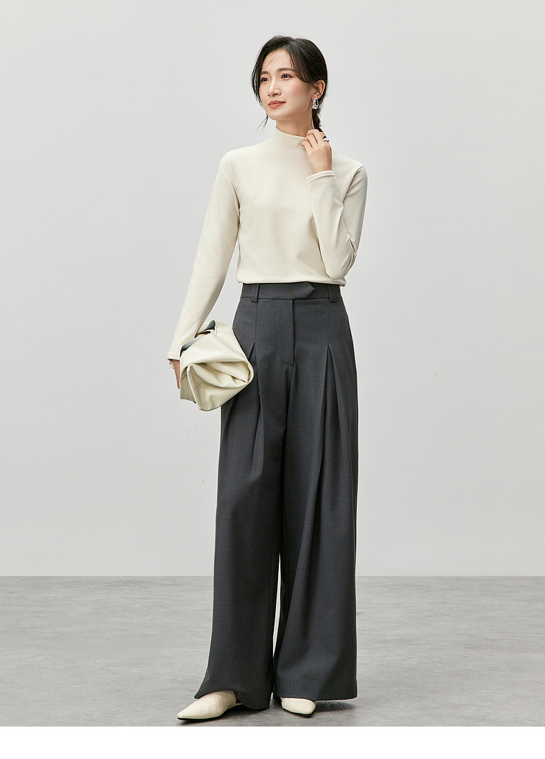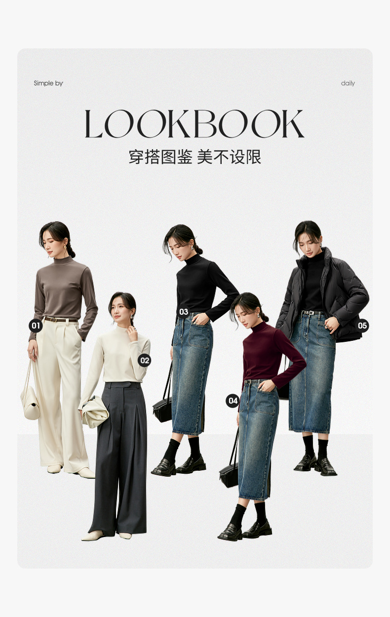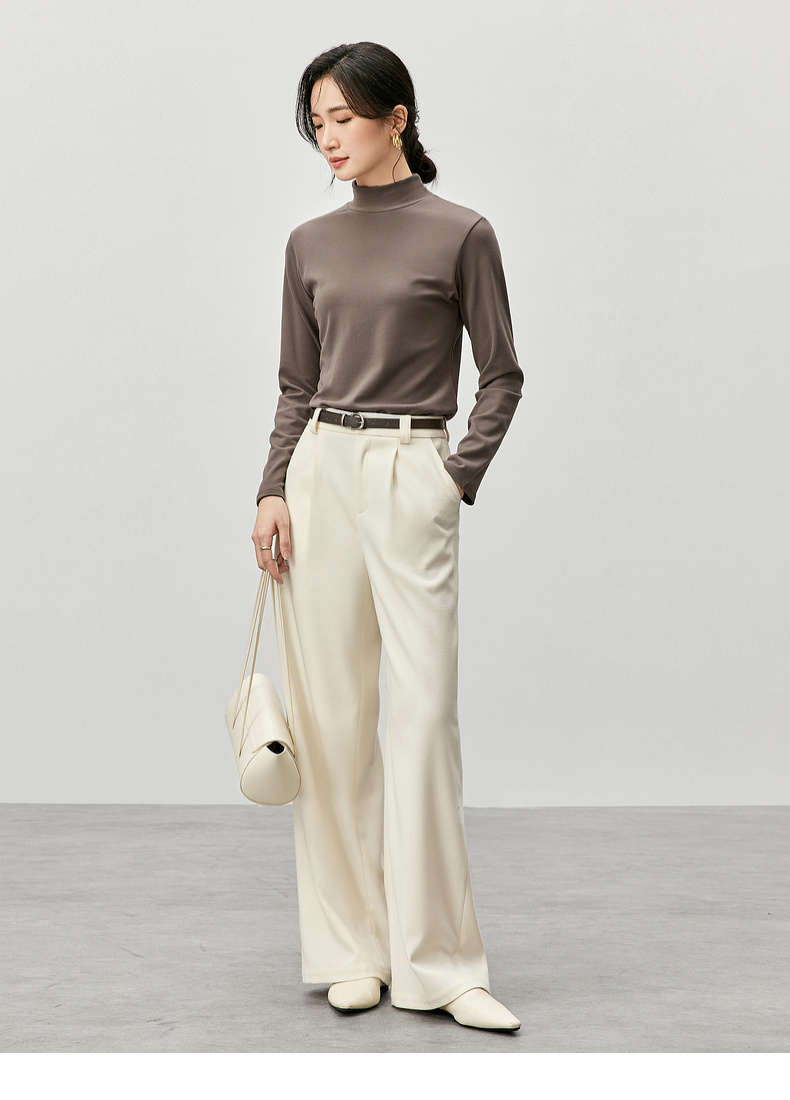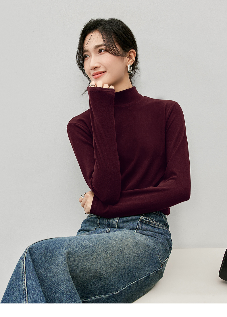 【内购】24年冬新品保暖椰绒半高立领打底衫磨毛T恤女秋冬季新款内搭上衣-W44S57115