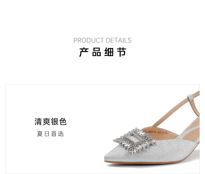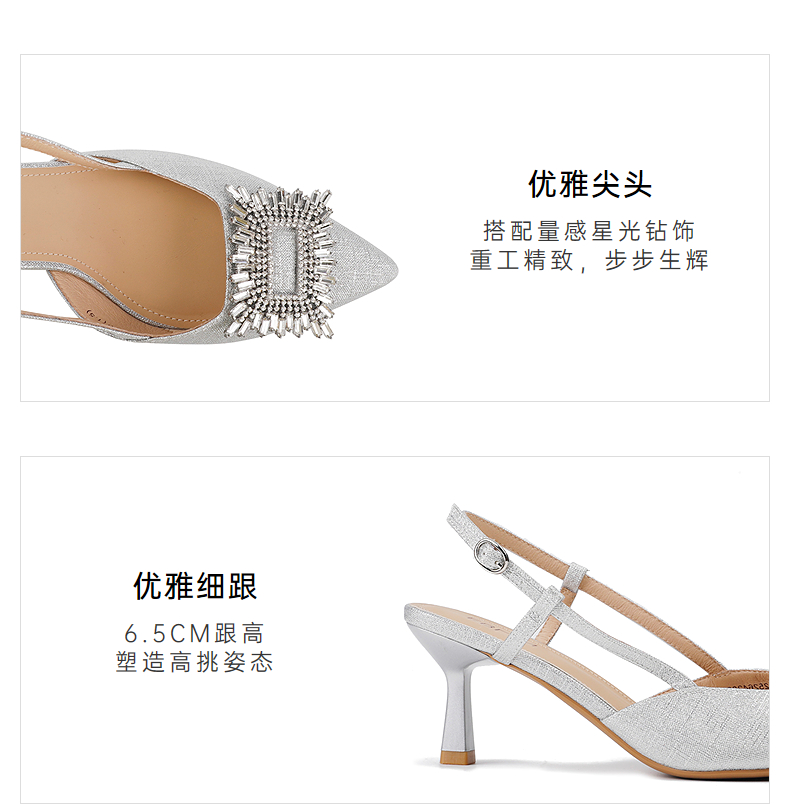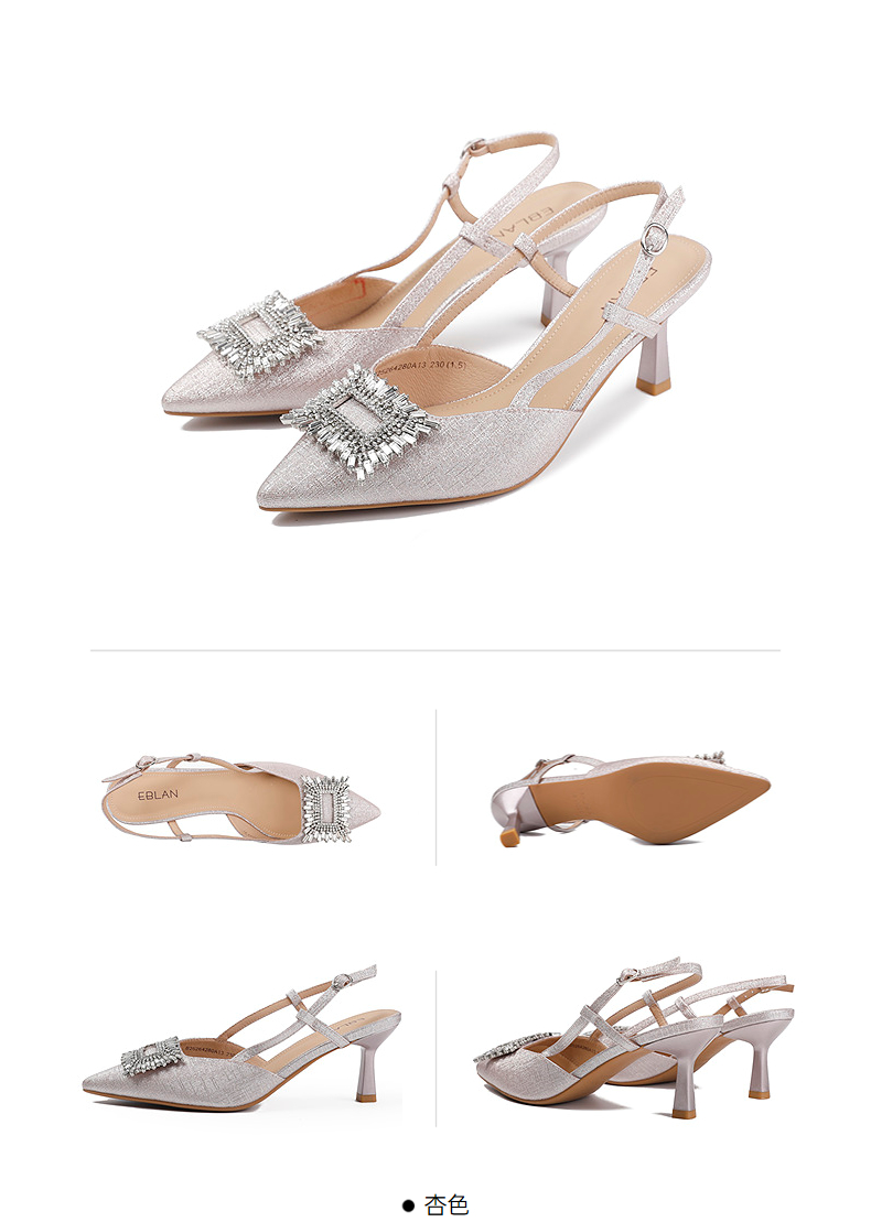 伊伴夏季细高跟后空高跟鞋重工饰扣凉鞋B25264280