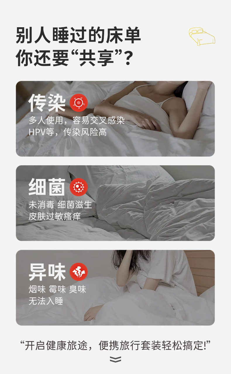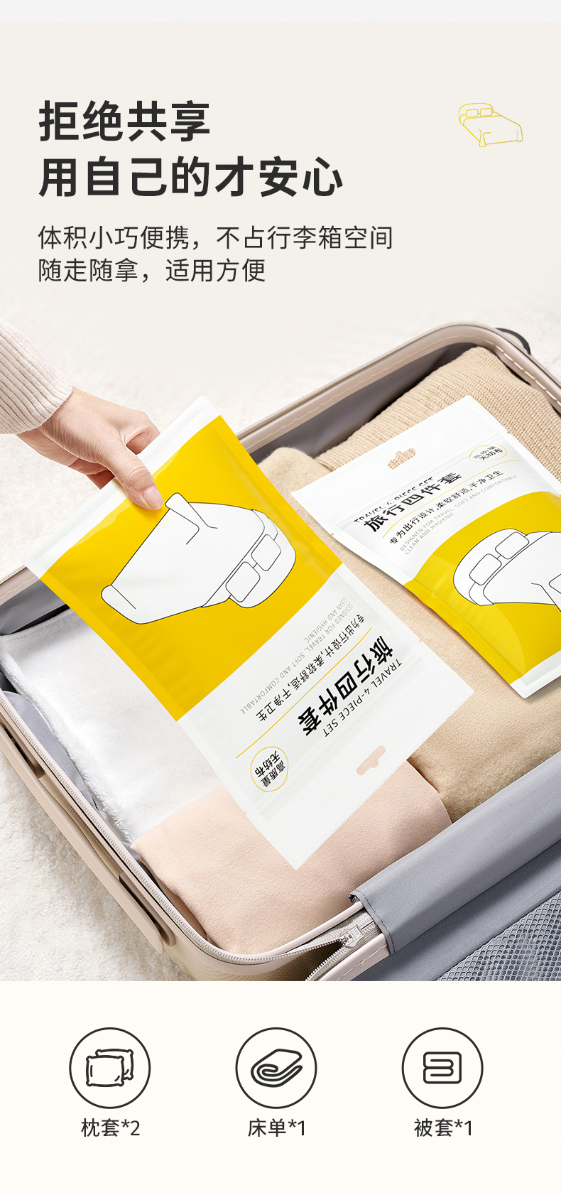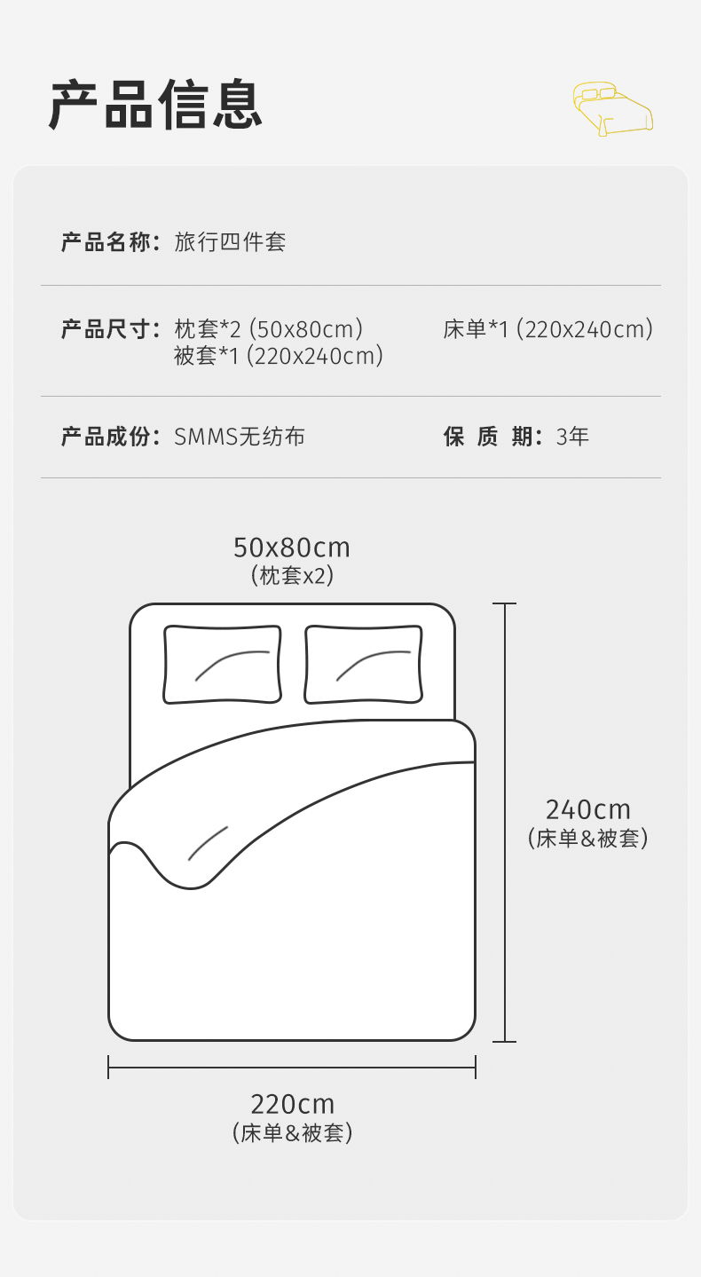 酒店床上四件套床单被罩枕套被套旅行旅游用品隔脏一次性旅行四件套WS20800
