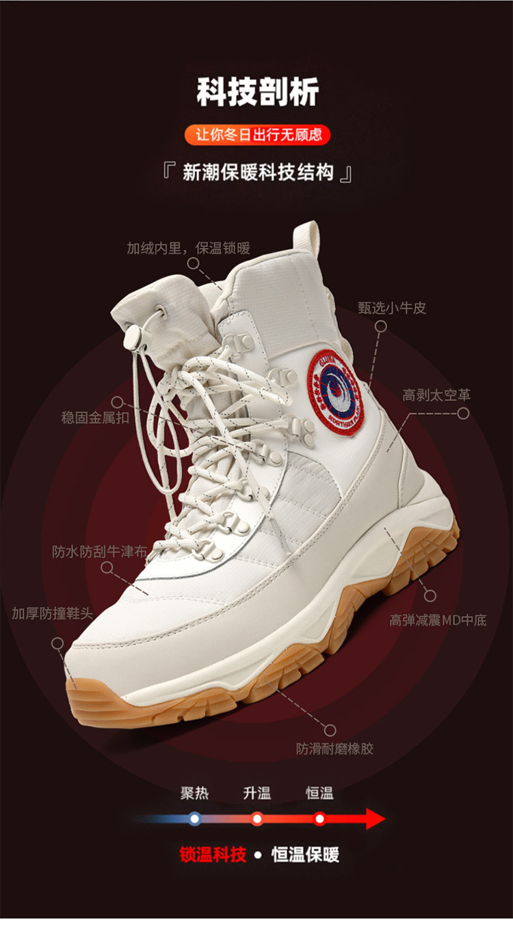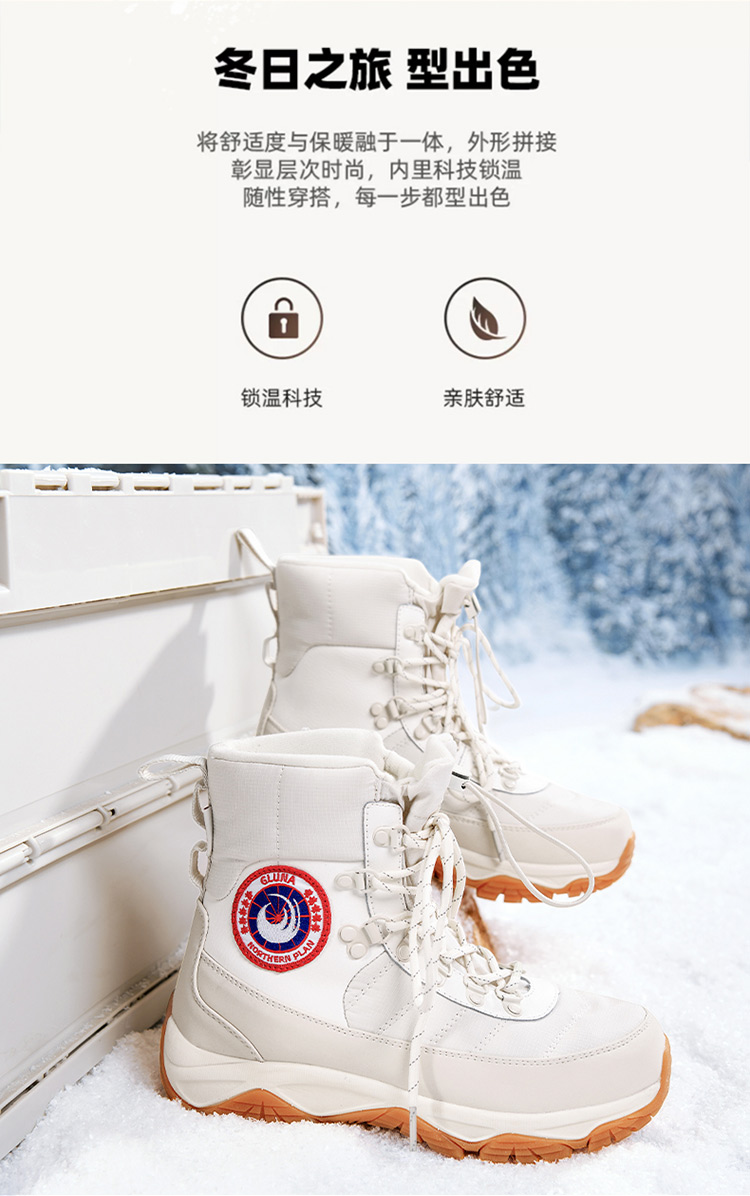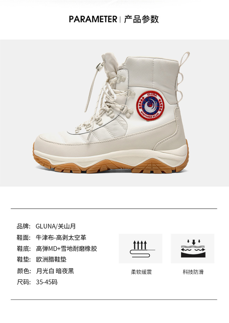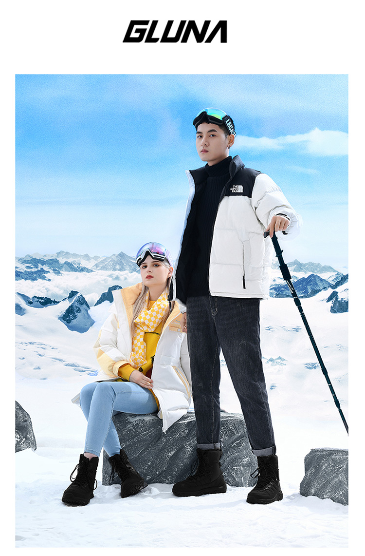 GLUNA哥鲁纳冬季高帮防水雪地靴加绒保暖防滑防寒户外休闲徒步中筒加厚89893