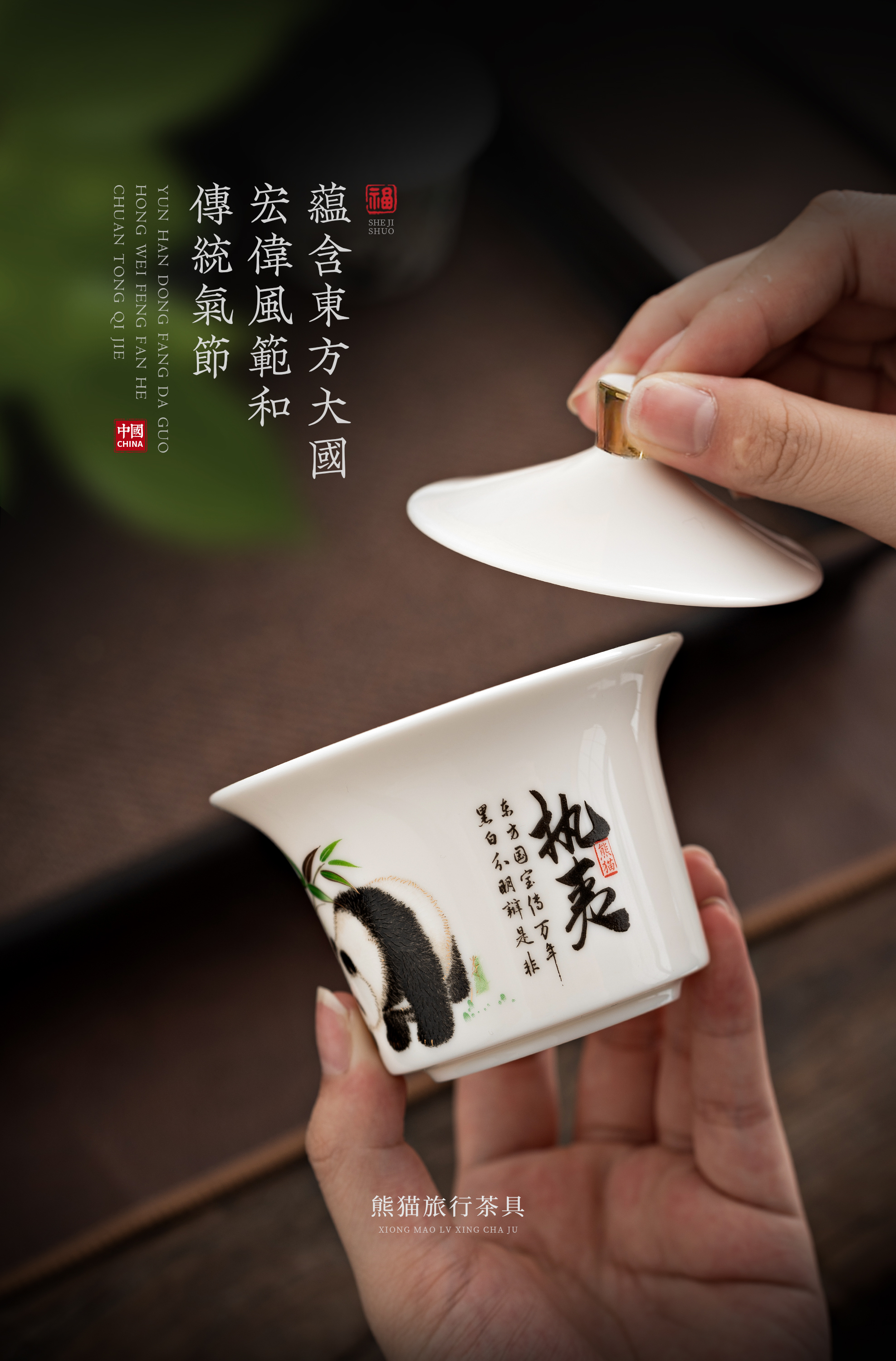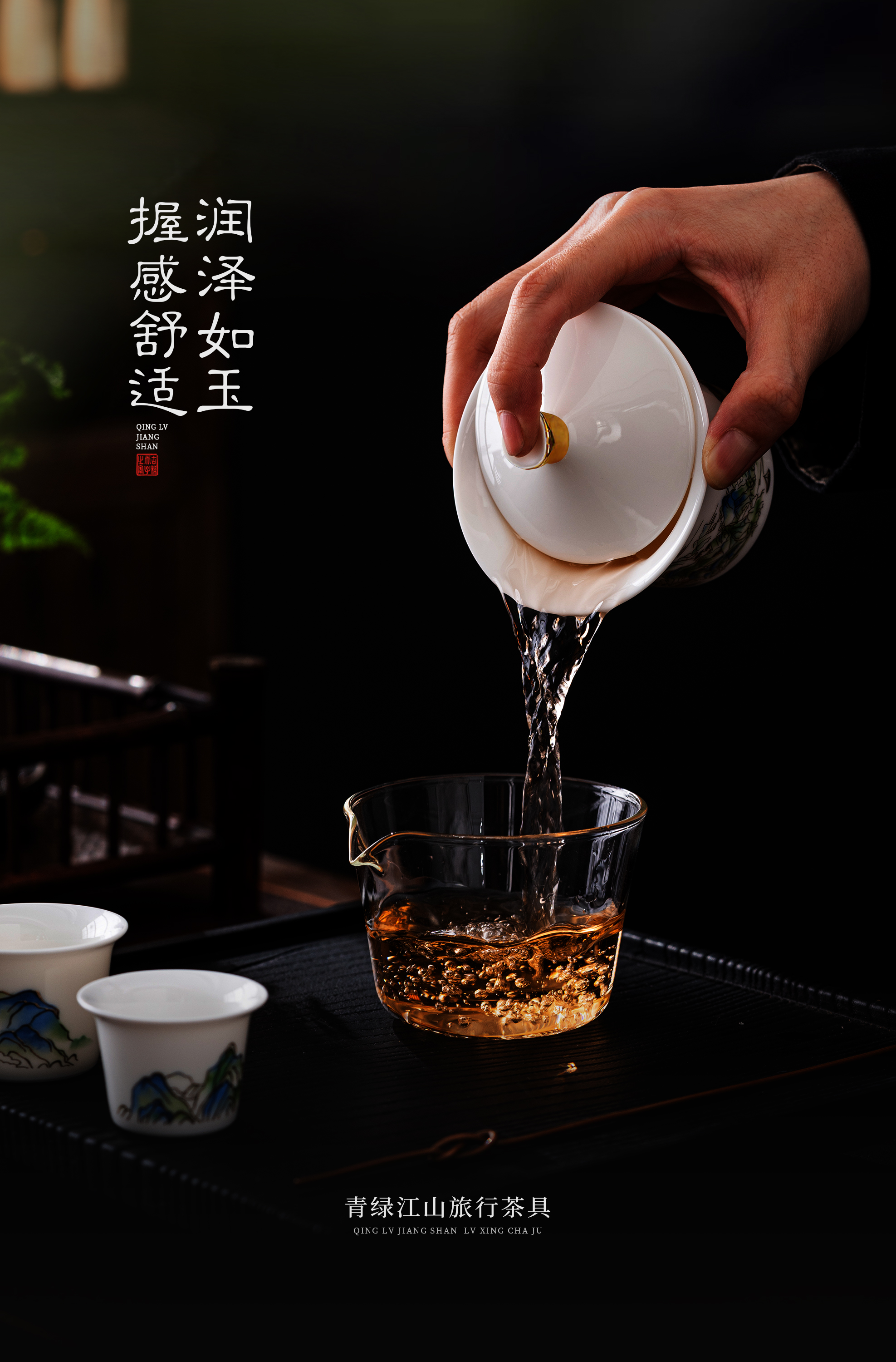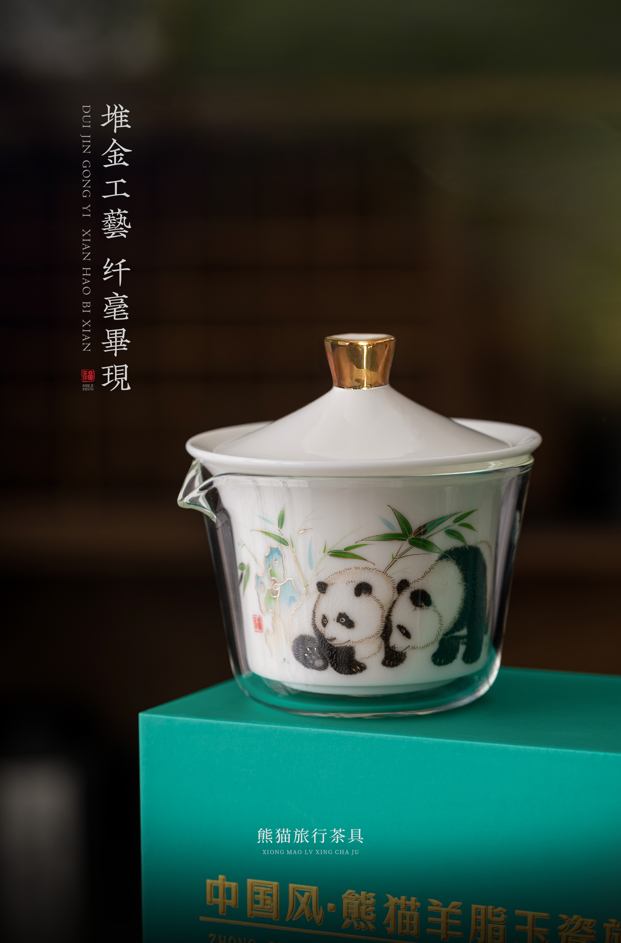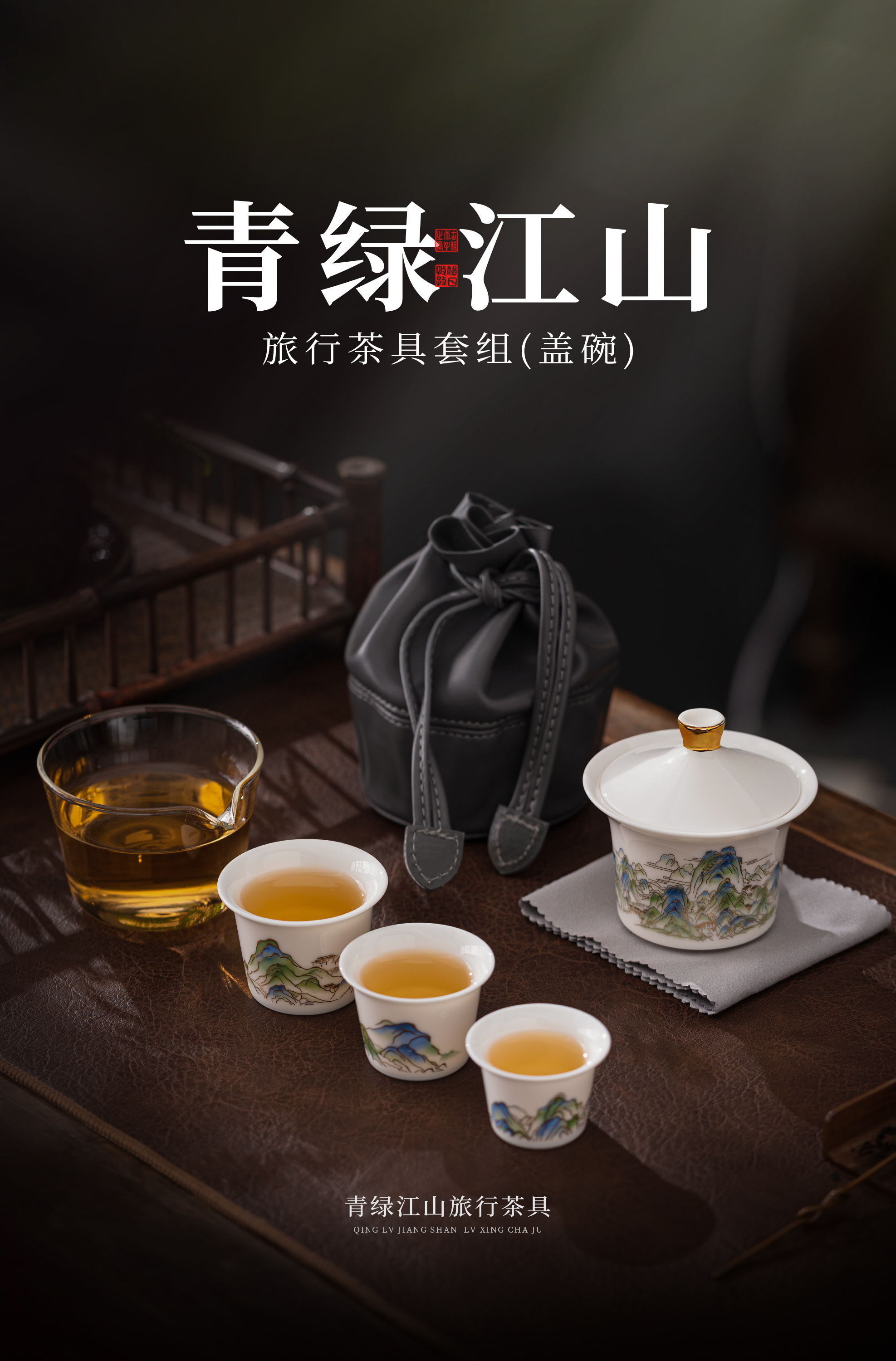 【青绿江山】旅行茶具套组(盖碗),润泽如玉 堆金工艺,原创设计 精致包装