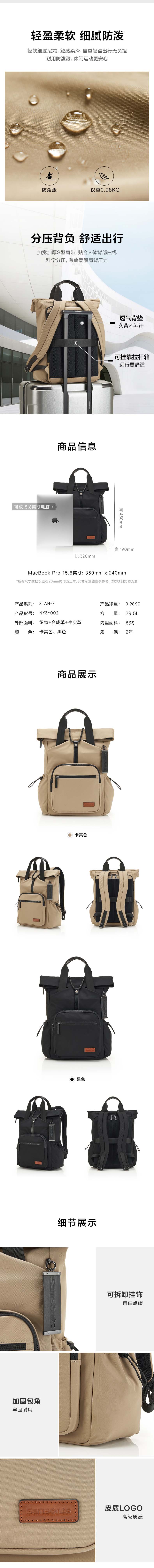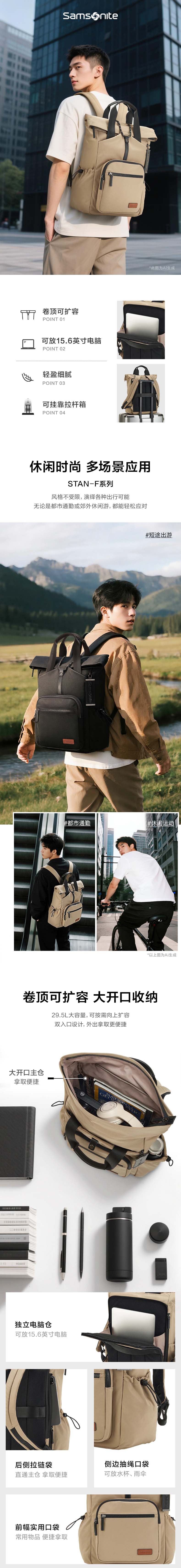新秀丽STAN-F系列男士轻盈卷顶可扩容大开口双肩包NY3*002