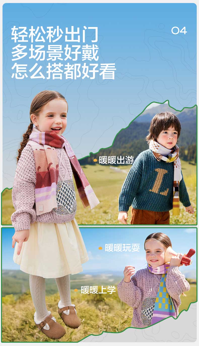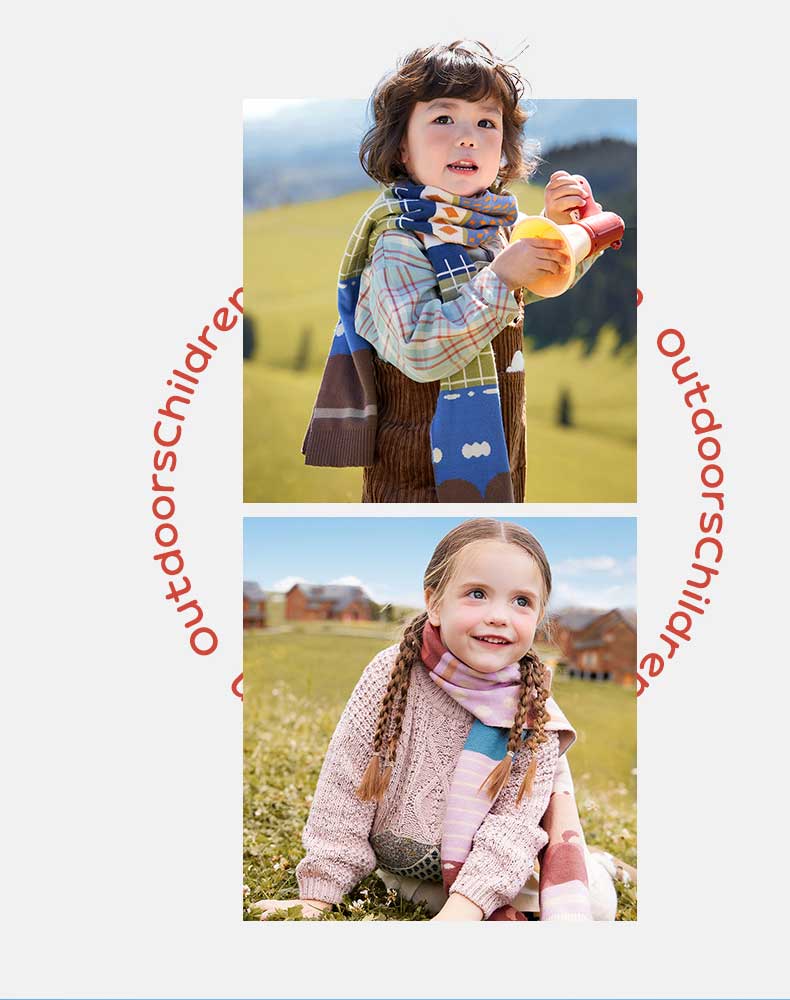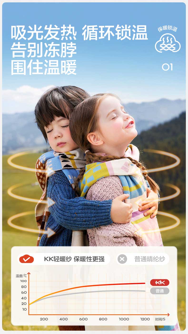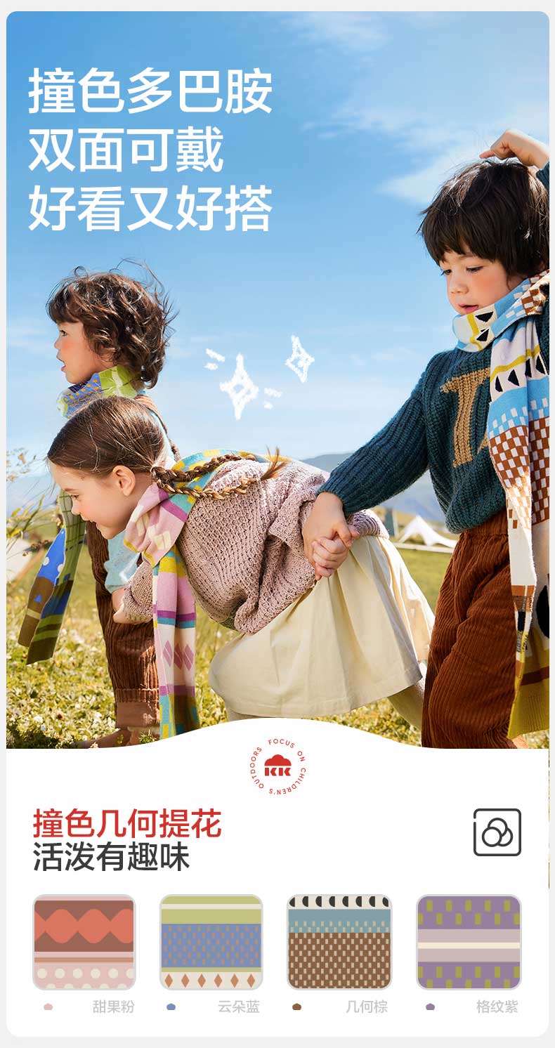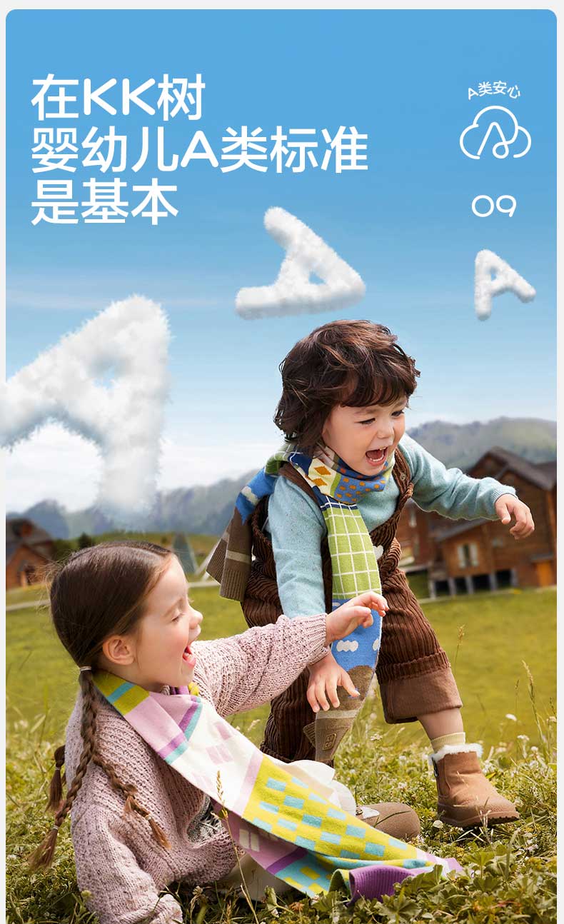 KK树儿童围巾秋冬季男童女孩宝宝围脖防风保暖抗静电2025新款冬日幻想曲针织围巾