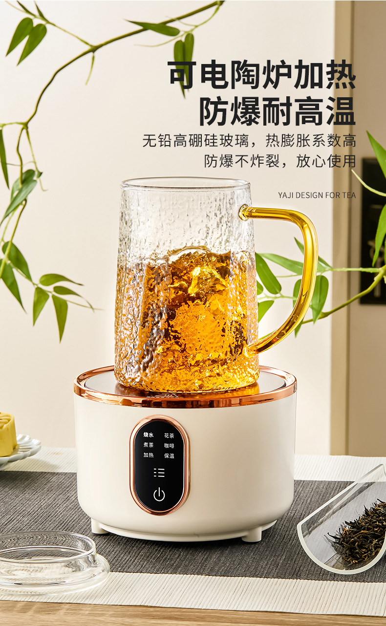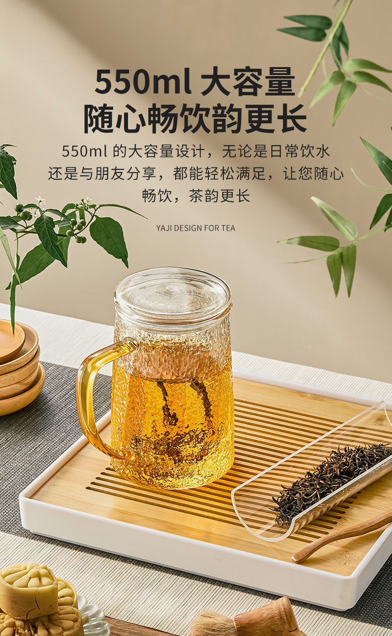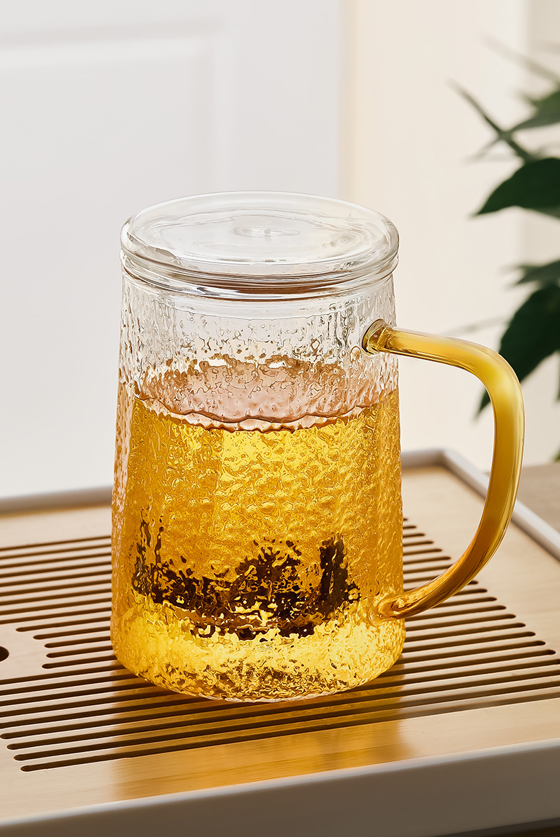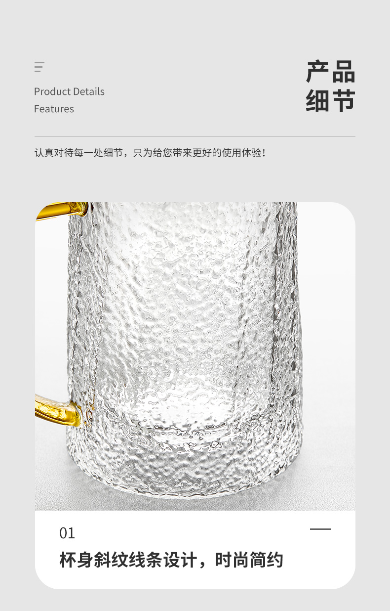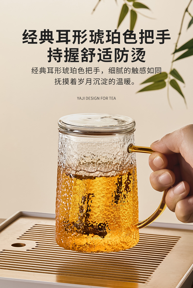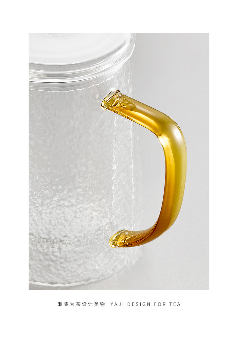 雅集玻璃杯锤纹筑茗杯550ml(斜纹款-琥珀把)