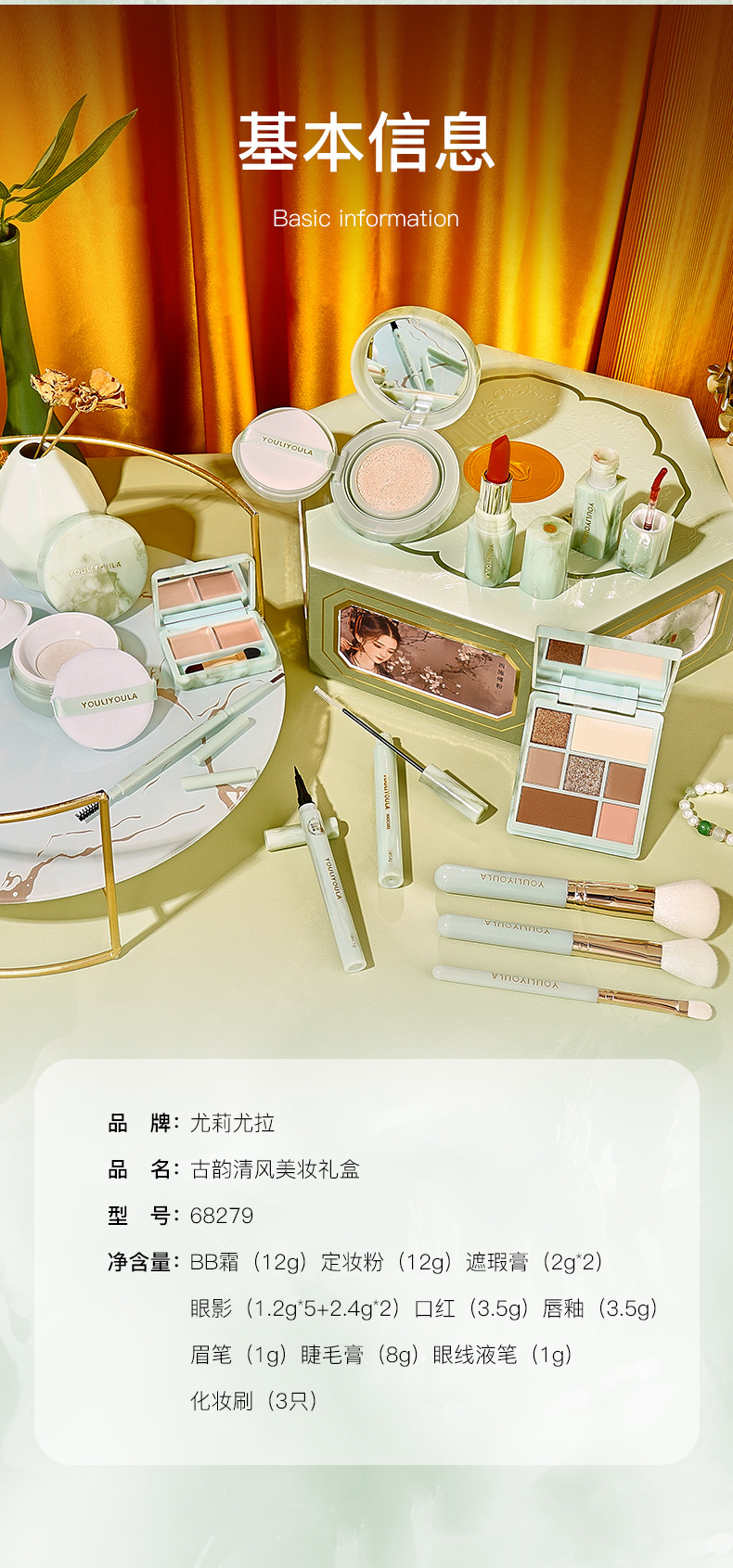 【尤莉尤拉古韵清风彩妆套装】情人节 送女友老婆生日礼物 化妆品礼盒