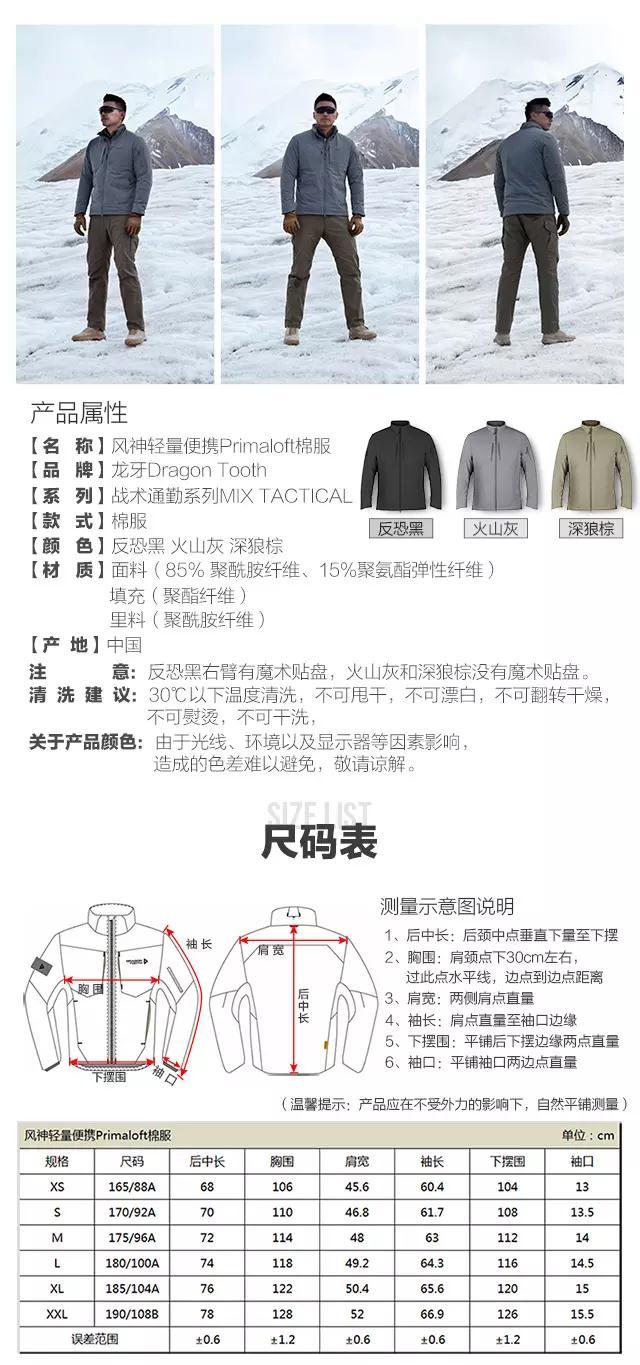 龙牙风神轻量便携Primaloft棉服