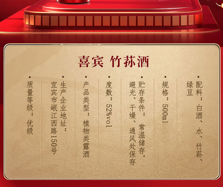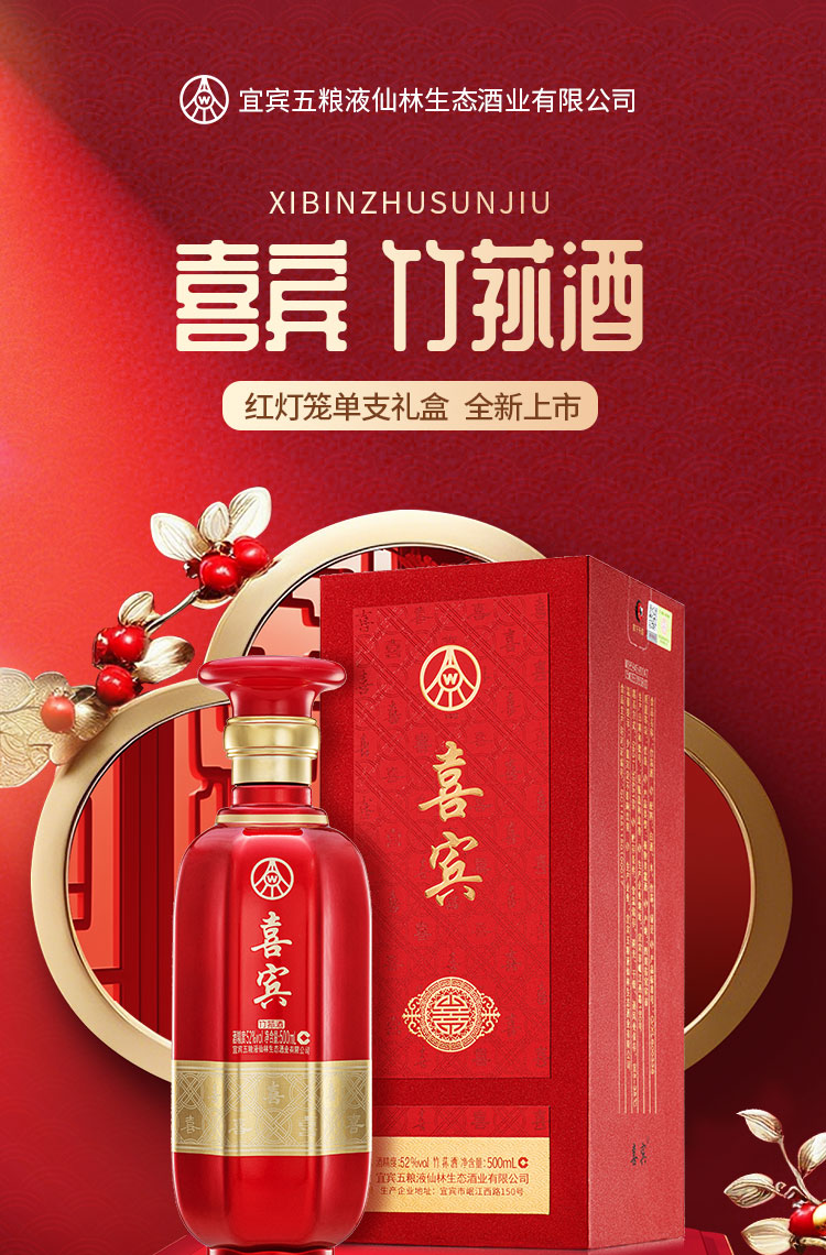 喜宾牌竹荪酒-红灯笼单支礼盒 500ml 单瓶(仅供线上销售)