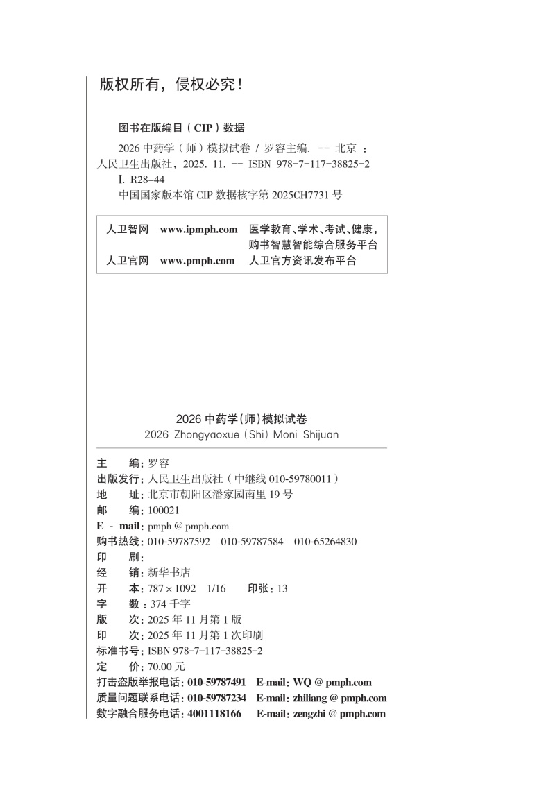 2026中药学(师)模拟试卷 全国卫生专业技术资格考试习题集丛书 罗容 适用专业中药学(师)代码202 2026职称考试 人民卫生出版社