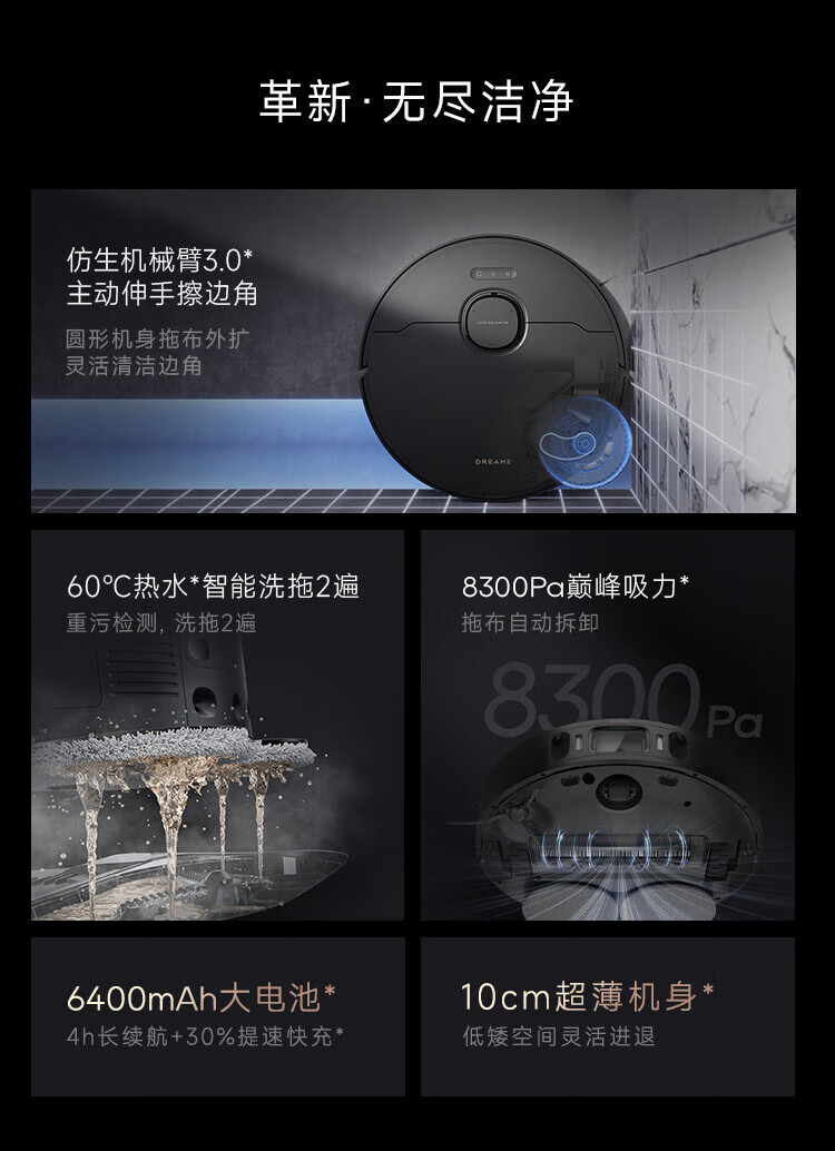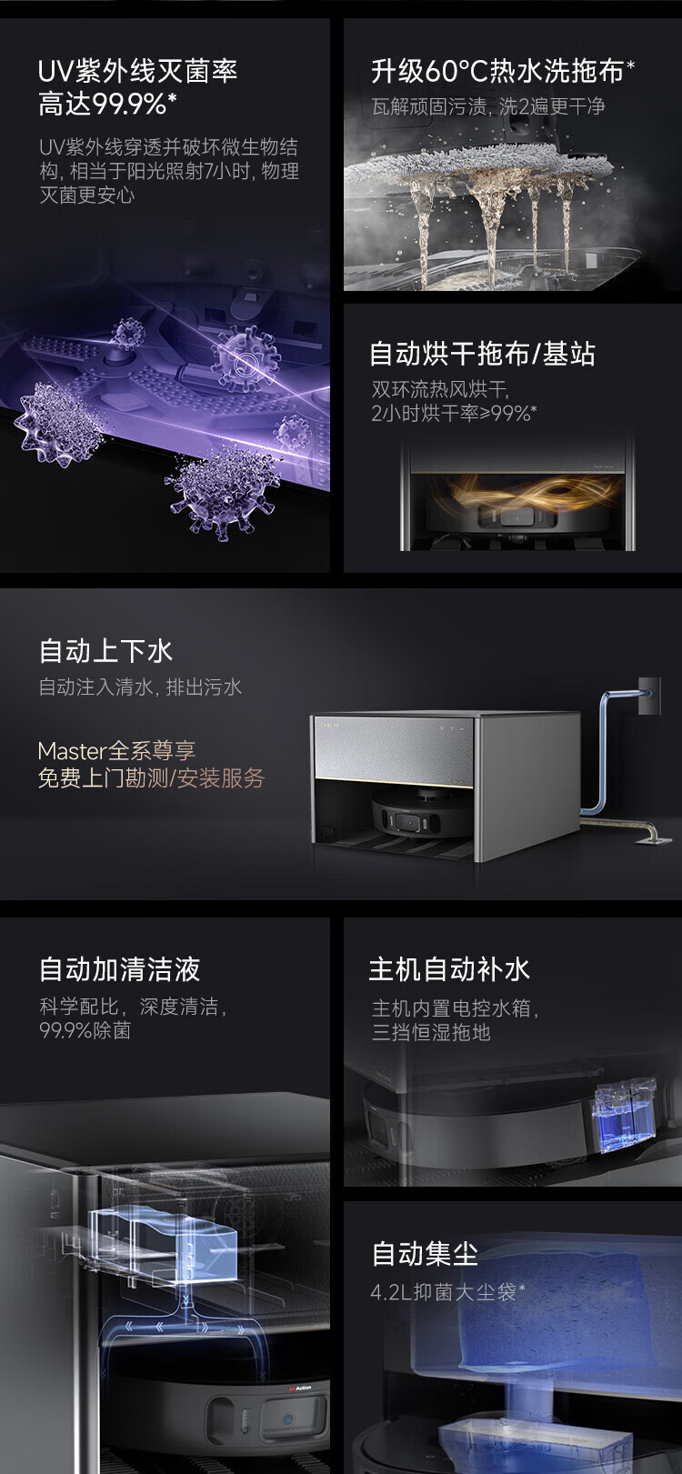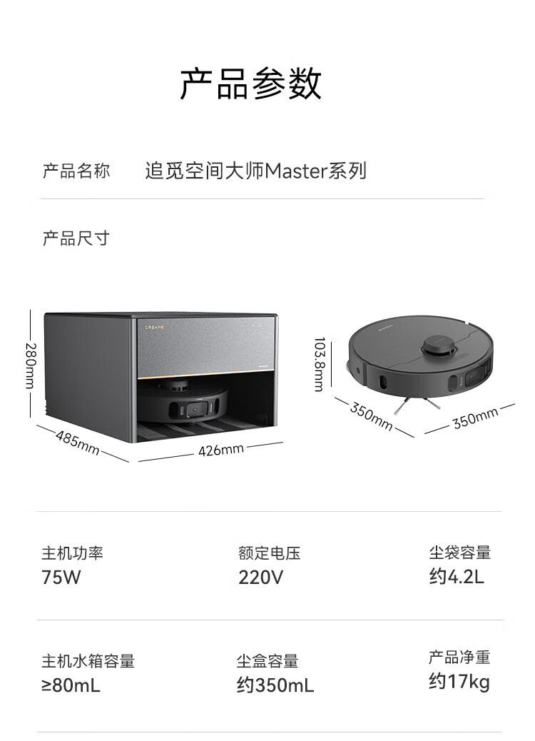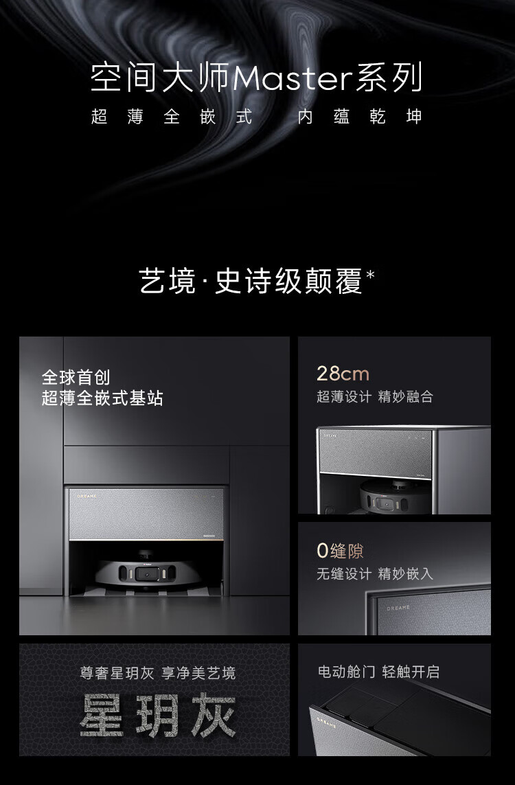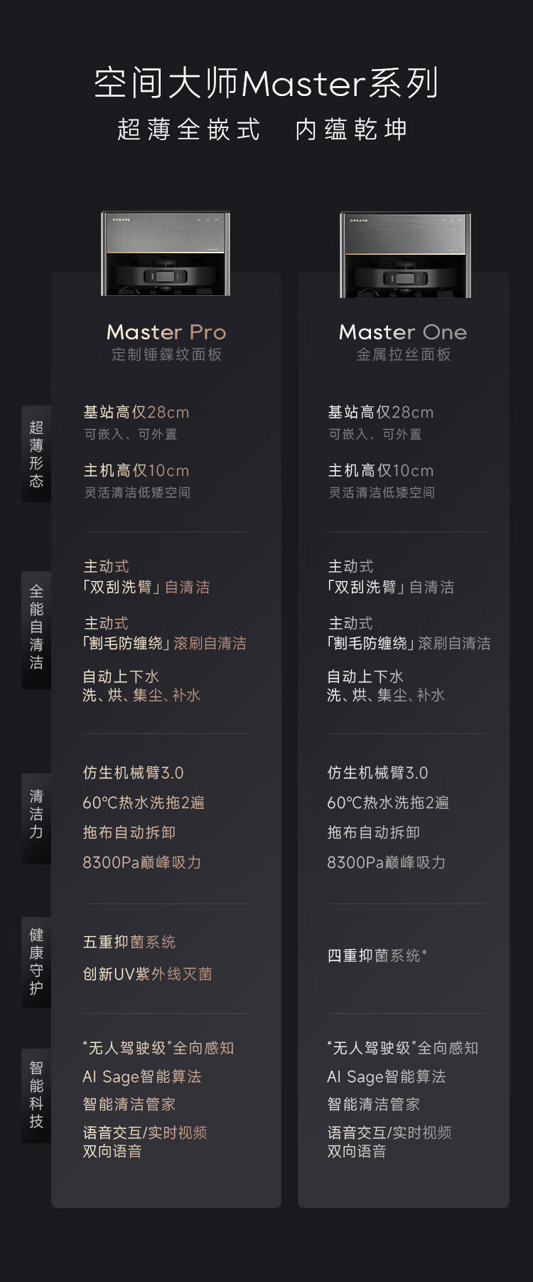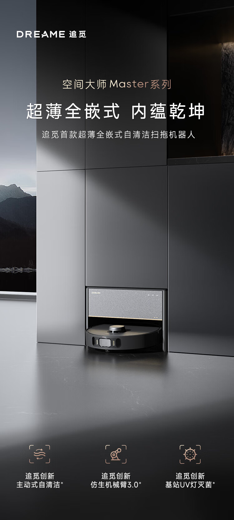 追觅Master系列空间大师 全嵌入式自清洁扫拖机器人 超薄机身抹布擦边 全能基站切割毛发 Master Pro