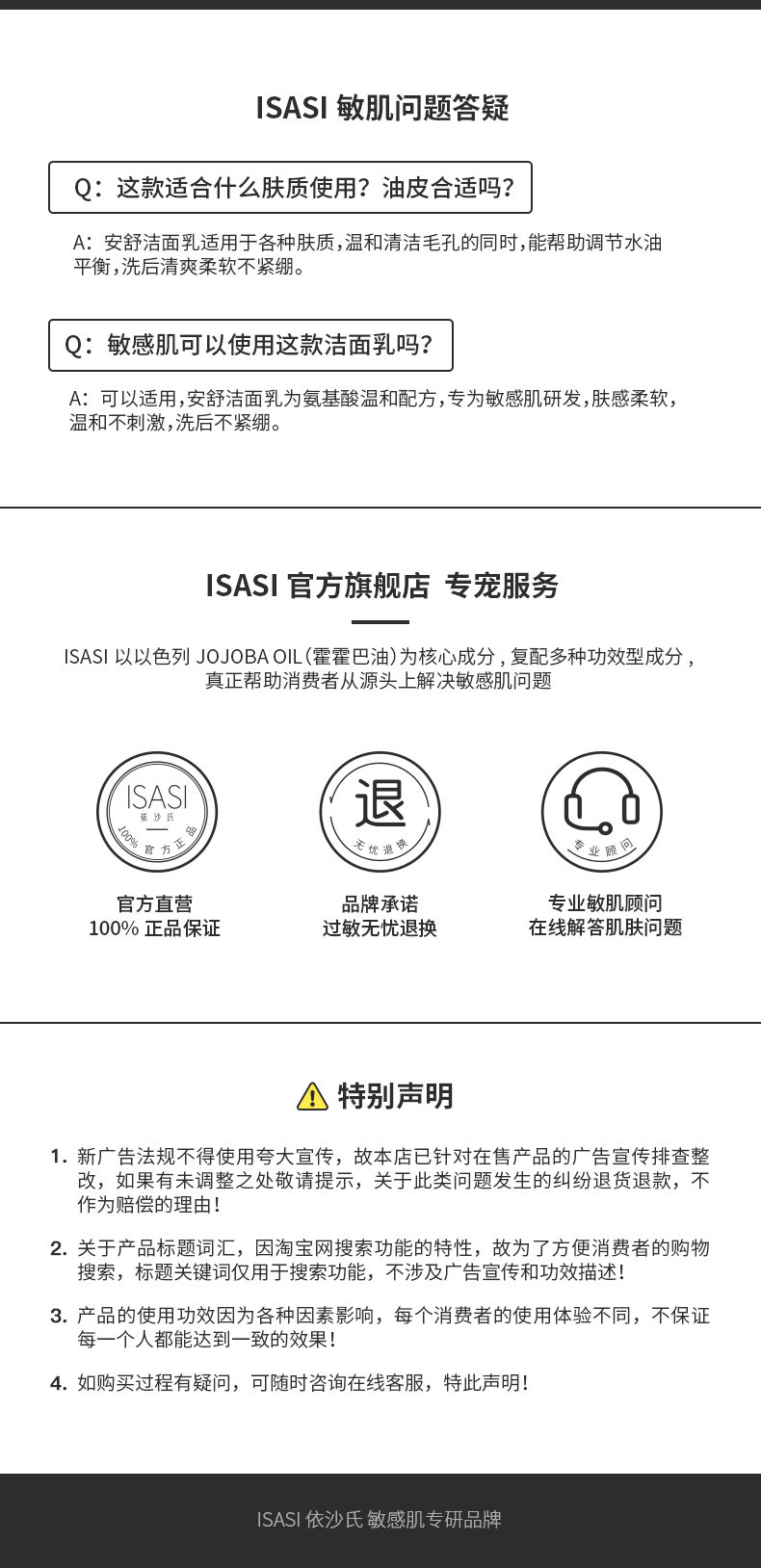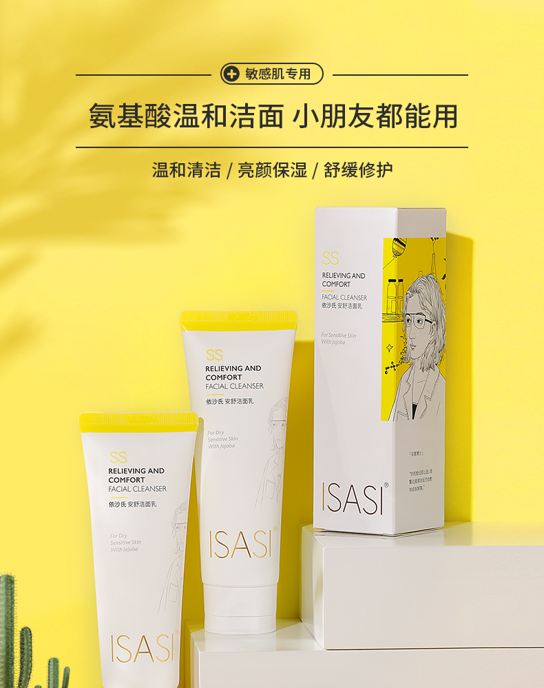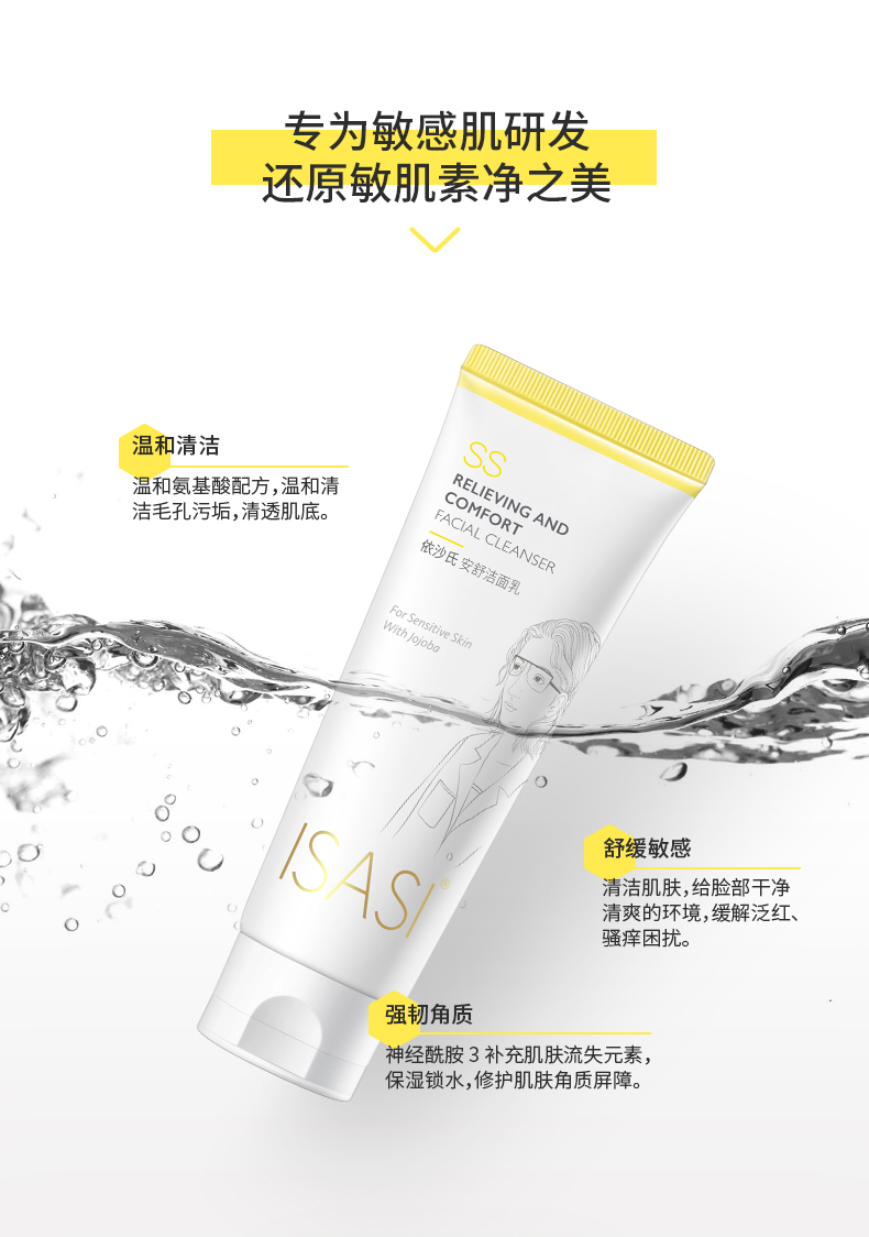 依沙氏安舒洁面乳120g敏感肌专用洗面奶舒缓温和泡沫深层清洁保湿【有效期至2026-10-18】
