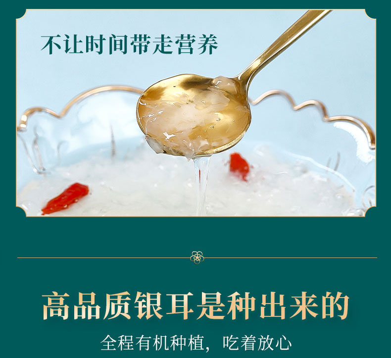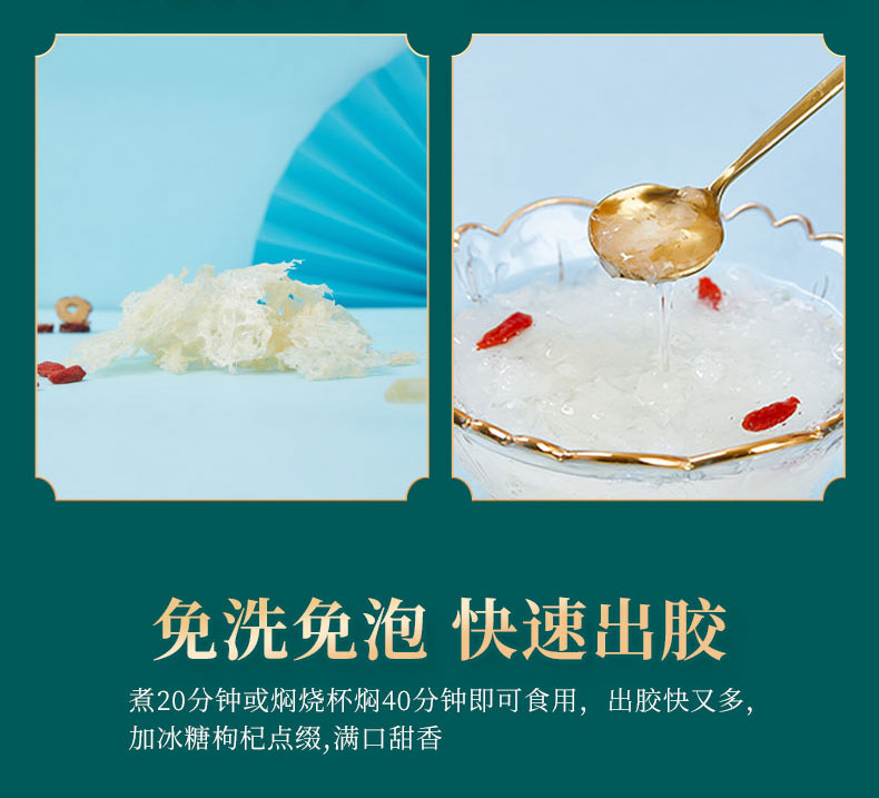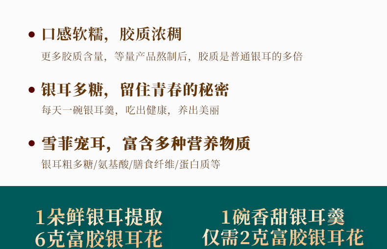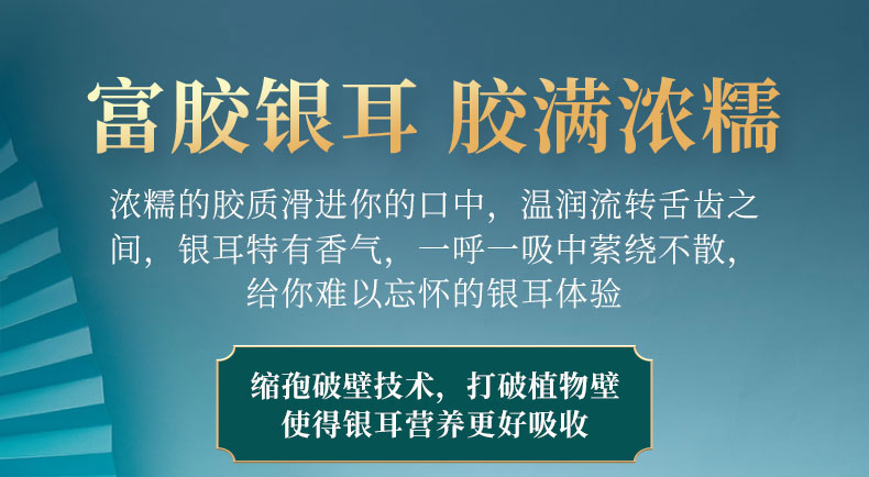 咱们的富胶银耳创新采用了缩孢破壁技术,打破银耳细胞壁,使其在煮制过程中快速释放营养胶质,更利于人体吸收。