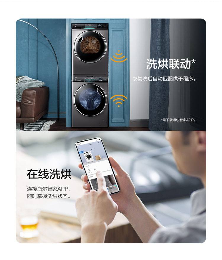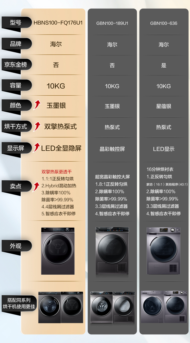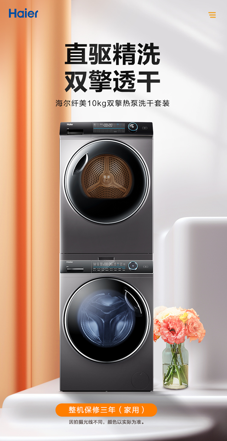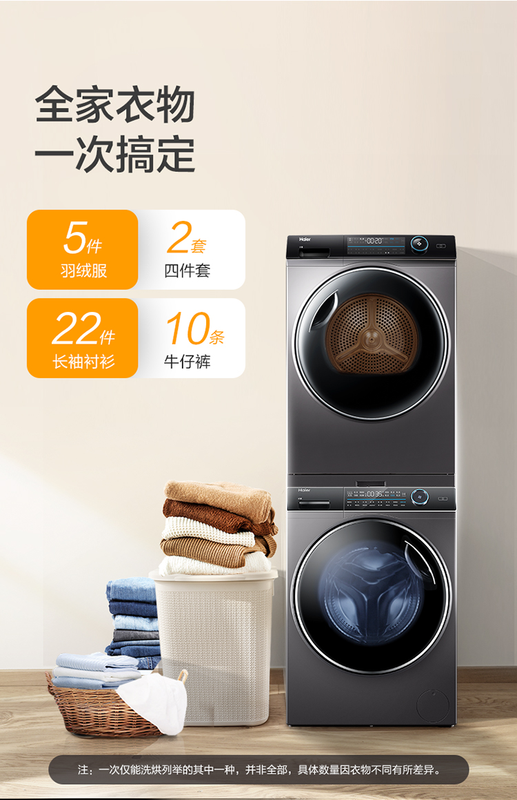 海尔洗烘套装 10Kg滚筒洗衣机全自动+10Kg双擎热泵烘干机家用 XQG100-BD14176LU1+HBNS100-FQ176U1