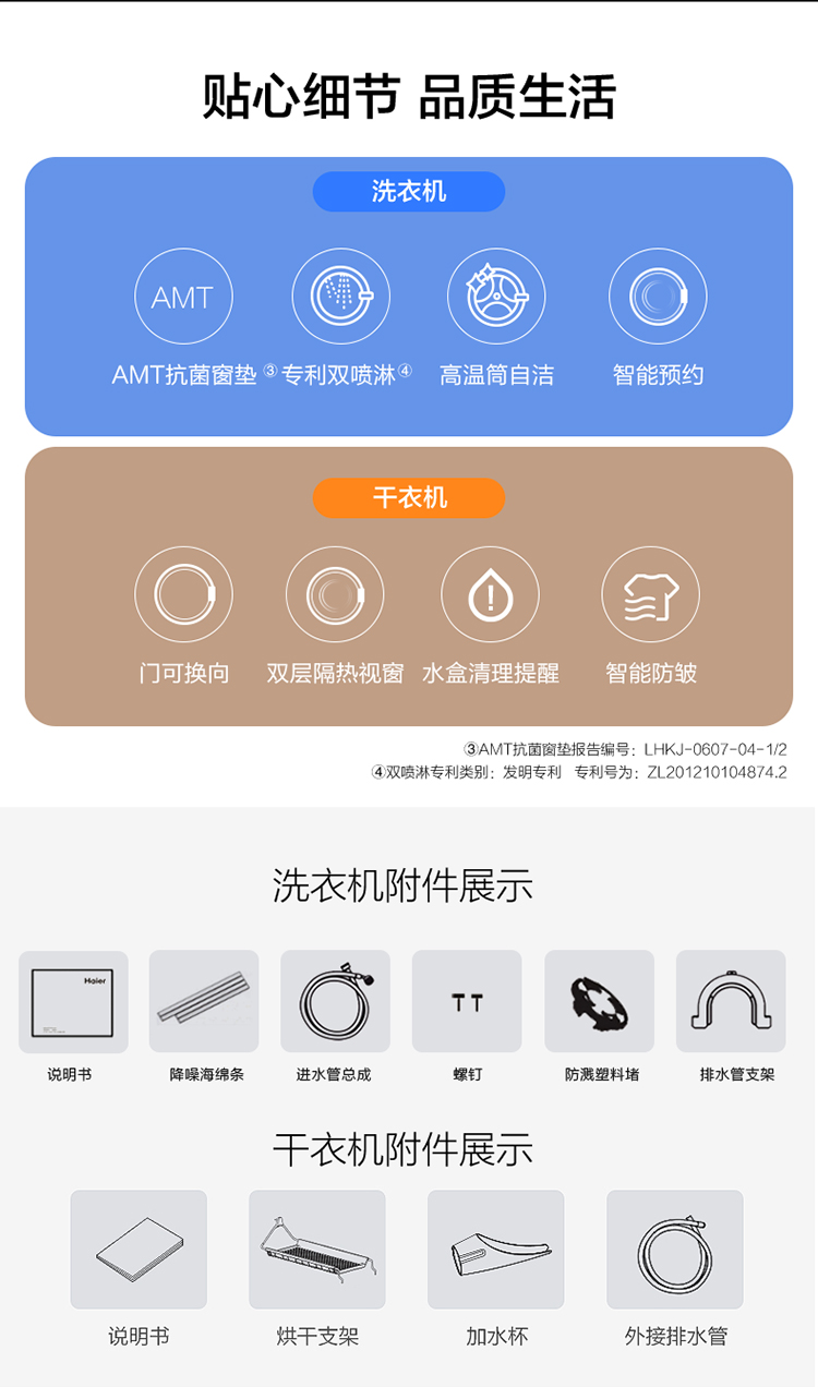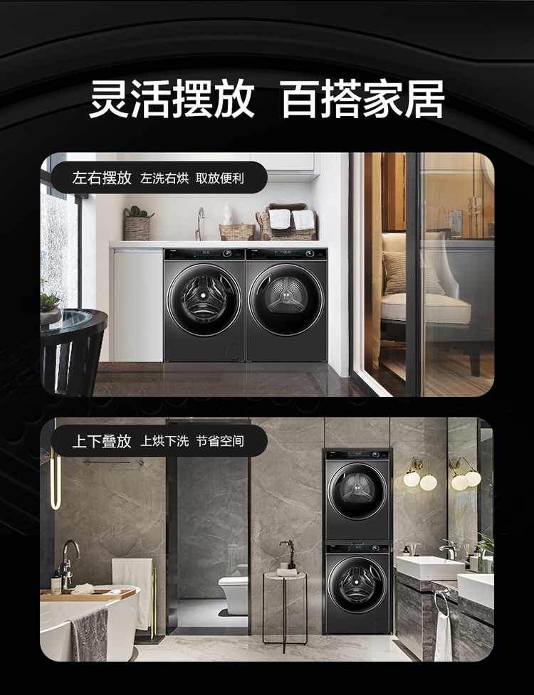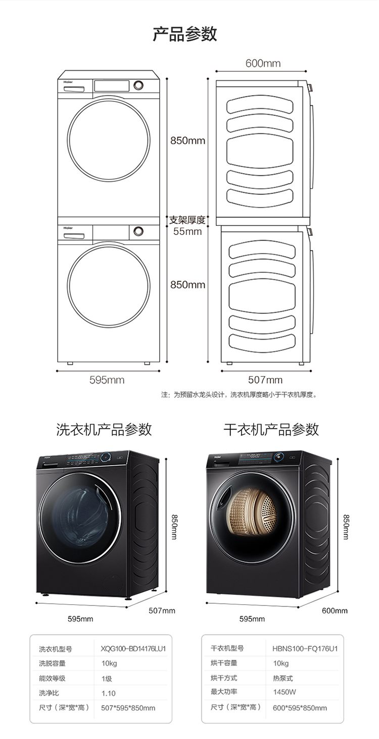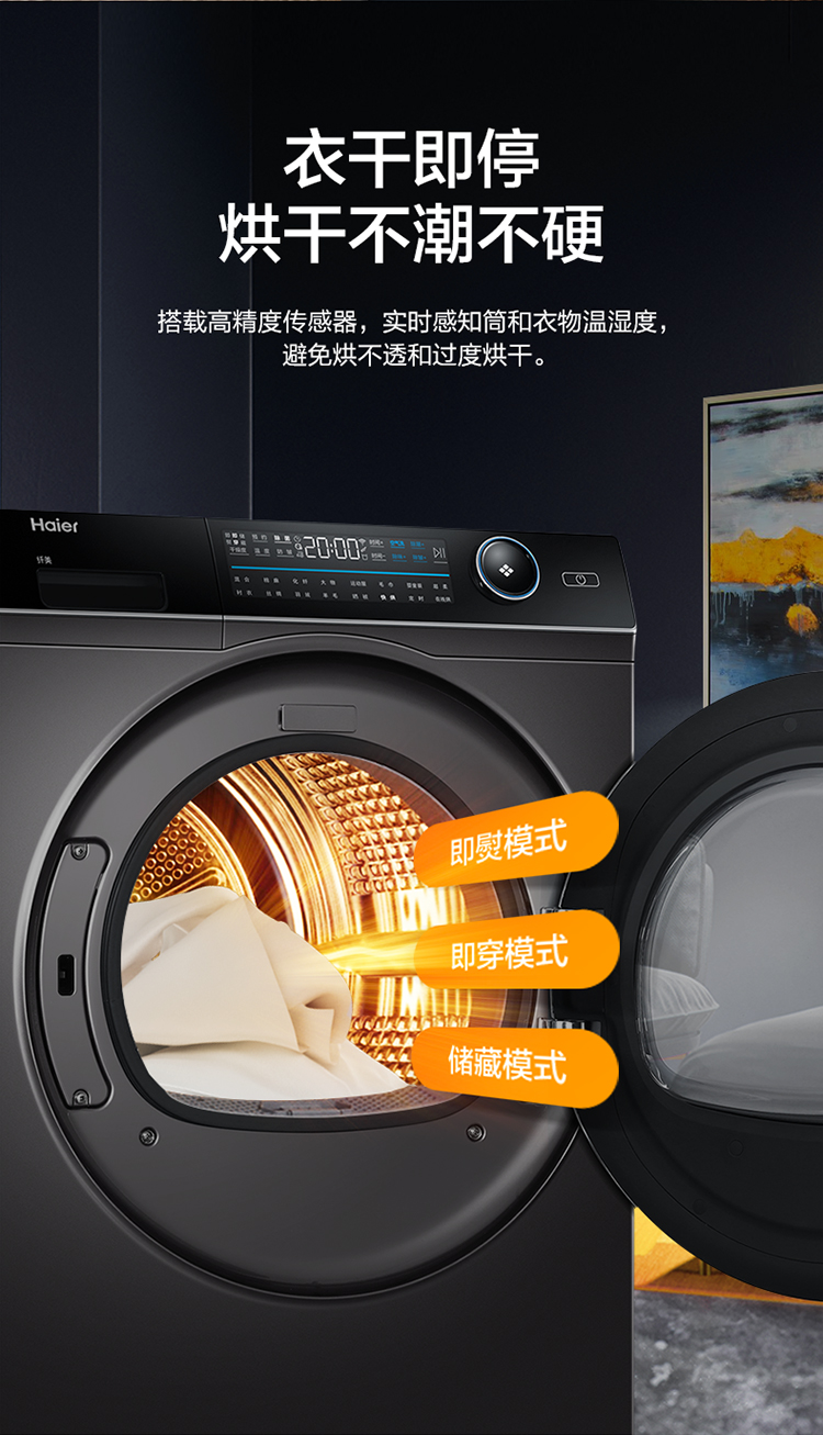 海尔洗烘套装 10Kg滚筒洗衣机全自动+10Kg双擎热泵烘干机家用 XQG100-BD14176LU1+HBNS100-FQ176U1