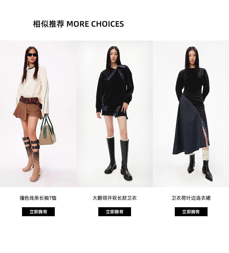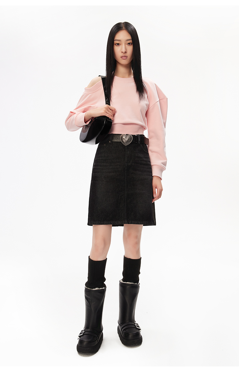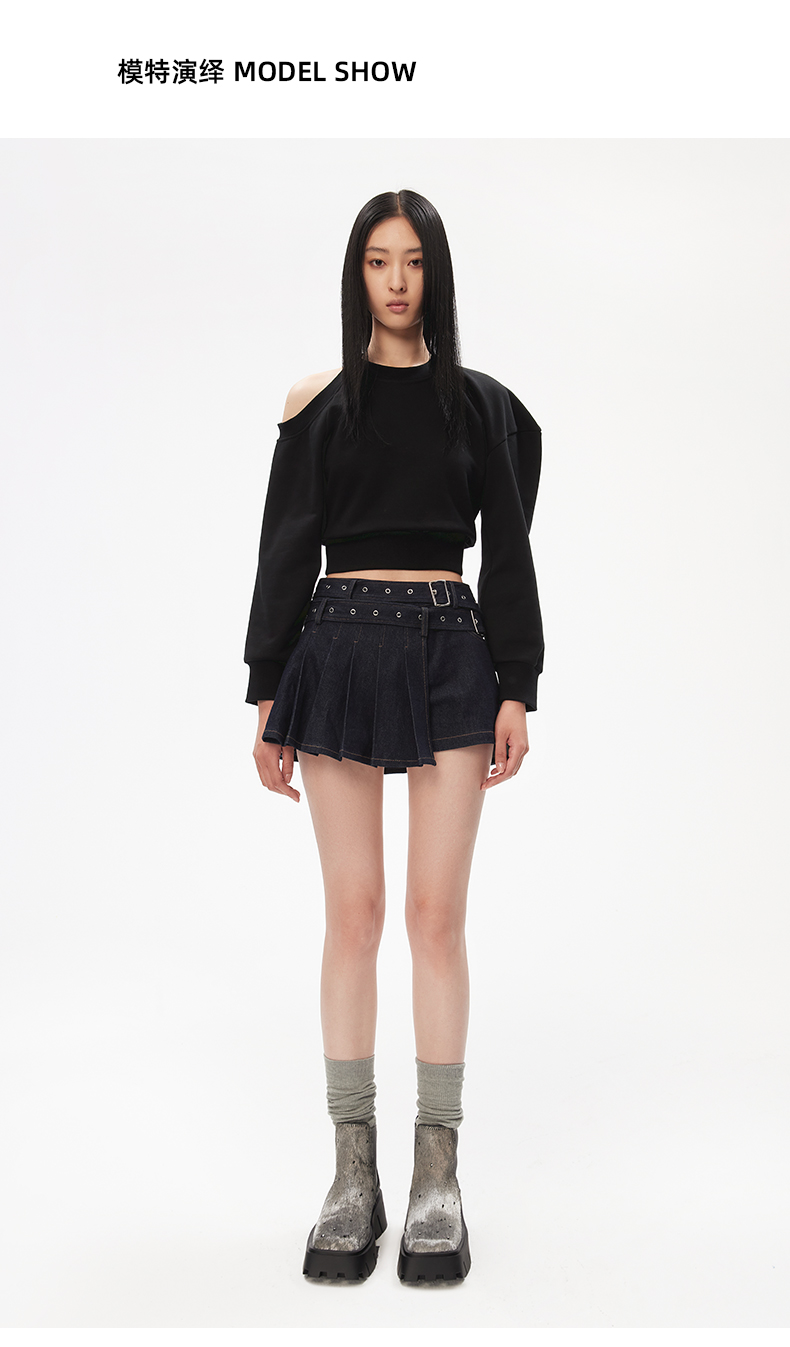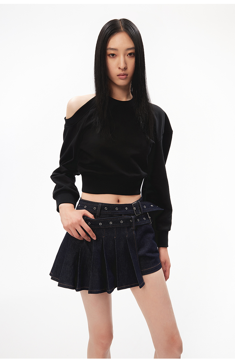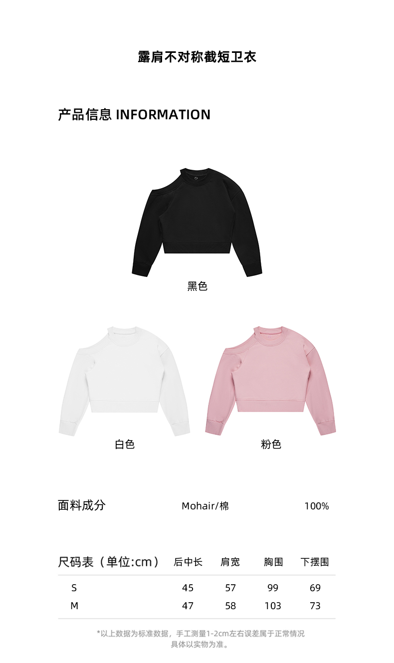lost in echo设计师品牌高级时尚简约圆领露肩不对称截短卫衣黑色