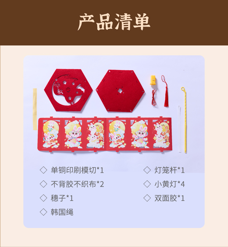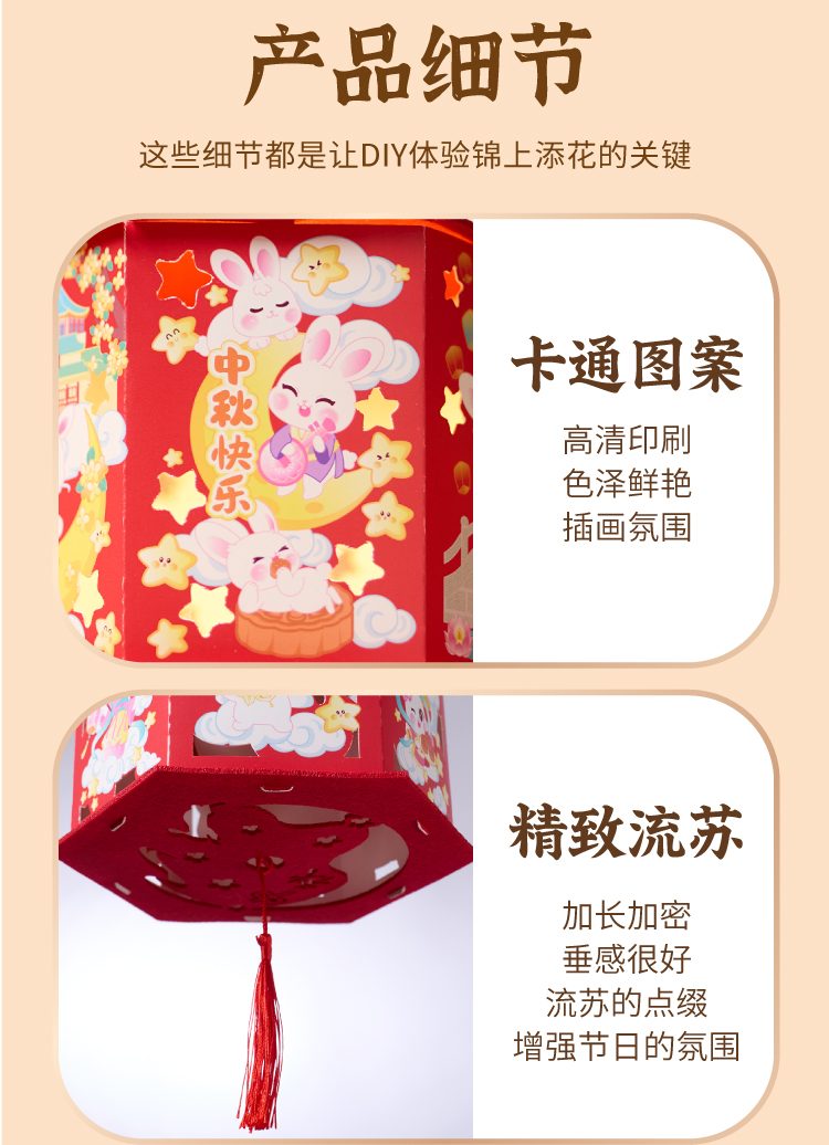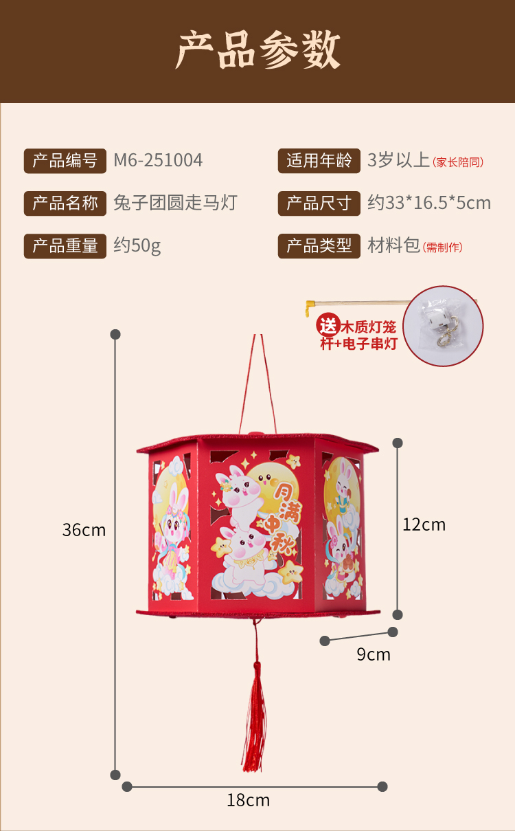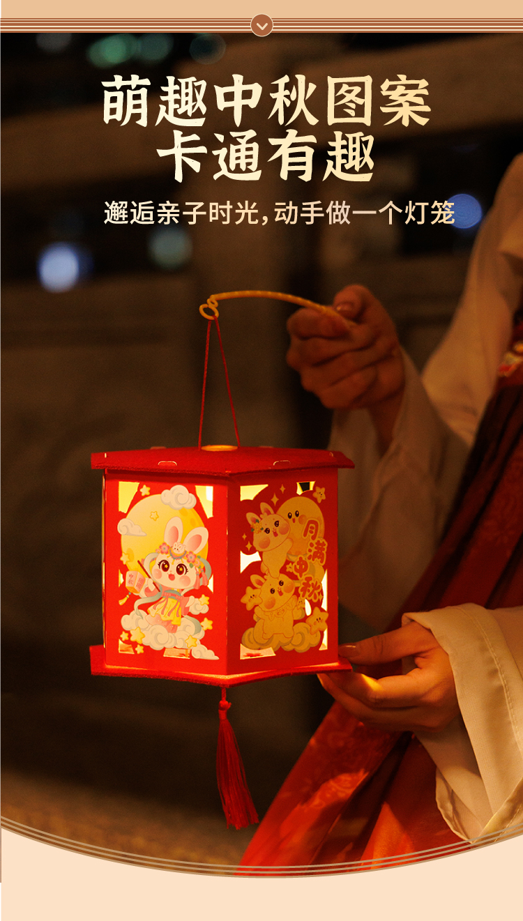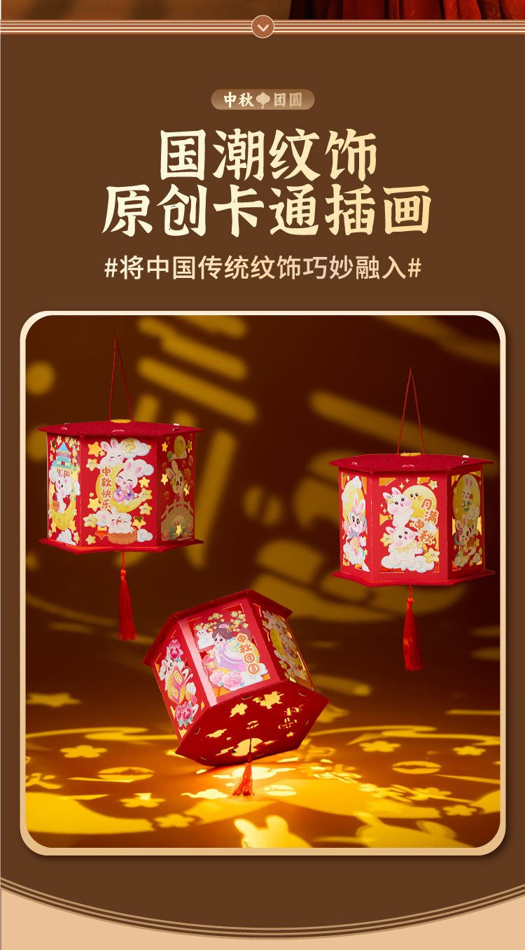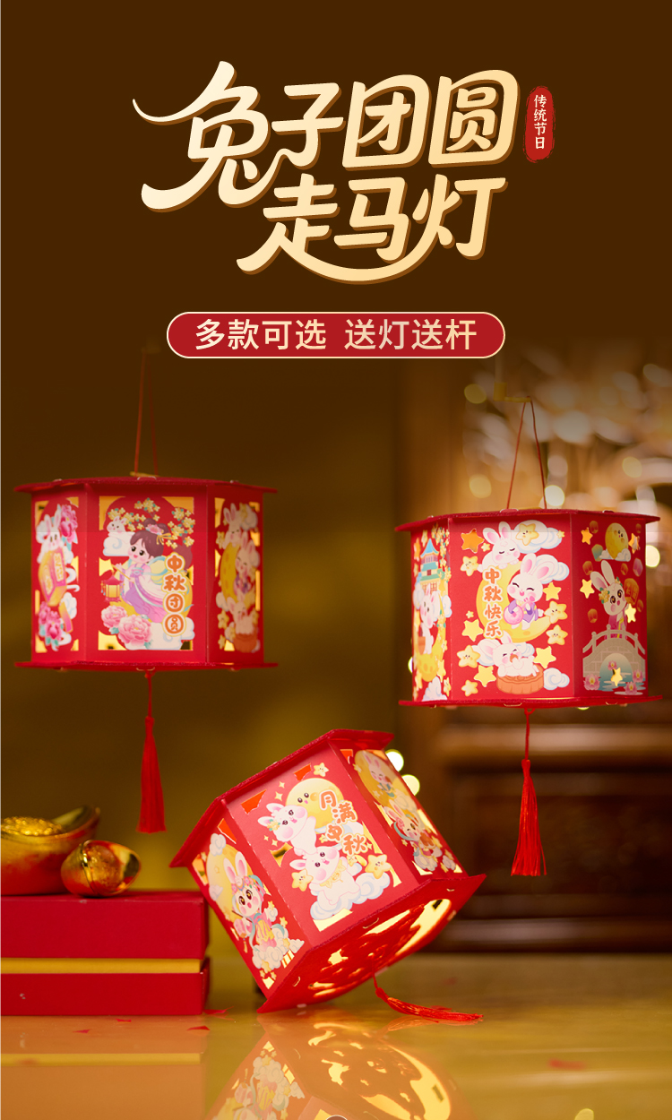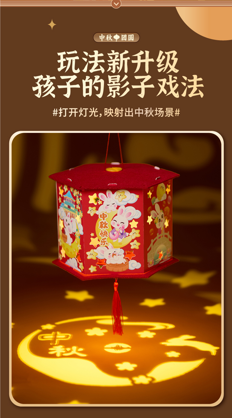 中秋节投影兔子团圆走马灯手工diy灯笼儿童制作材料包幼儿园花灯