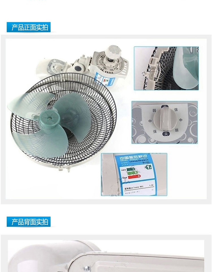 艾美特(Airmate)壁扇W329A 12寸家用静音机械挂式电风扇壁挂摇头扇纯铜电