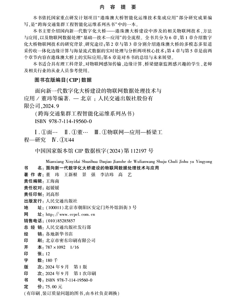 书名:面向新一代数字化大桥建设的物联网数据处理技术与应用