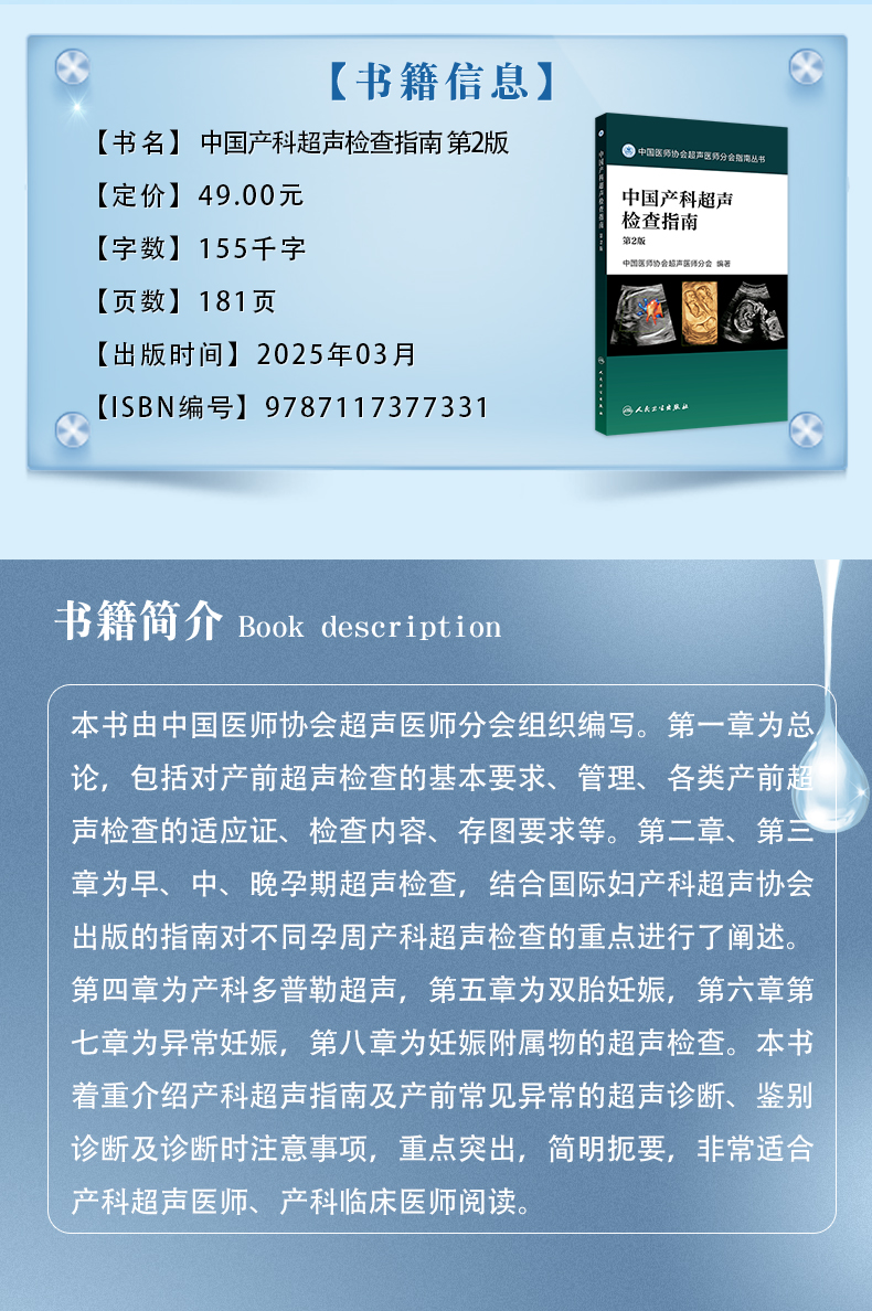 中国产科超声检查指南 第2版 中国医师协会超声医师分会 介绍了产科超声指南及产前常见异常的超声诊断鉴别诊断及诊断时注意事项等