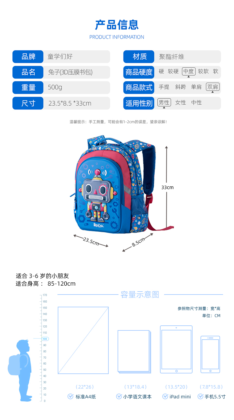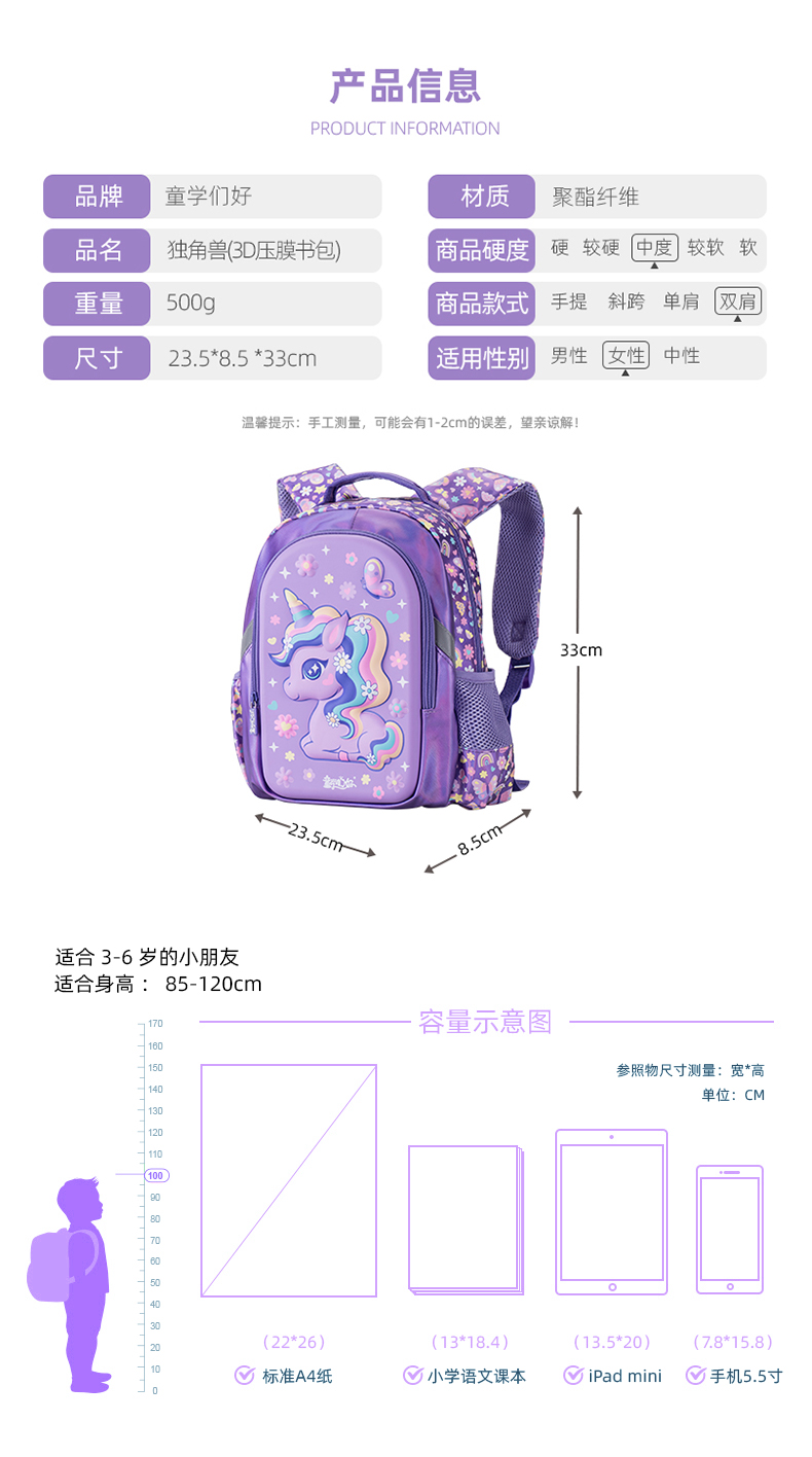 【开学季福利特惠】童学们好-3D幼儿包。全国的库存都在这了❗ 尺寸 23.5*8.5 *33cm