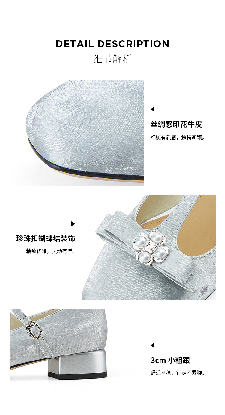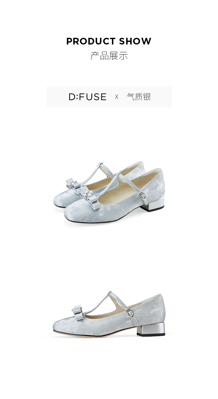 D:FUSE迪芙斯2024年秋季新款精致丝绸感印花牛皮蝴蝶结玛丽珍单鞋 DF43111301