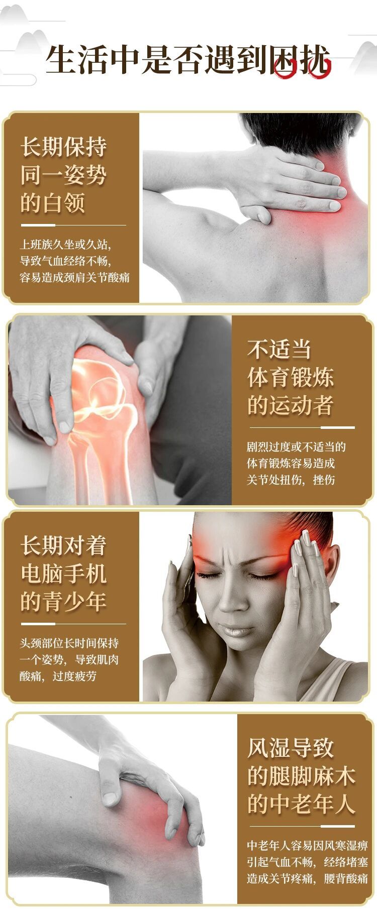 4,使用过程中皮肤有灼热感属正常现象。本品为外用保健产品,不能代替药品使用。